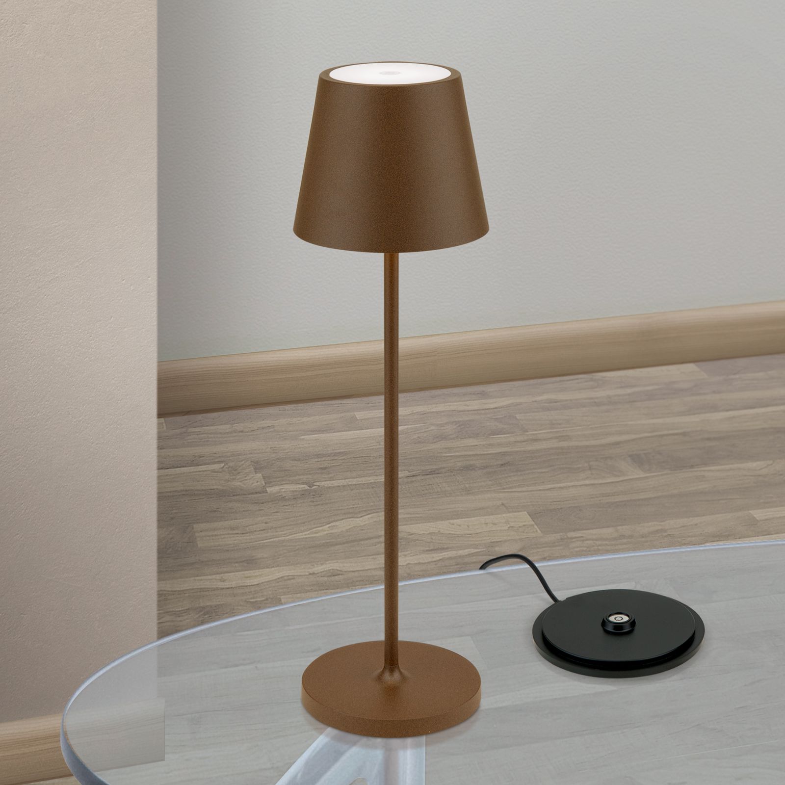 LED battery table lamp CHANDELLE, rust brown