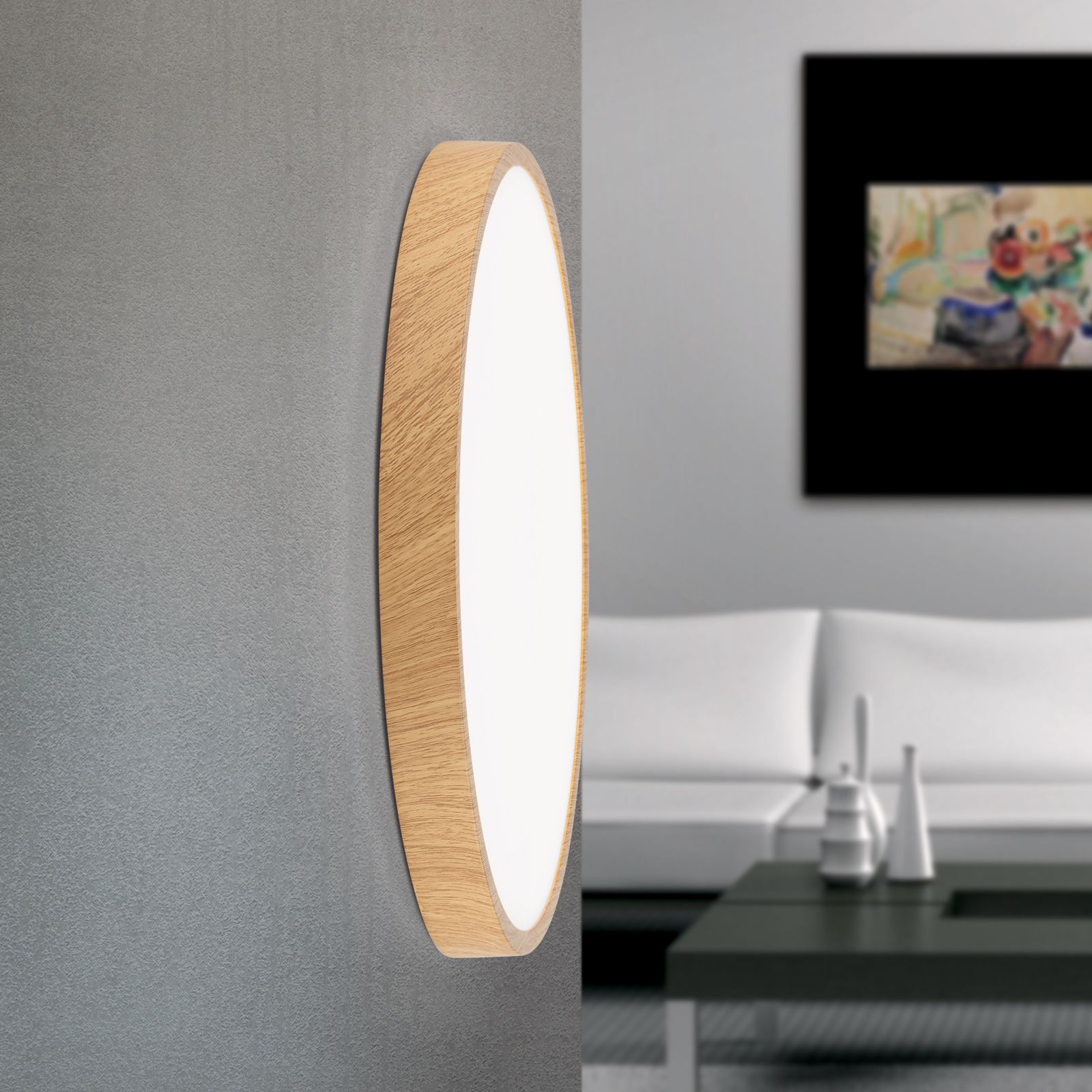 LED ceiling light BULLY, Ø 28 cm, wood
