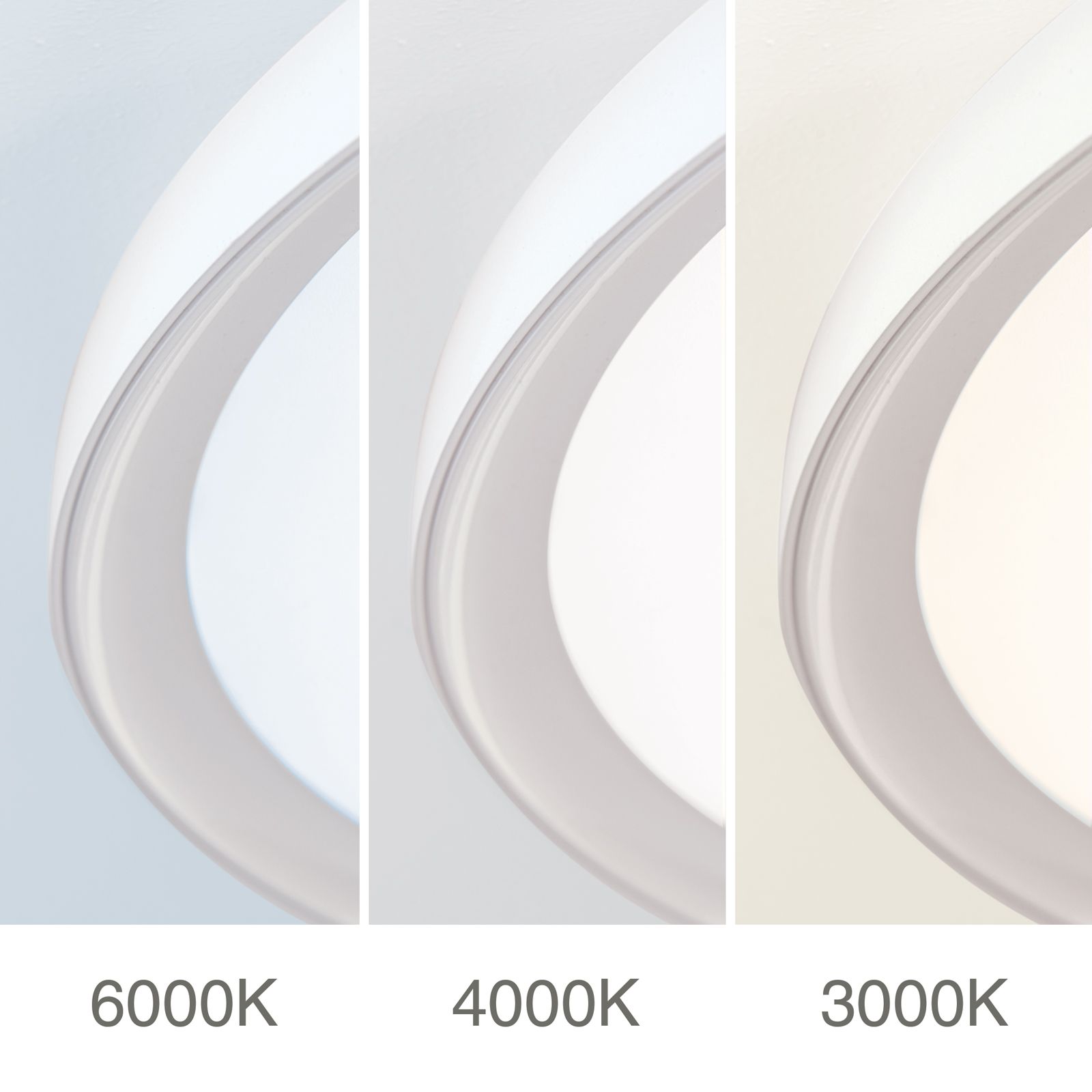 The special feature of this ceiling light is the versatility of the light colours and brightness levels: The indirect light is dimmable and emits a warm light colour of 3000 Kelvin, ideal for a cosy atmosphere. The direct light, on the other hand, is infinitely adjustable between 3000 Kelvin, 4000 Kelvin and 6000 Kelvin, depending on requirements and mood.