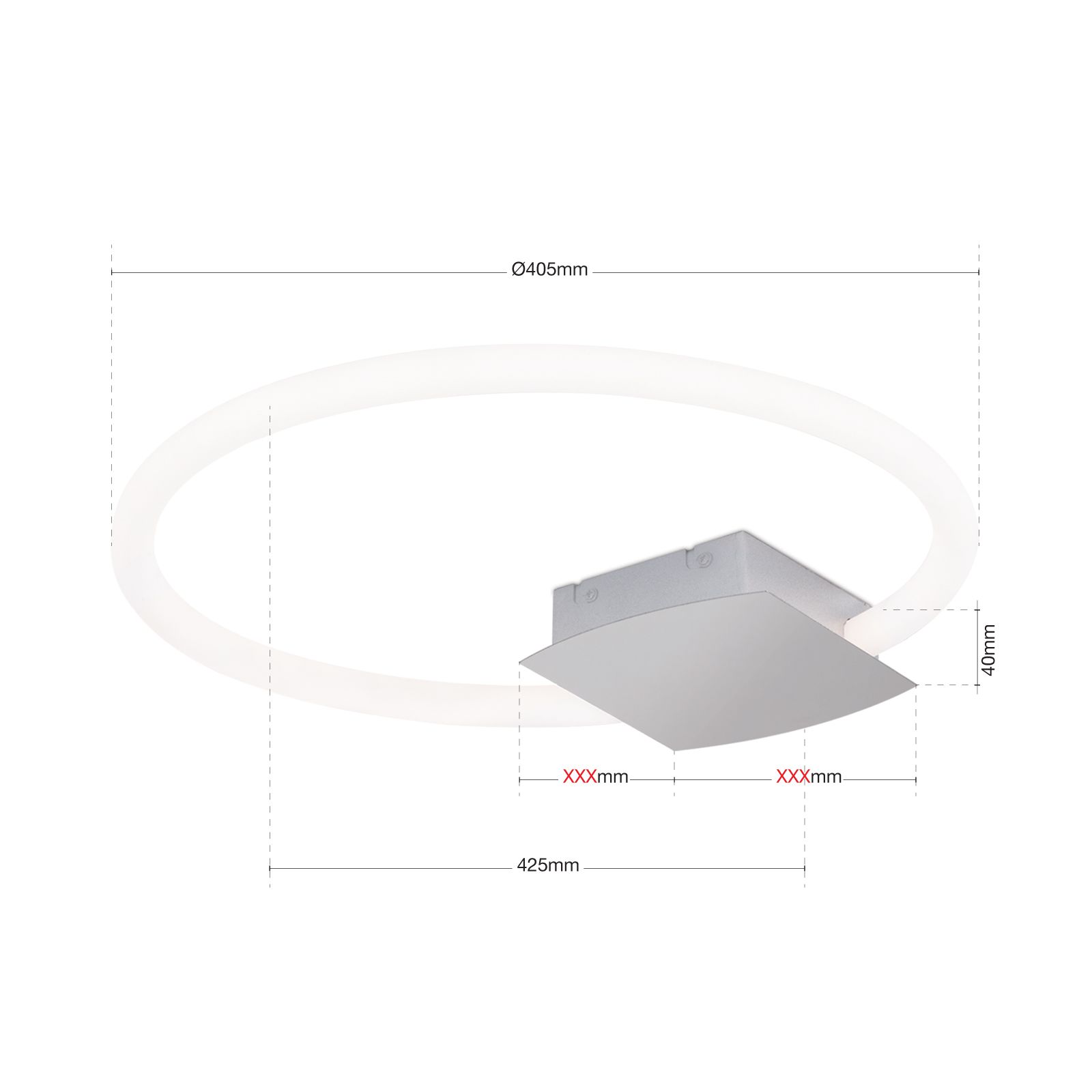 The light has modern LED technology and a light output of 1400 lumens. Warm white LEDs (3000 Kelvin) provide a pleasant and friendly atmosphere. The permanently installed LEDs can be replaced by a technician if necessary. The ceiling light can be dimmed with an LED dimmer and is available in different sizes.