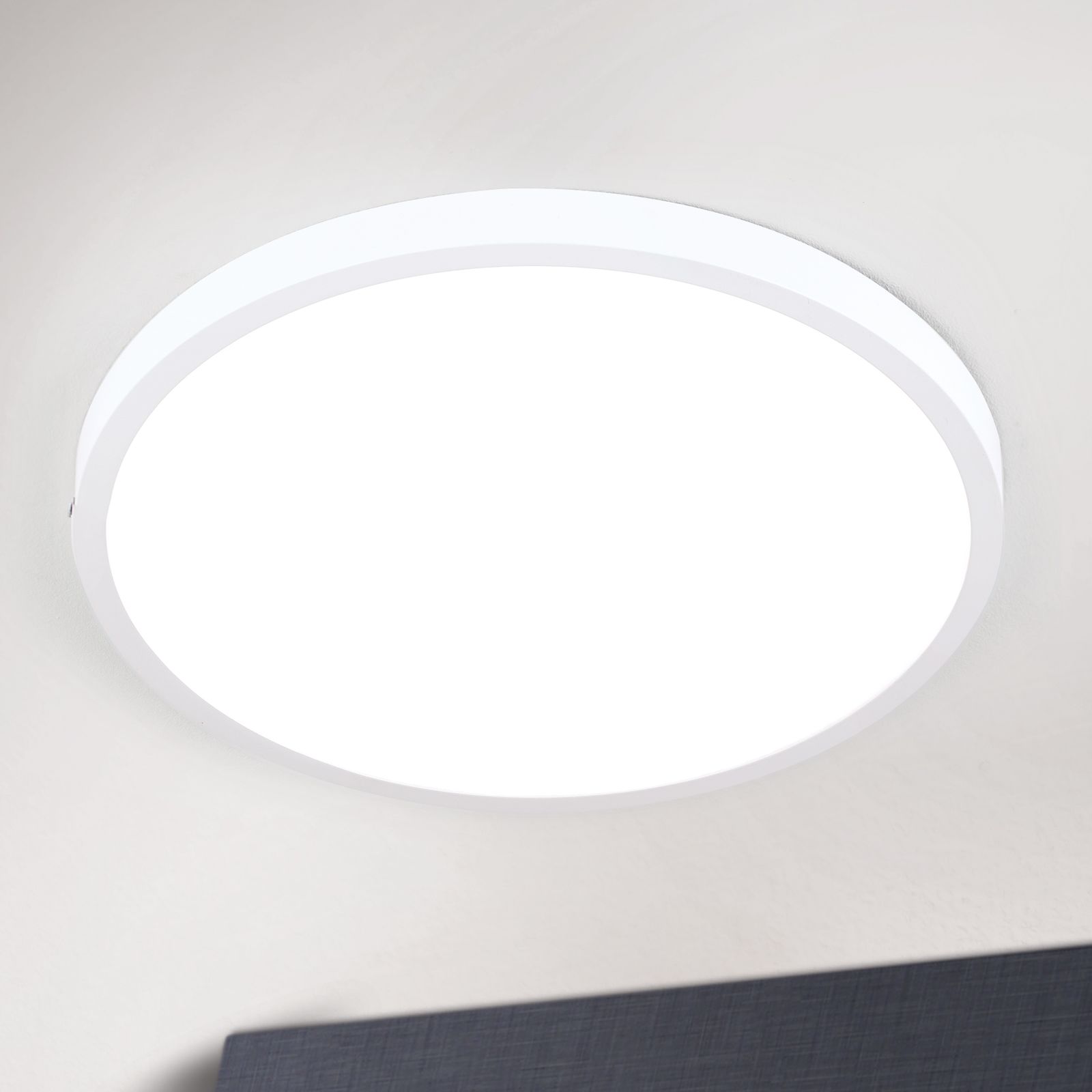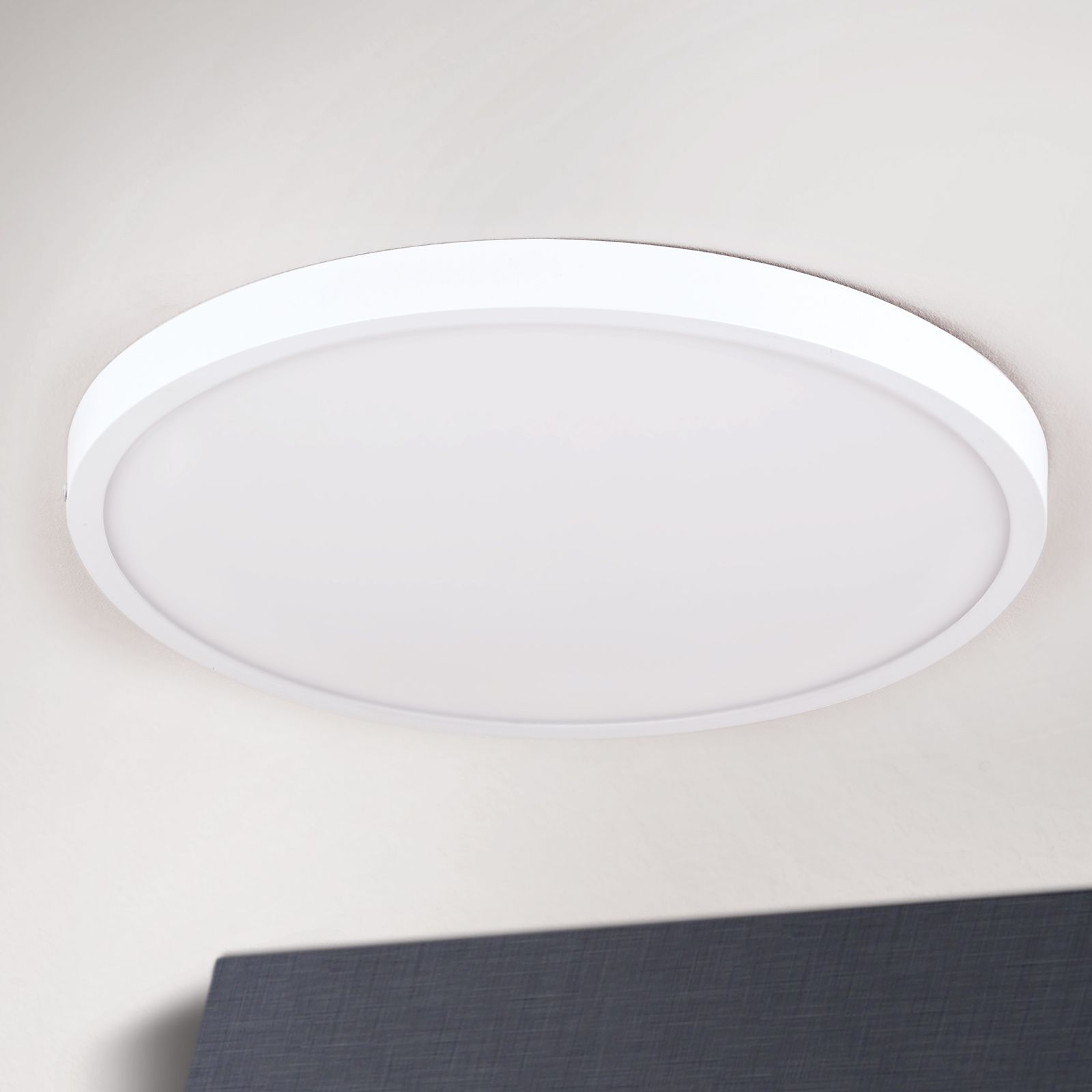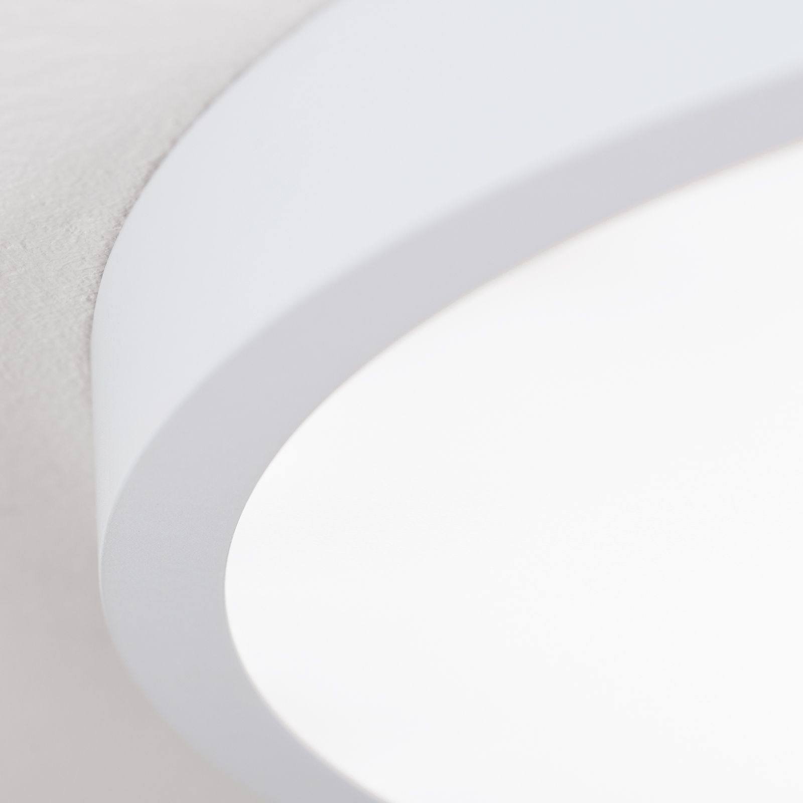 The shade is made of opal matt acrylic glass, the light mount is made of metal with a white finish. For basic illumination of rooms with low ceilings, its low height of only 2.9 centimetres makes it the perfect fit.