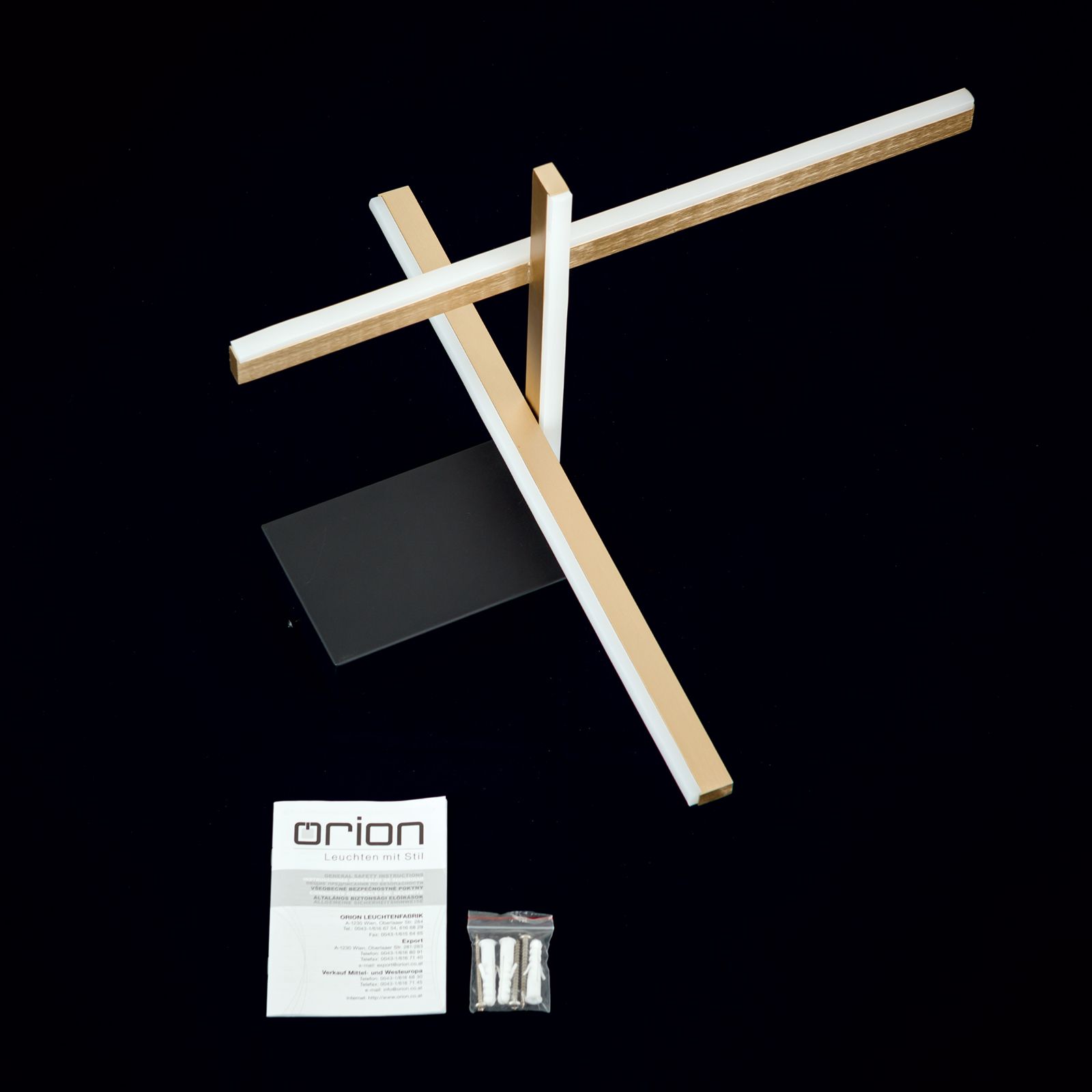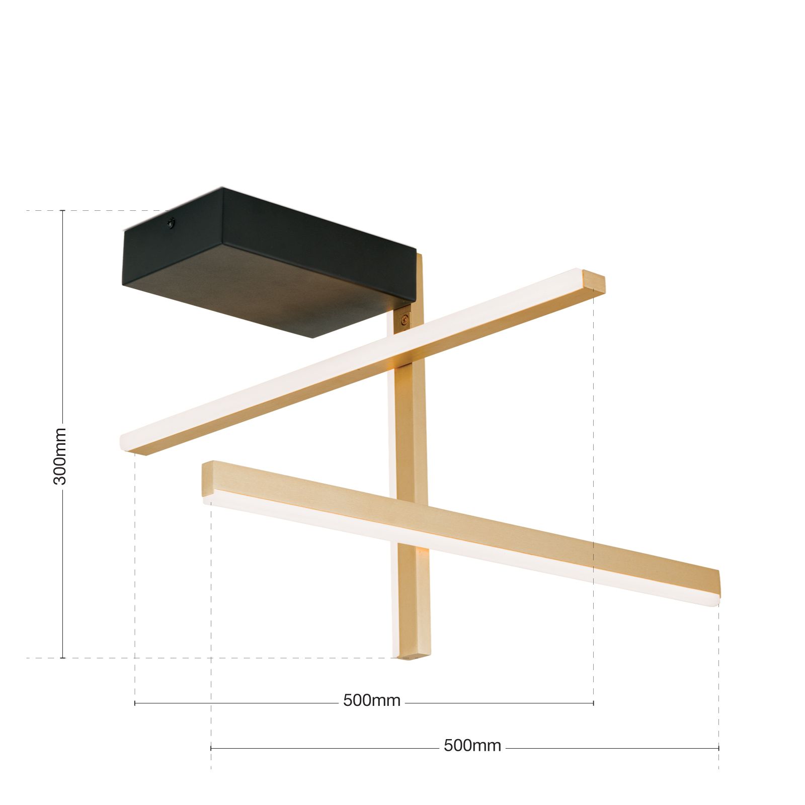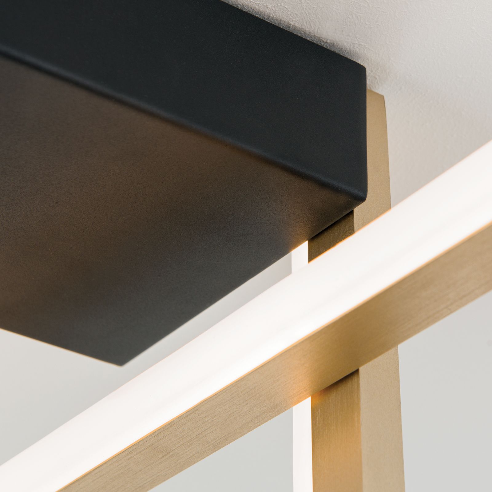 Mounted on a black base is the luminaire frame, which consists of three slim LED elements mounted crosswise. The colour concept is as impressively simple as its formal structure. Black and gold in matt look form the noble surface of the light.