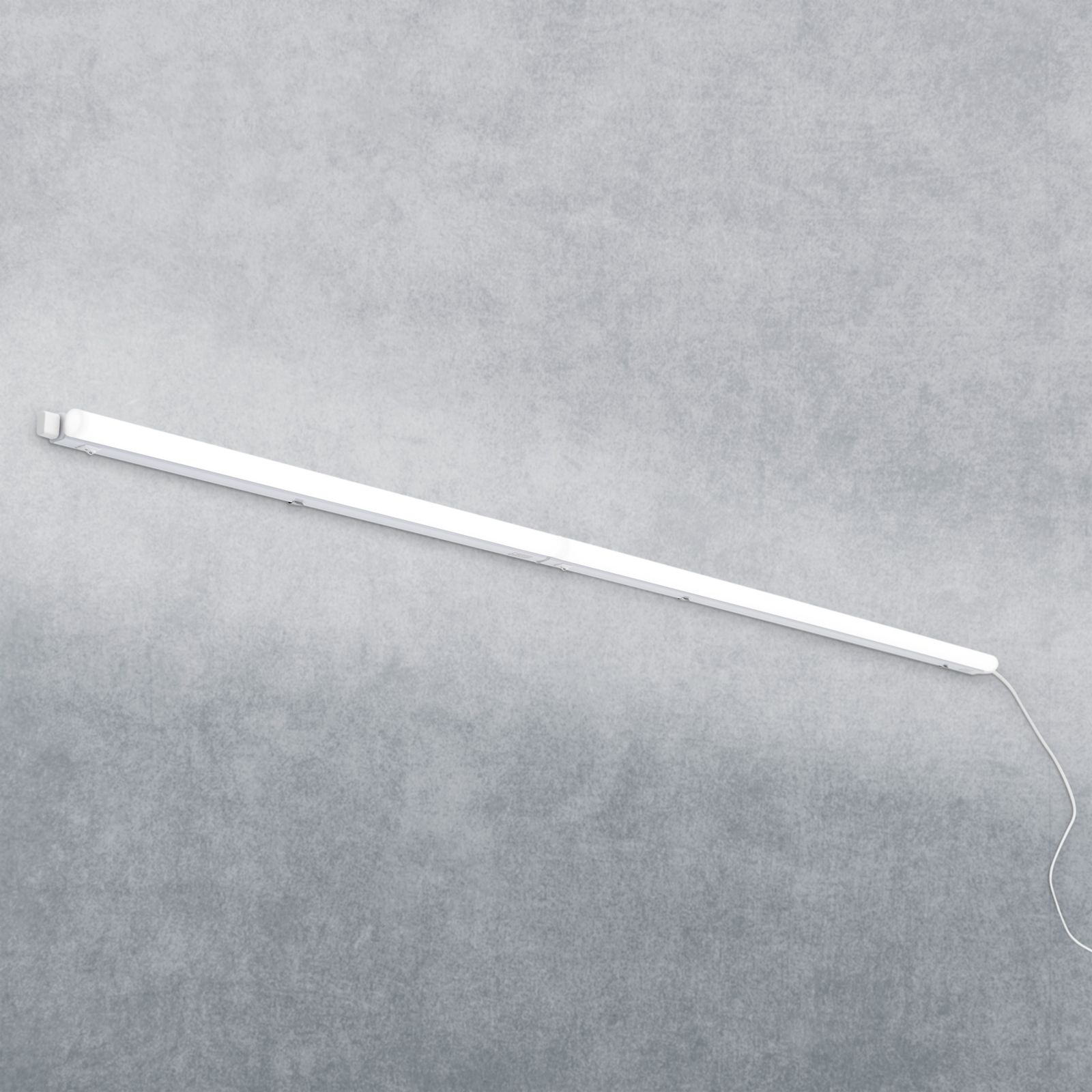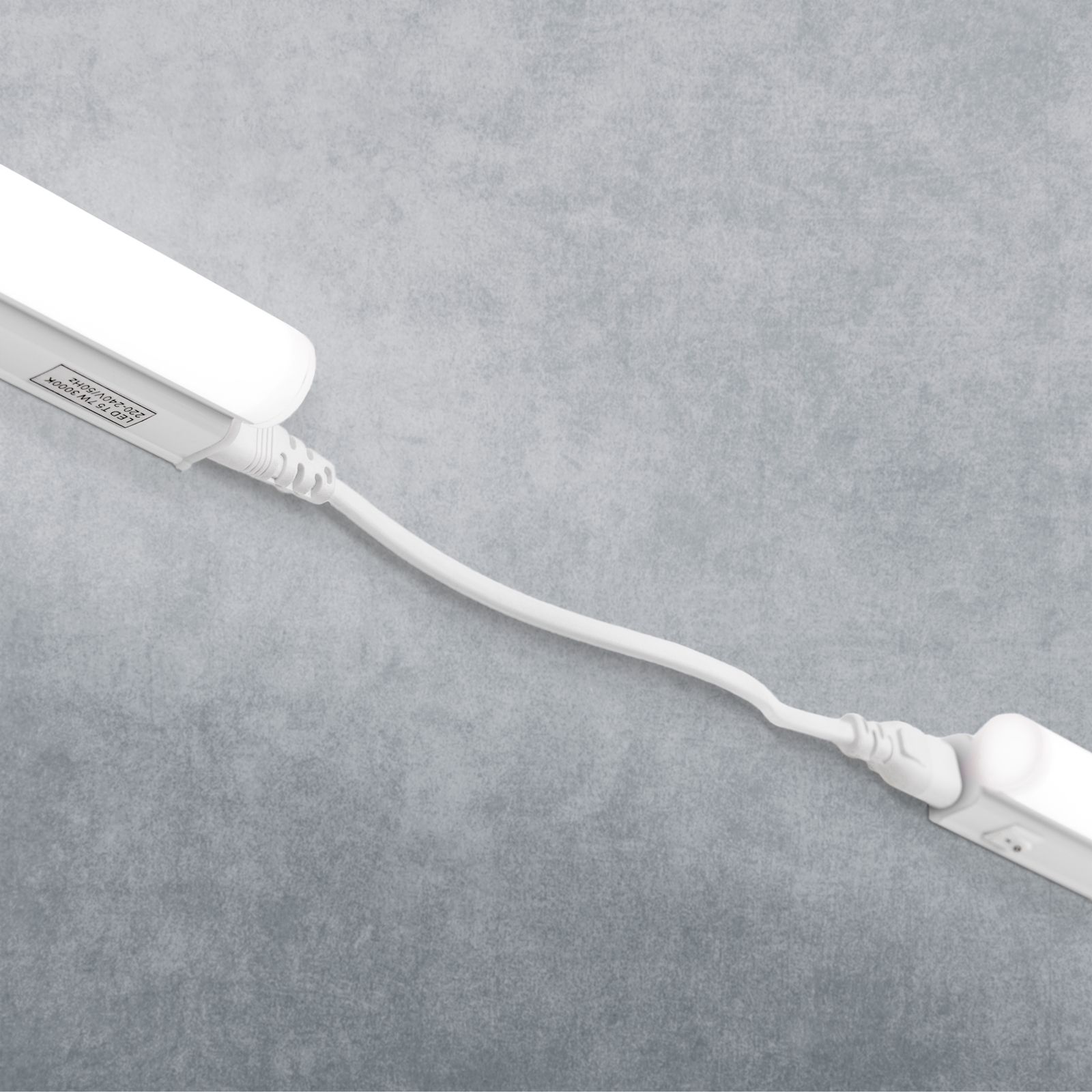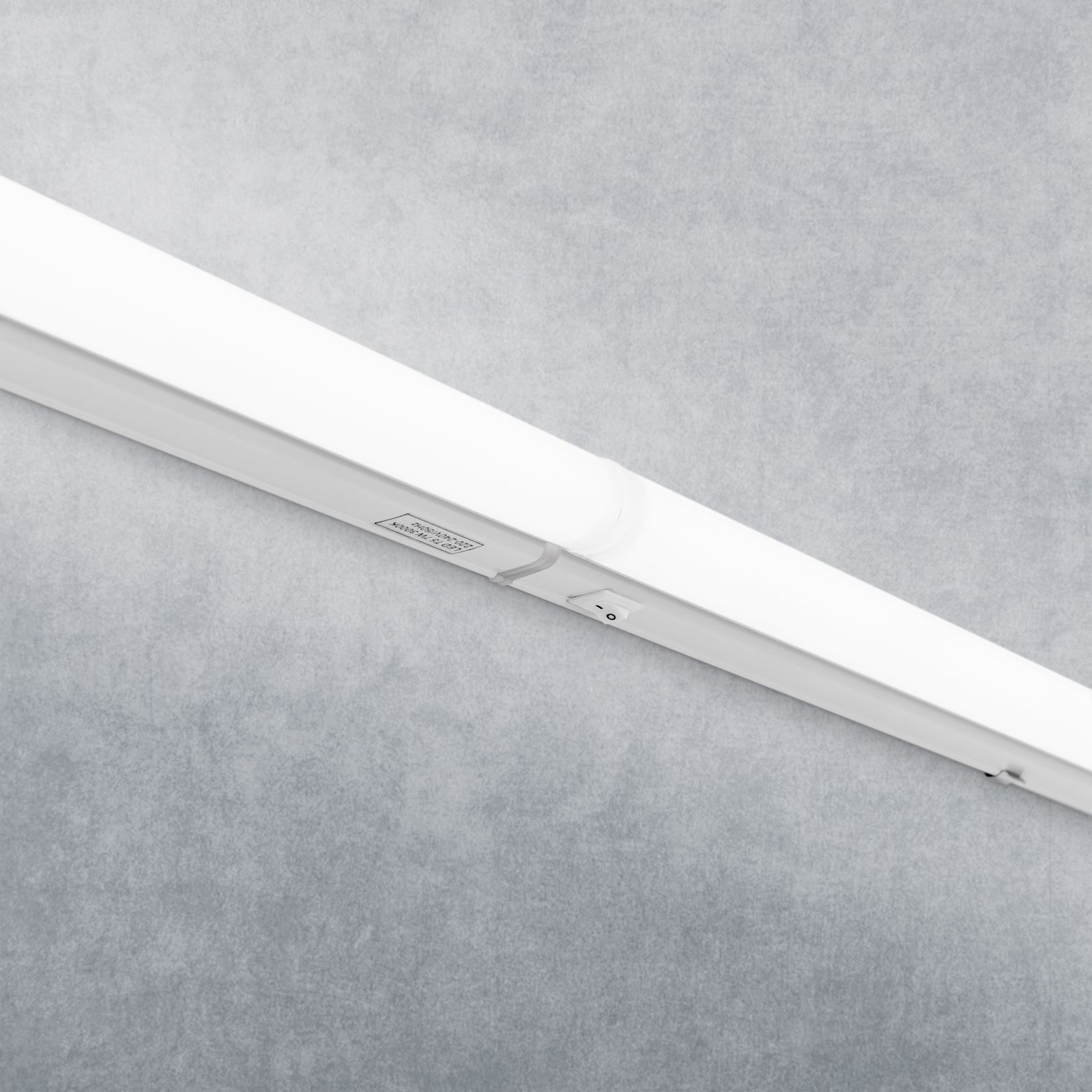 This LED light bar made of white synthetic material is equipped with an on/off toggle switch and can be extended individually. It is ideal for use in kitchens and on shelves. The permanently installed LEDs shine in warm white with a colour temperature of 3000 Kelvin. Several bars can be connected to each other. The connectors are included in the scope of delivery.