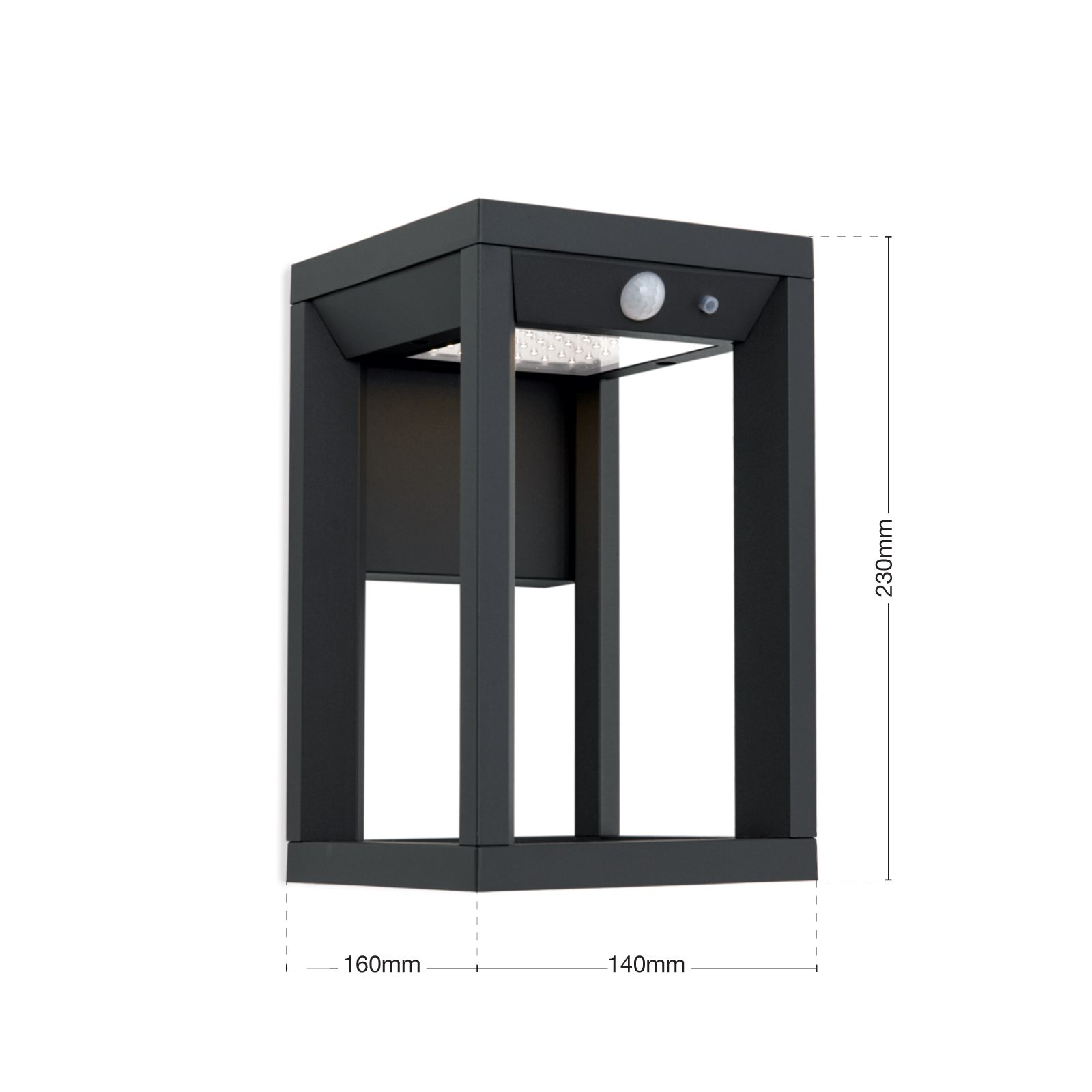 The anthracite-coloured LED solar outdoor wall light VOLTA is the perfect choice for energy-efficient outdoor lighting. Its modern design with a top-mounted solar panel and LEDs mounted on the inside at the top of the light provides pleasant, indirect lighting.