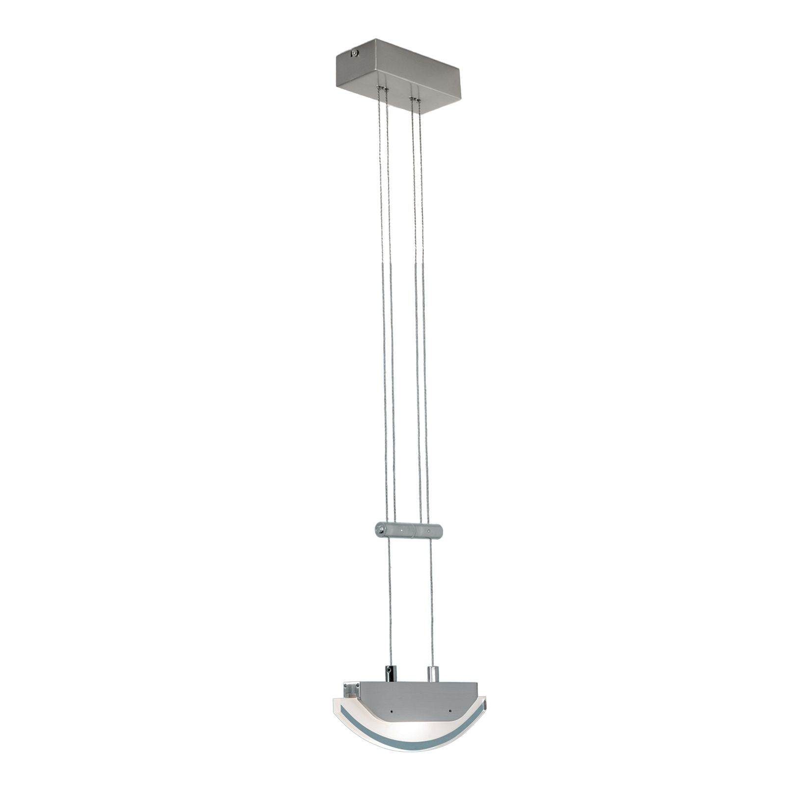 Pendant lamp SWORD integrates perfectly into purist elegant interiors with its ultra-modern appearance. A satinated/nickel matte finish enhances the light's metal body combined with an acrylic glass shade. It is equipped with modern LED technology and 635 lumens light output. Its warm white light has a pleasant effect all around.