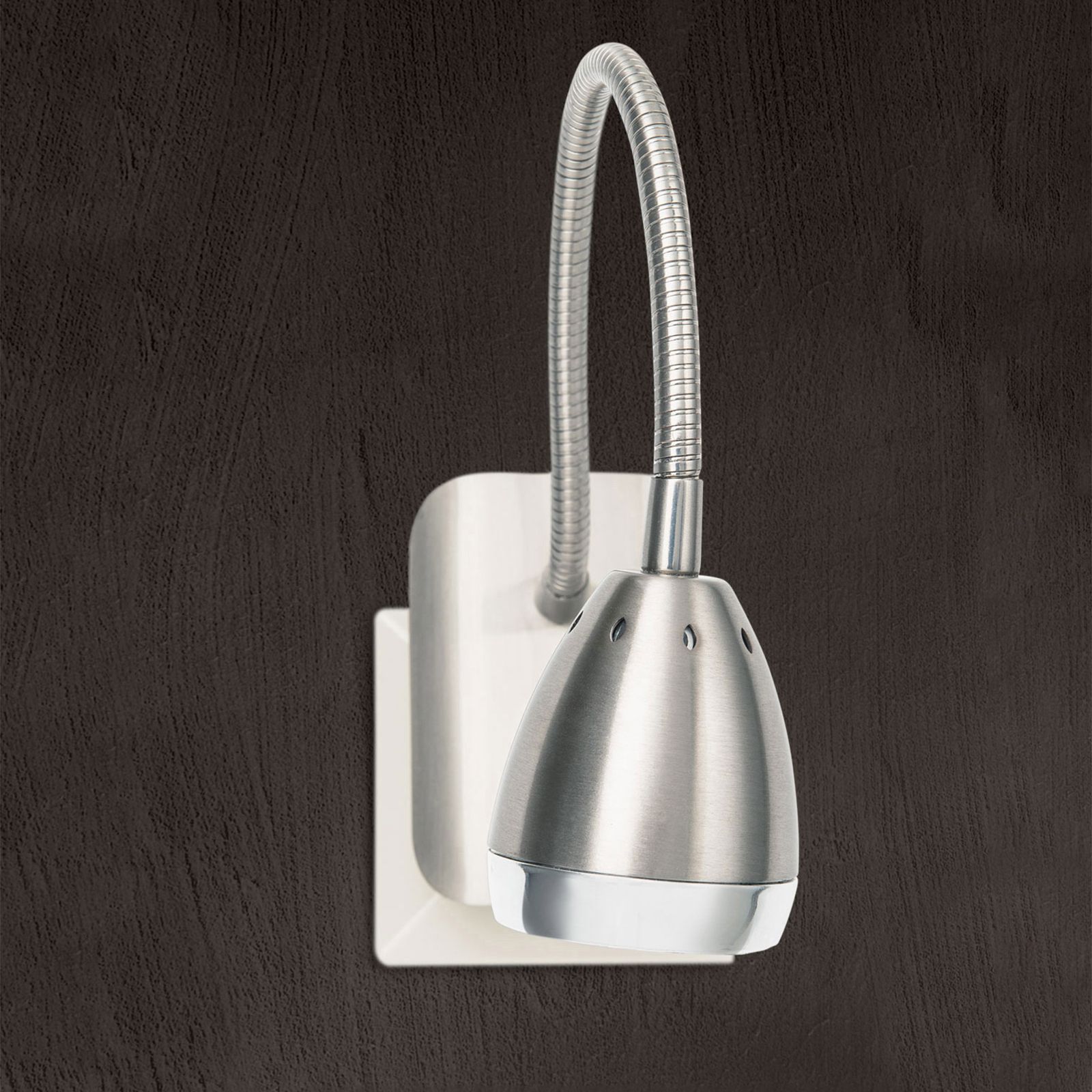 Socket light PLANO does not need any cables making it a practical companion if a socket at the right height is available in the desired location and wireless lighting is preferex. It is ideal as reading lamp, for example, next to the bed head.