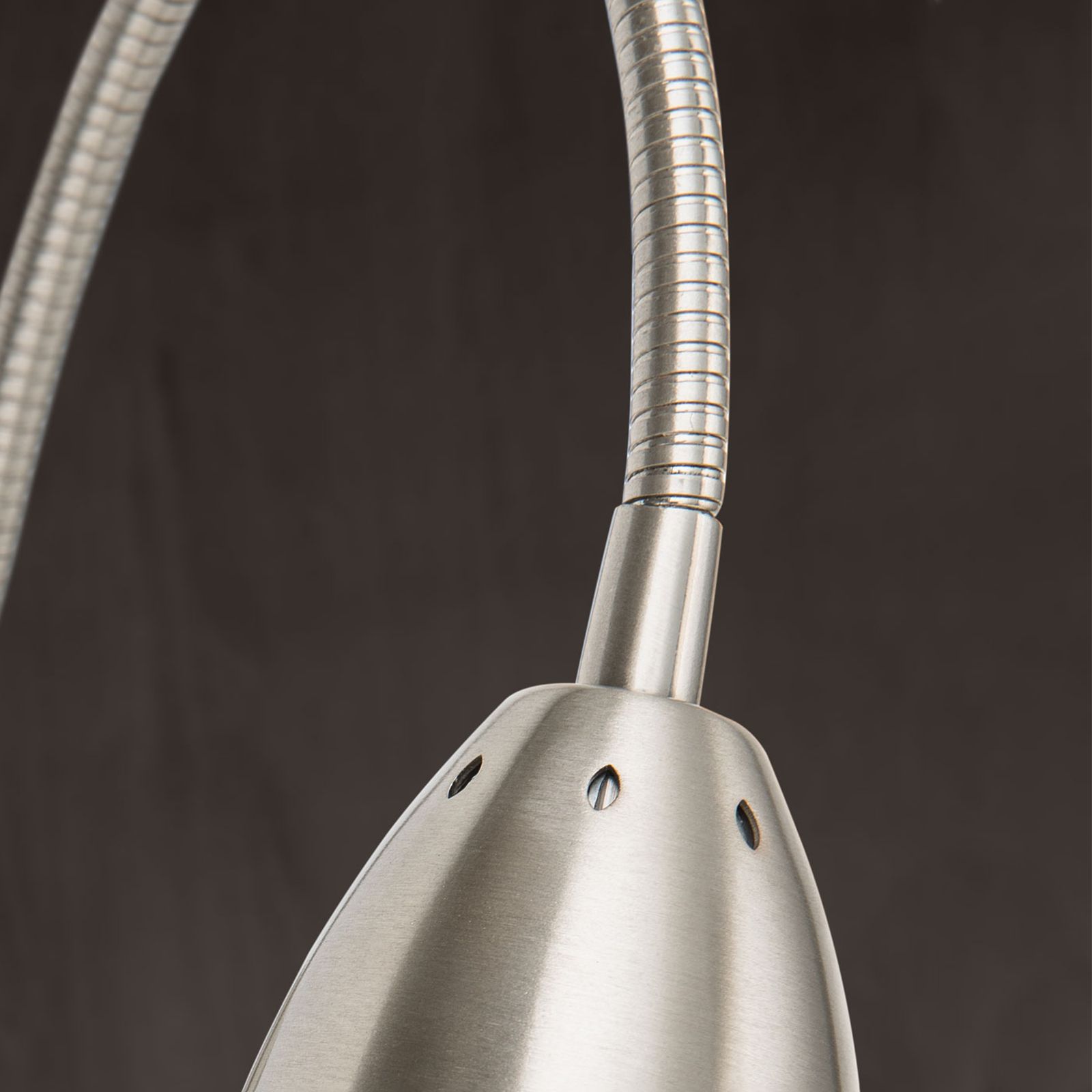 Visually, the socket luminaire trumps with a matt satin steel casing with a shiny spacer ring around the luminaire's head as small highlight plus ensuing glare-free light. This is where the permanently installed LED board is located, that shines pleasant warm white light and shines with longevity and energy efficiency.