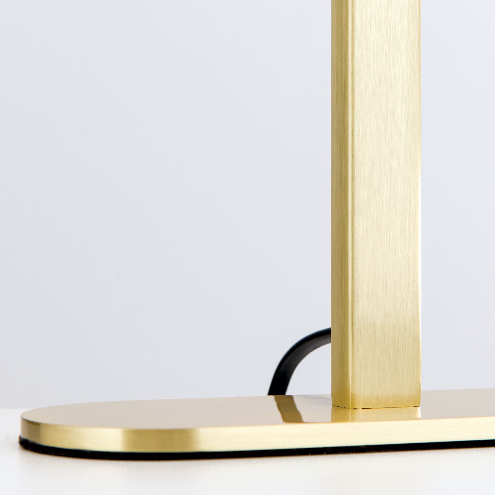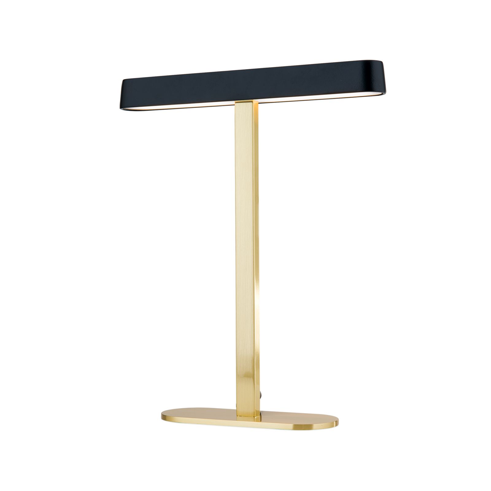 The AUFTAKT table lamp scores with its elegant and minimalist appearance and modern LED technology. With its warm white light (3000 Kelvin), it supports work at the desk but is also an excellent light source when placed on chests of drawers. The elegant straight-lined luminaire frame, which is available in gold as well as satin, is completed with an elongated, matt black powder-coated shade. This is ideal for illuminating the screen workstation in a space-saving and stylish way.