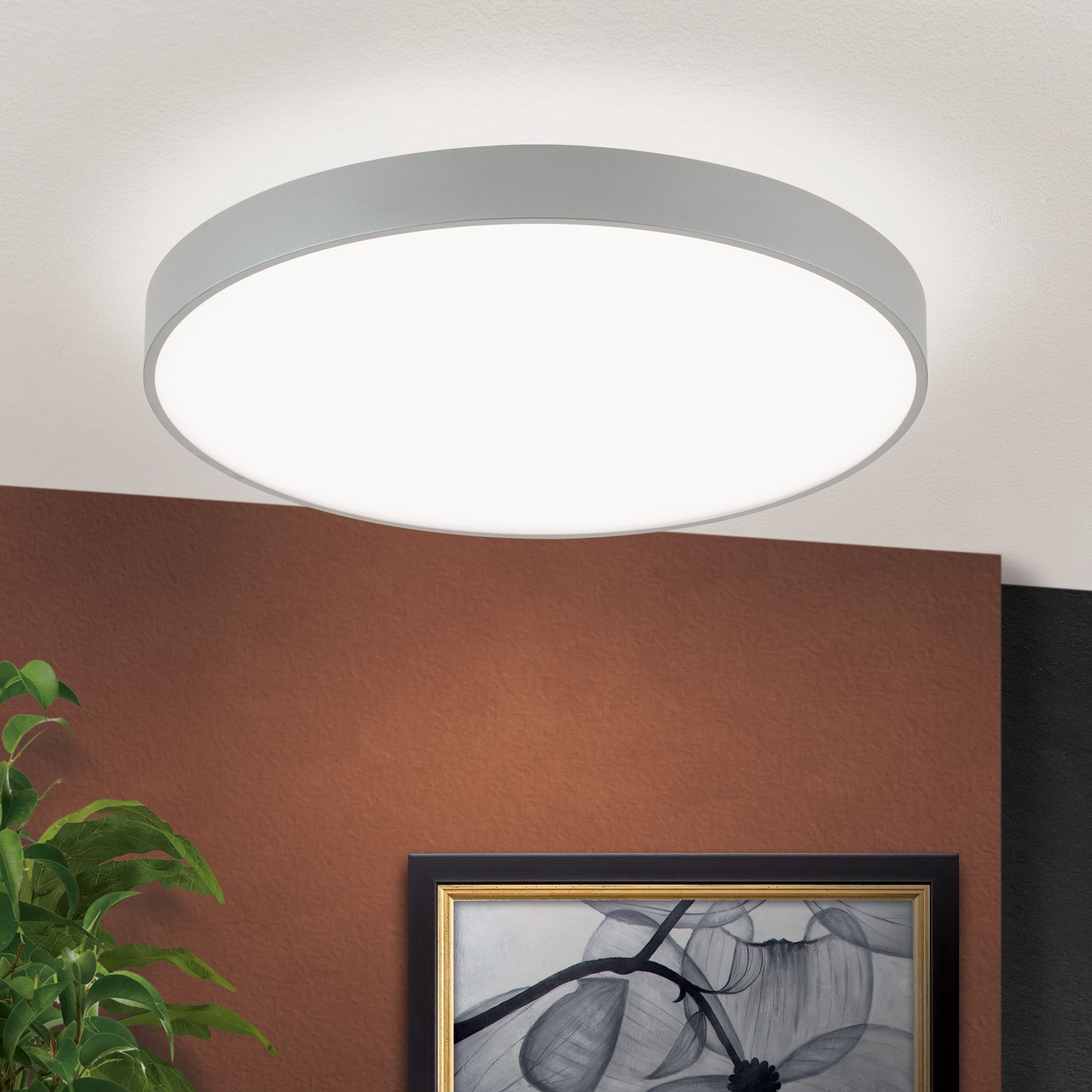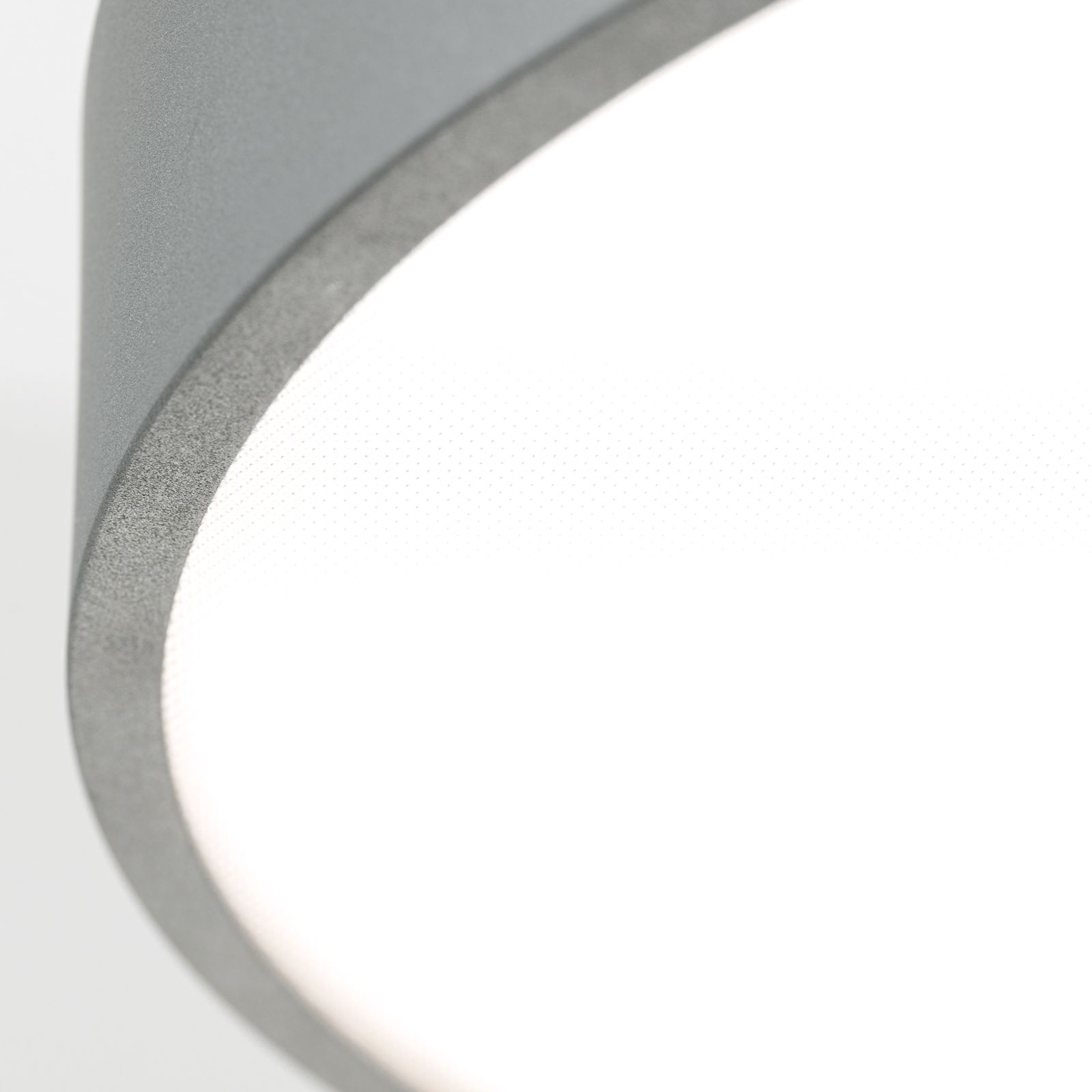 The aluminum frame has a titanium matte finish and includes a plastic diffuser, which provides a homogeneous warm white (3000 Kelvin) light distribution without blinding.