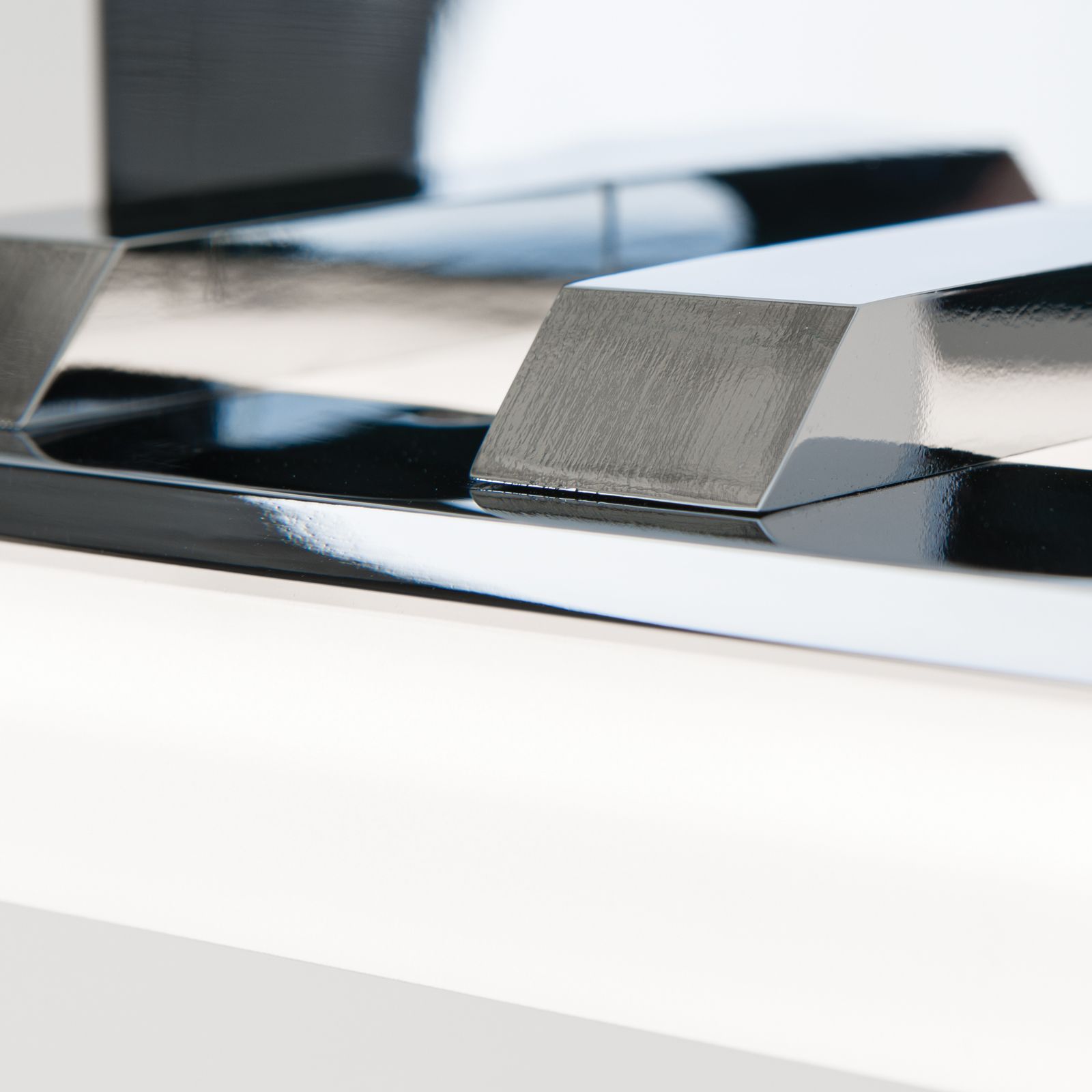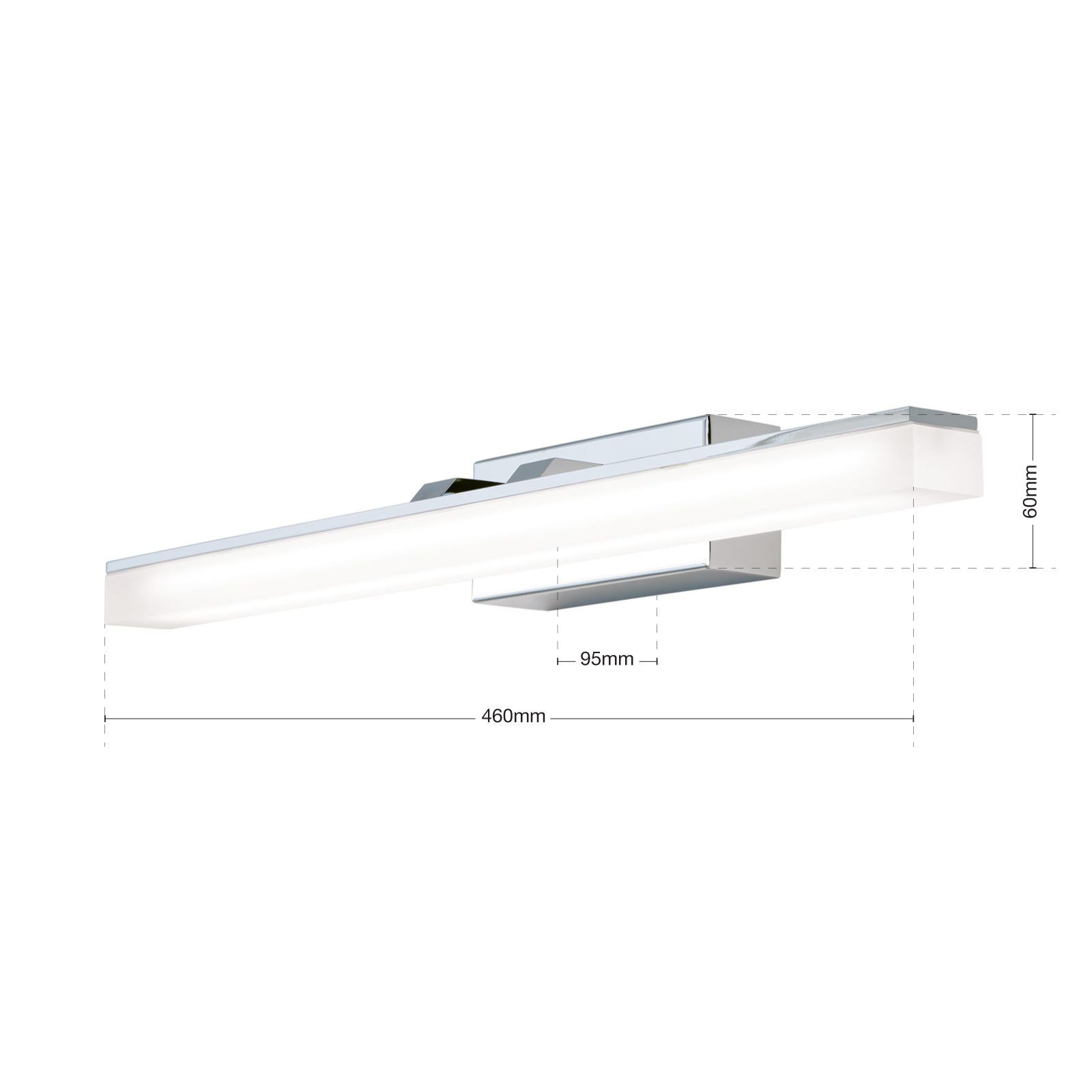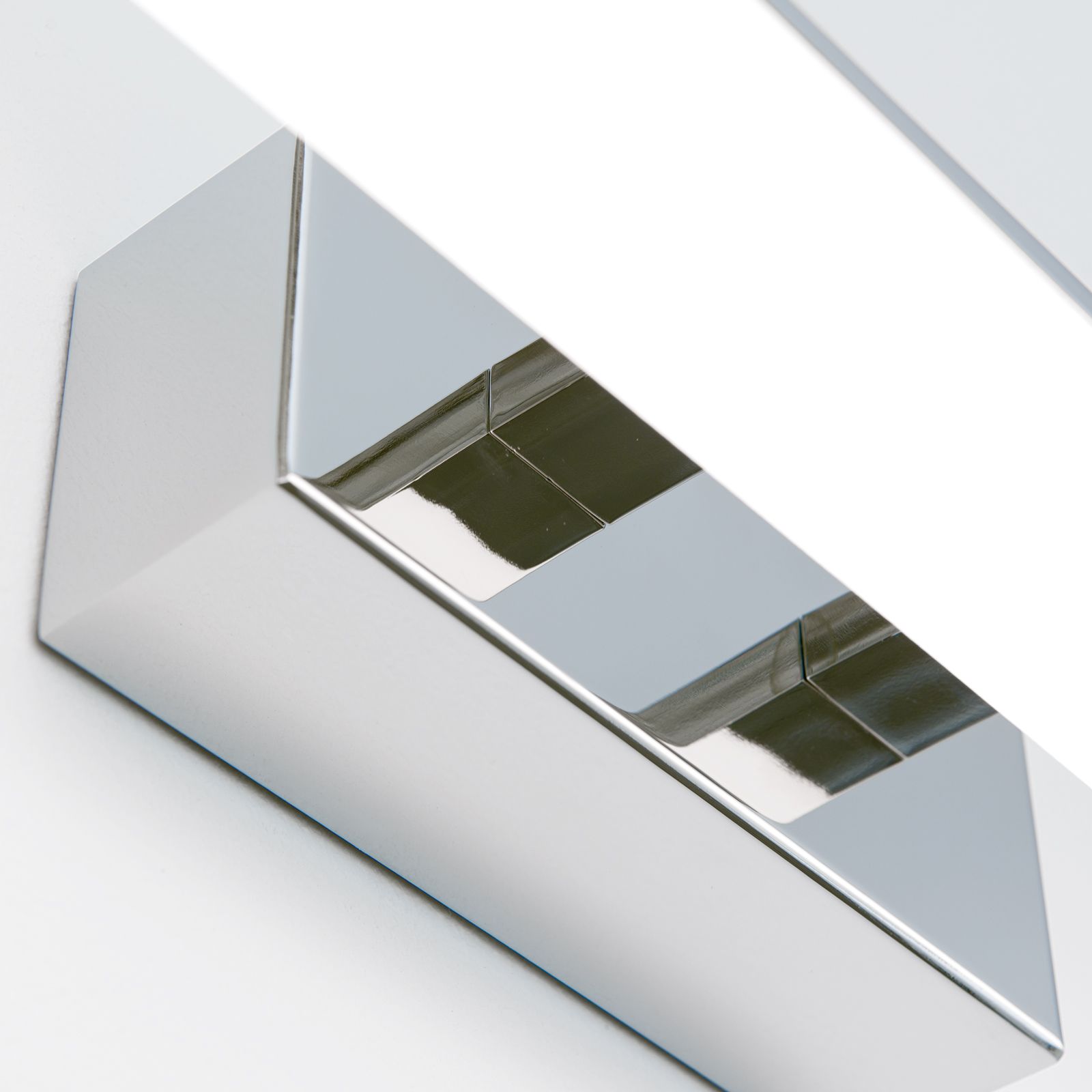 Due to its high light output, it can be used for basic illumination of wet rooms. The mounting has a shiny chrome finish. Due to its height of only 6 and a depth of only 9.5 centimetres, it can be mounted in a space-saving way.