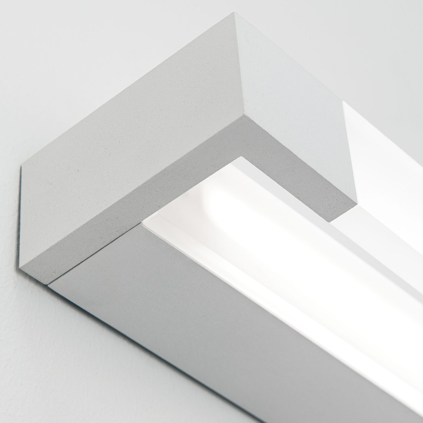 The light's discreet look with aluminium frame and opal matt acrylic glass integrates perfectly into any interior. Due to high protection class IP44, it can be installed without hesitation in humid rooms such as a bathrooms.