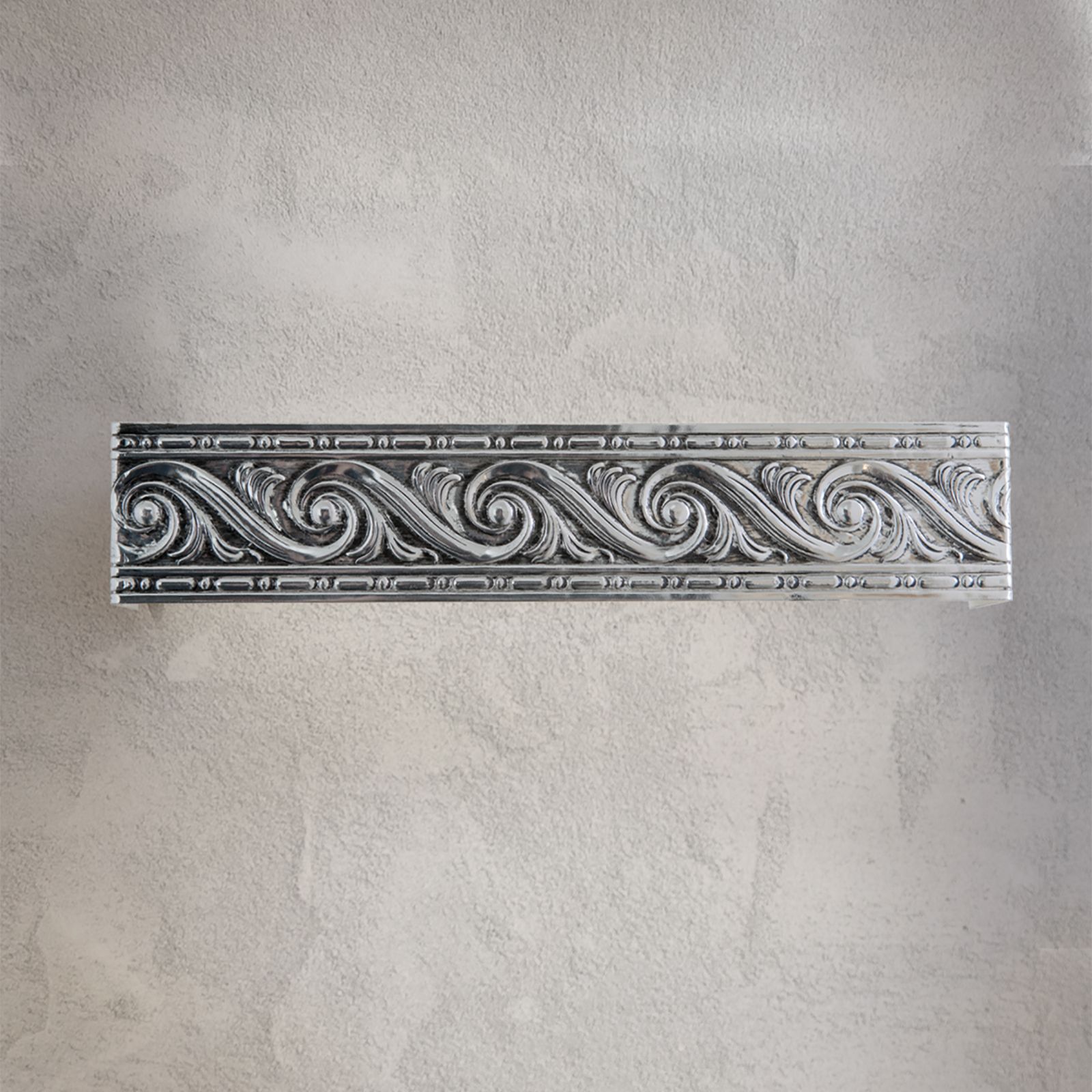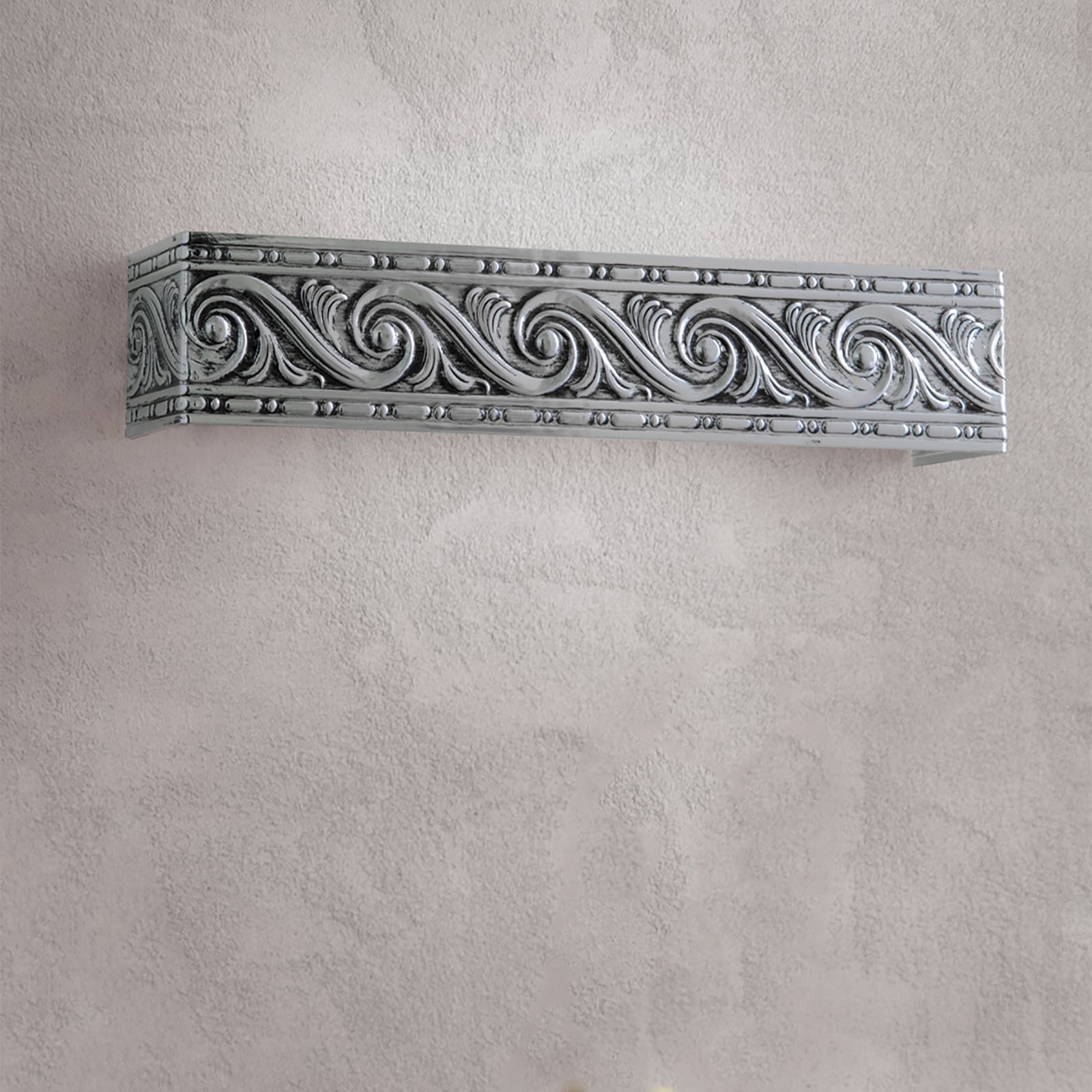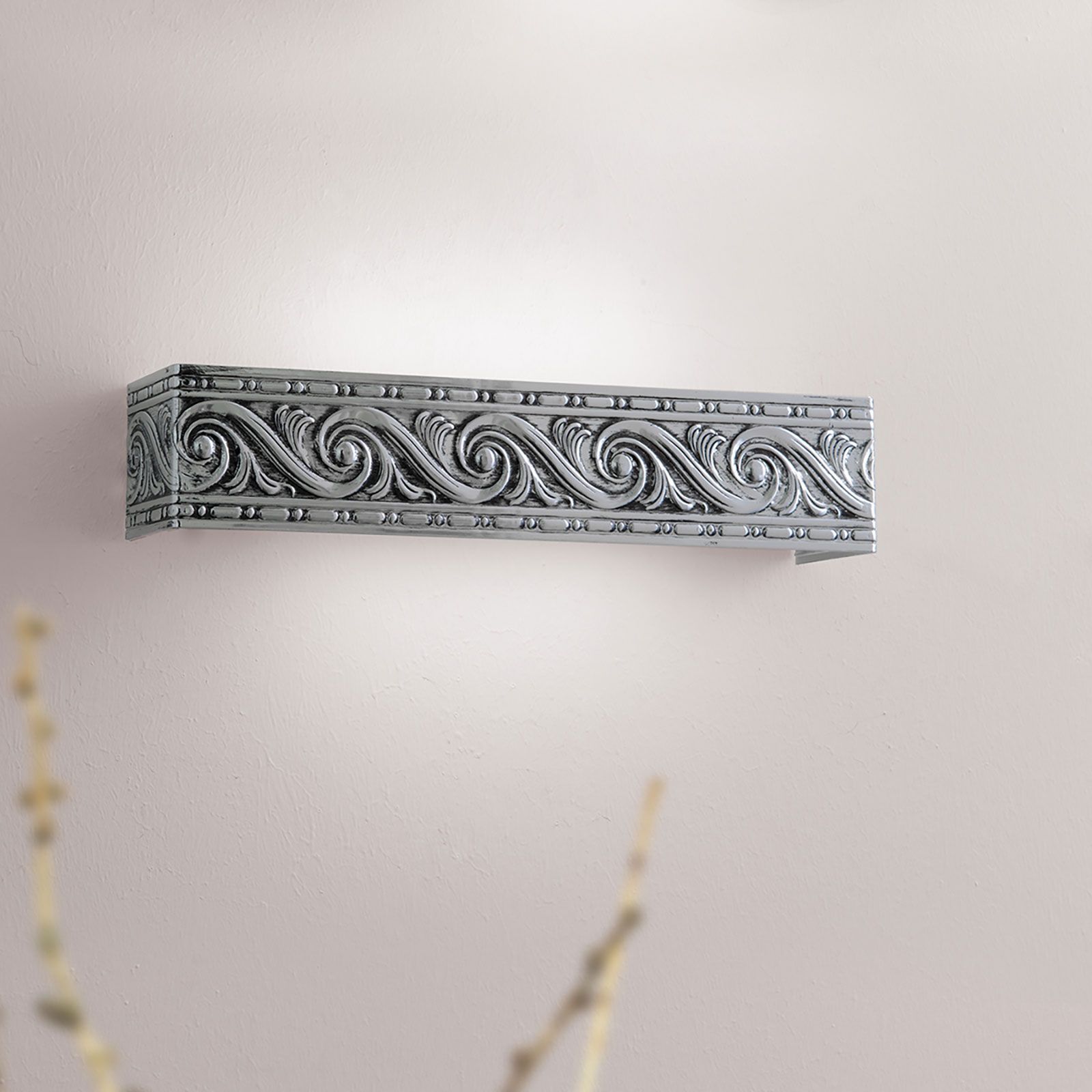 The wall light from the NITA series NITA coordinates best with classic interiors with its its design reminiscent of historic friezes. The lamp is made of metal with a surface finish in white.