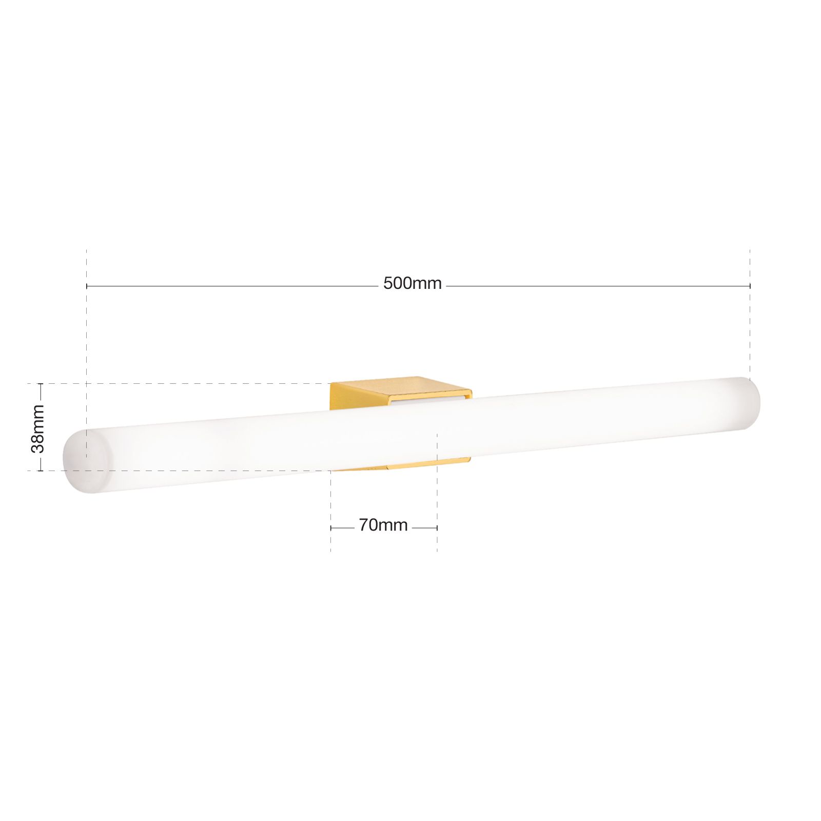 VISAGIST is an extremely modern wall light, which consists only of a rectangular base and a bulb in the form of a tube. Nothing stands in the way of mounting it above a mirror in the vestibule to get that last look before heading out of the house. The metal base has a brass finish, to which the line lamp is attached. This is equipped with a power of 8 watts and emits warm white light with its 680 lumens of luminous flux. The line lamp is included in the delivery.