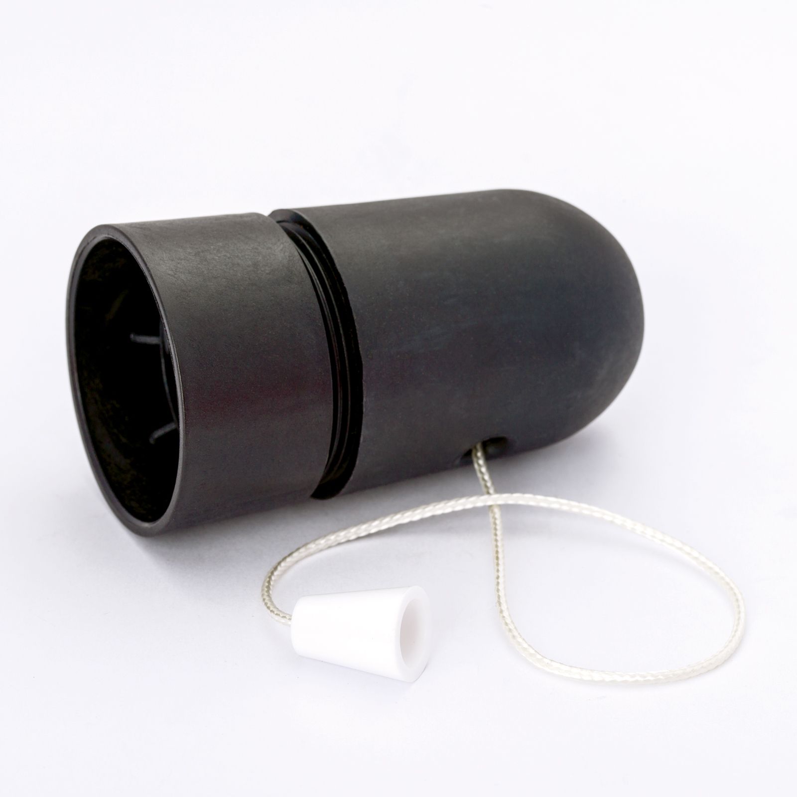 Lamp holder E27 with Telescopic pendant lamp switch, 66 mm, black