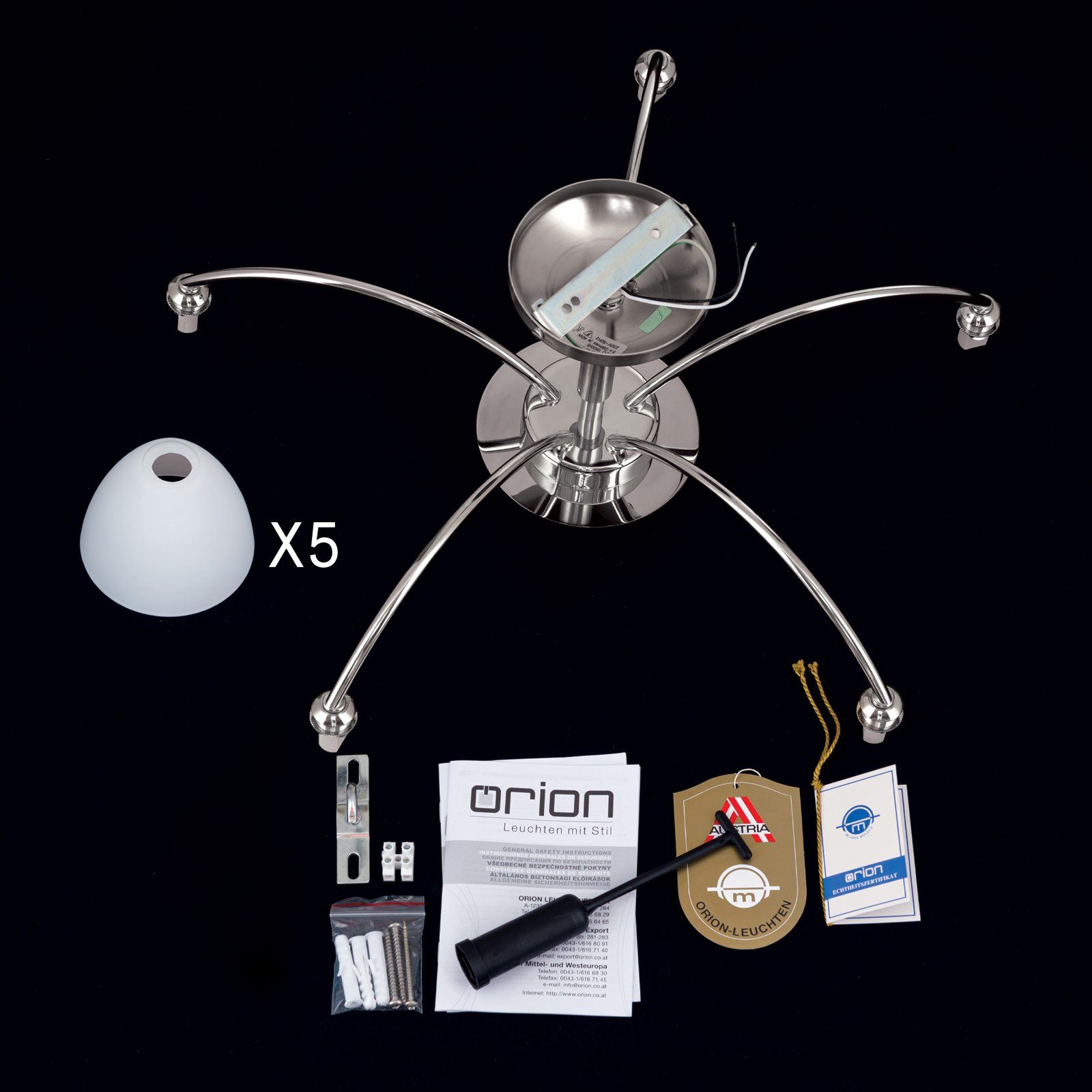 OPALDESIGN ceiling light, 5 lamps, satin chrome with opal glasses