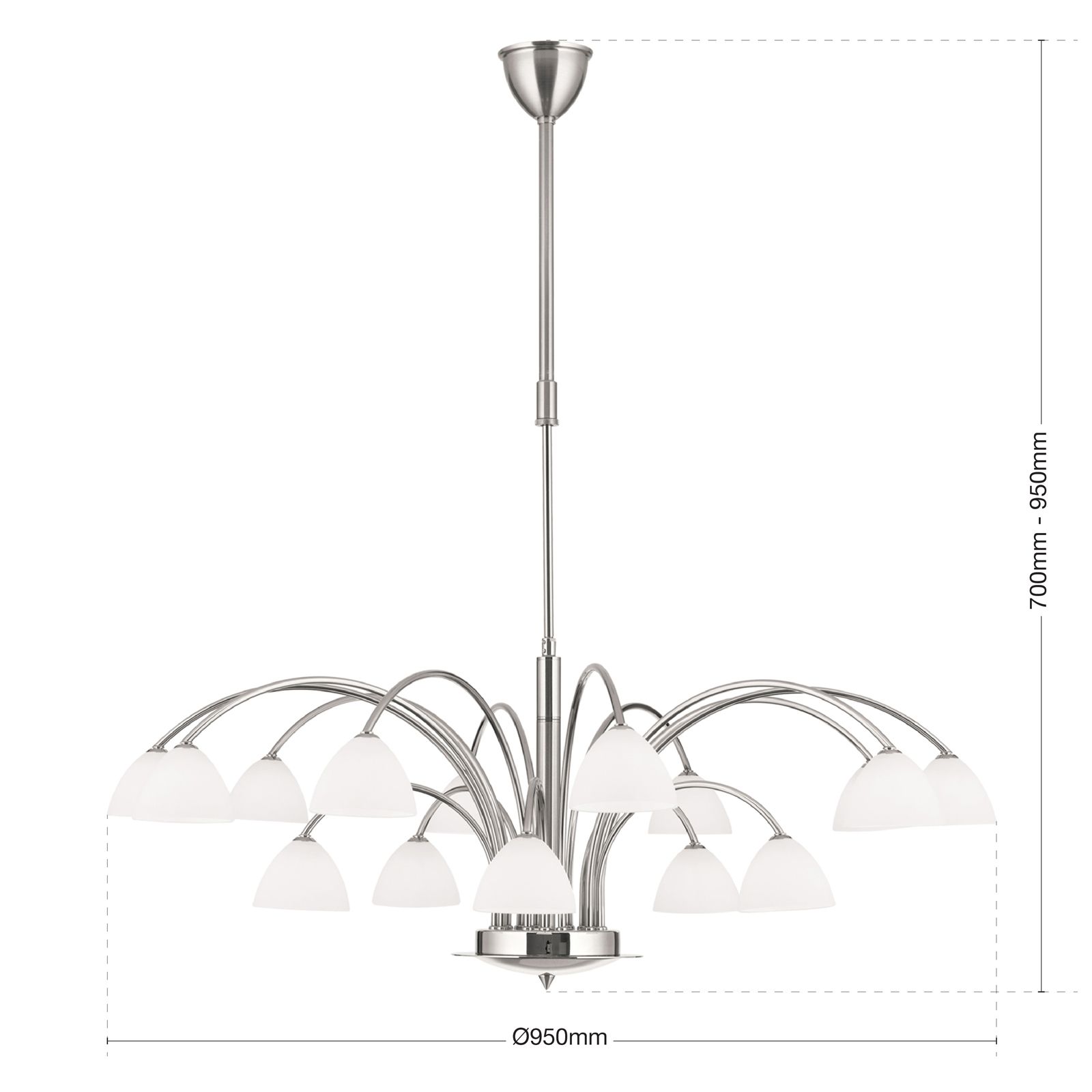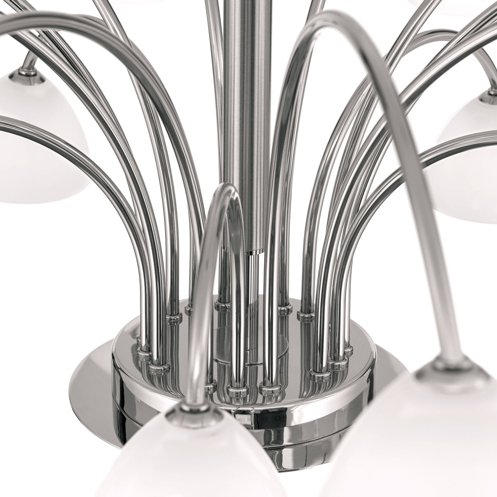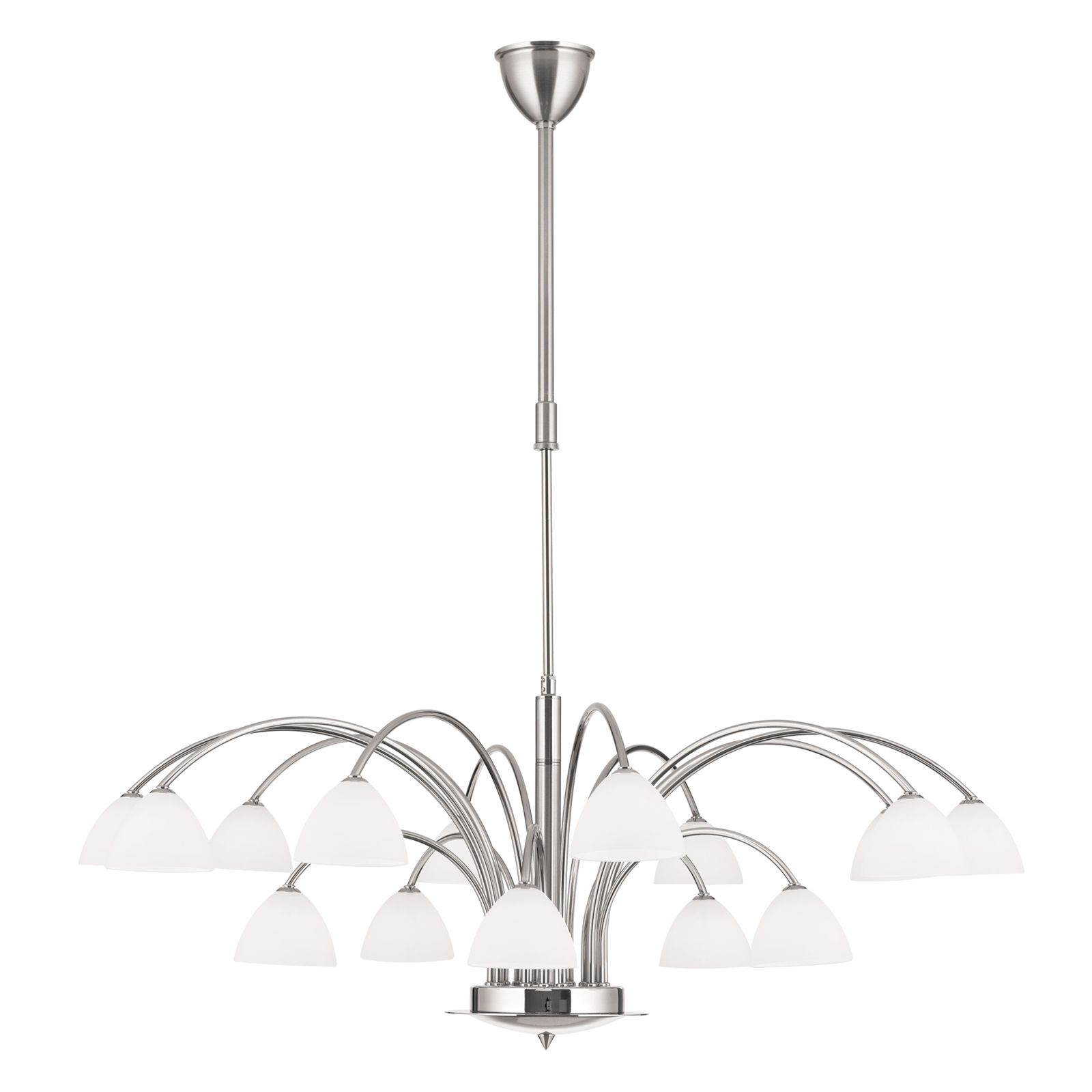 OPALDESIGN chandelier, 15 lamps, satin chrome with opal glasses