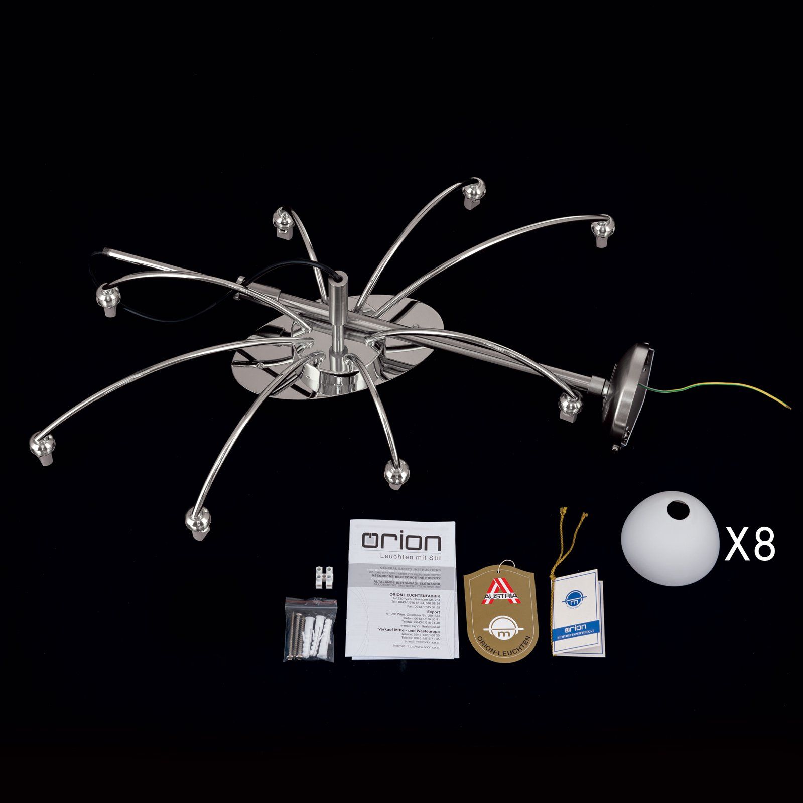 OPALDESIGN chandelier, 8 lamps, satin chrome with opal glasses