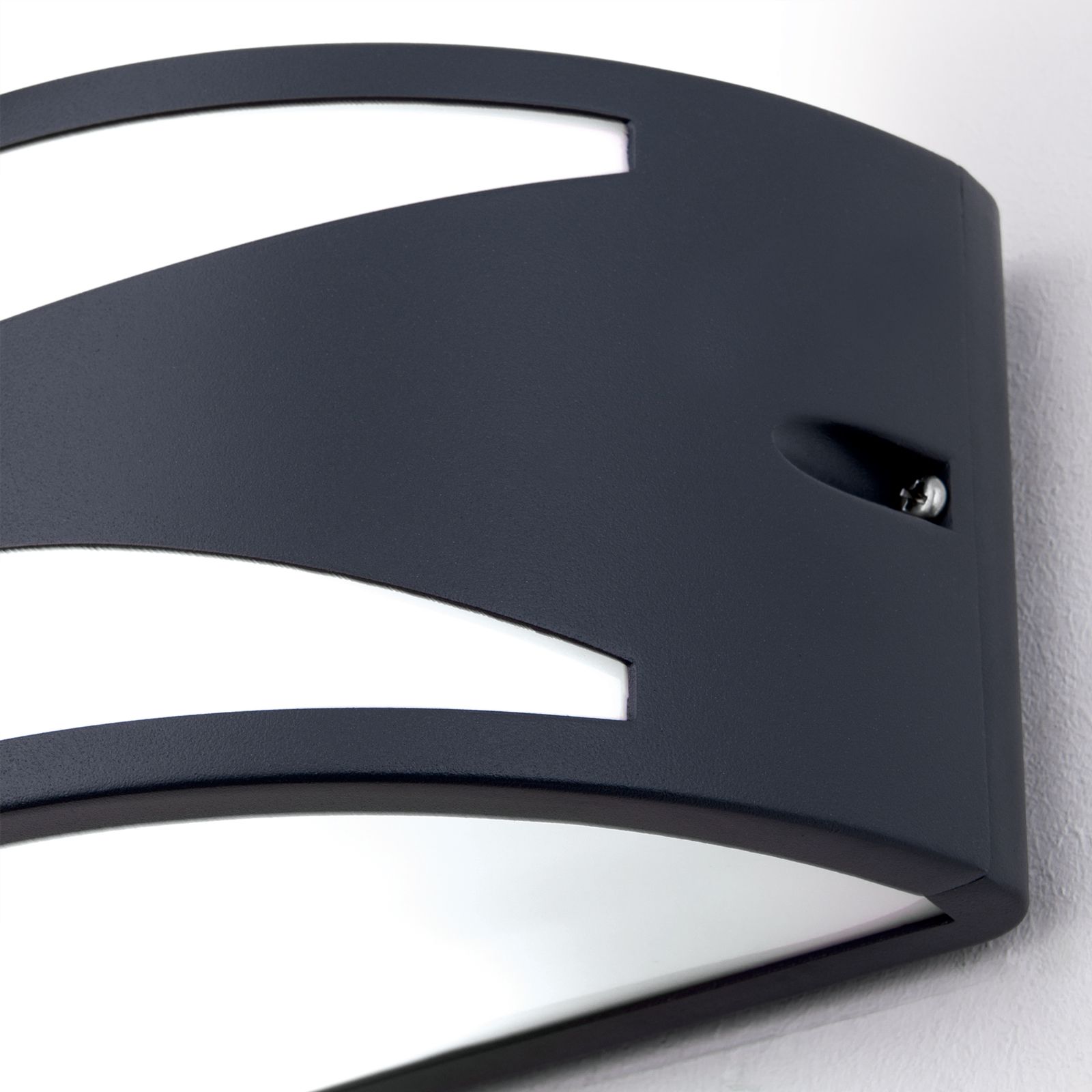 The defining design element of the outdoor wall light SHELL is the circle segment, which is not only reflected in the round basic shape, but also in the openings of the shade.