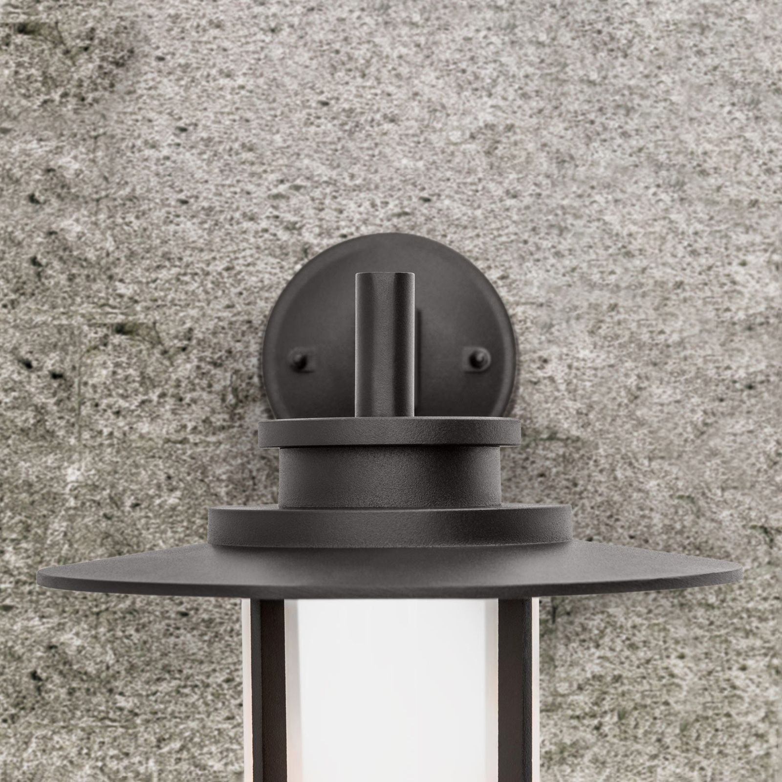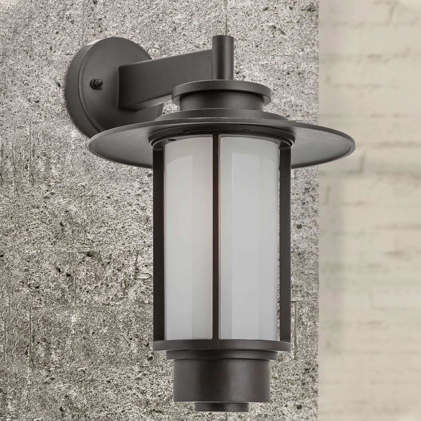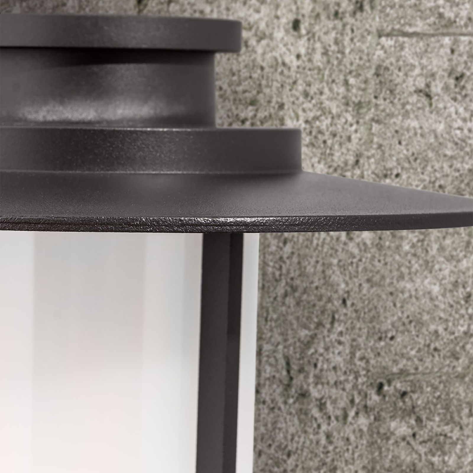 Due to its minimalist design, outdoor wall light TEIKO is suited for any type of outdoors. It fits modern architecture with strict straight lines just as well as playful and colourful shapes. Its design power lies in the interplay between delicate stays framing the glass shade and the cast body's robustness. The light seems to float - reinforced by the shape of the rain canopy. At the same time, the high-strength material, an aluminium-silicon alloy, guarantees the light's longevity. An E27 socket supplies it with 60 watts maximum. Protection class IP44 is against penetration by solid foreign bodies in more than 1mm size and against splash water from all sides.
