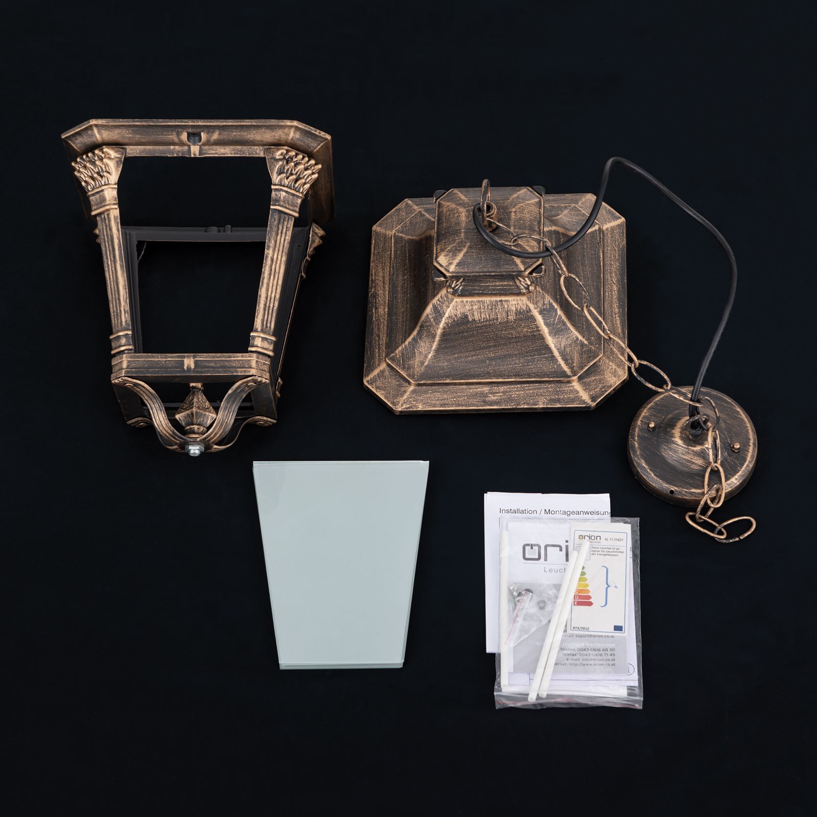 Satinated glass panes prevent disturbing glare effects when used above covered patio tables or in pergolas. The lamp is equipped with an E27 socket with maximum 60 watts output, providing free choice of light source.