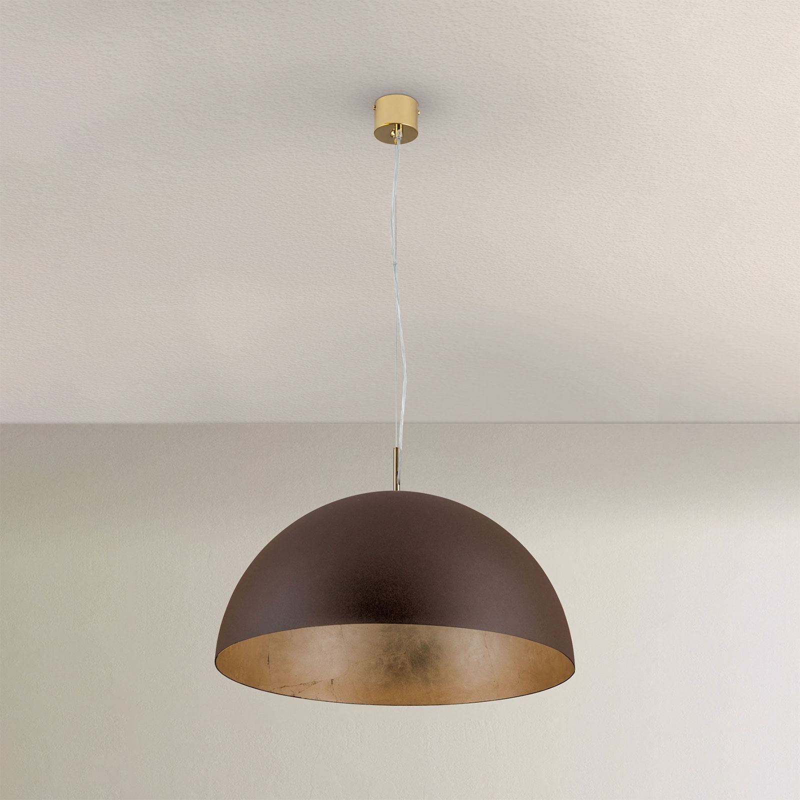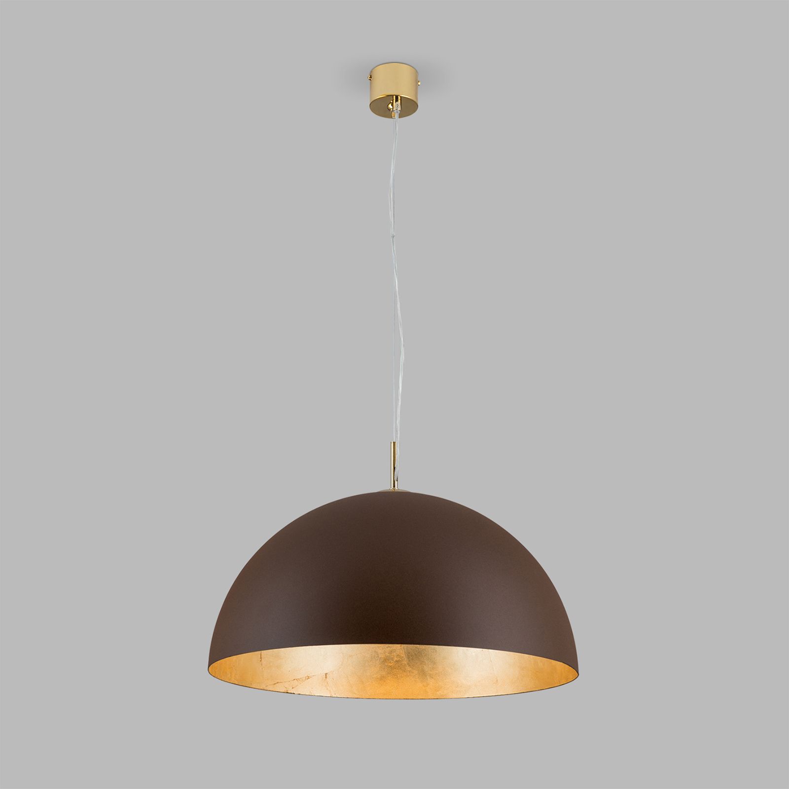 Retro chic in a modern interpretation is the winning point of pendant lamp ELIANO with a striking colour scheme in warm earth and fire tones. On the outside, the dark brown shade looks muted and classic, while the inside shines in an antique gold. A warm white bulb in an E27 socket enhances the cozy atmosphere and brings out the rustic structure.