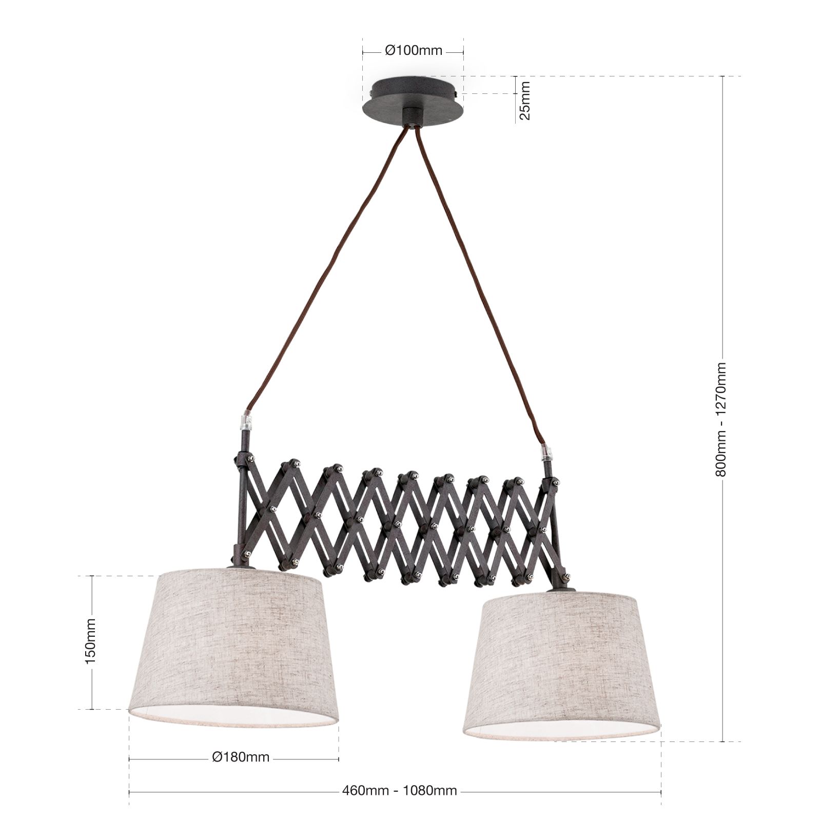 Pendant lamp FACTORY, 2-lamps, with textile shades