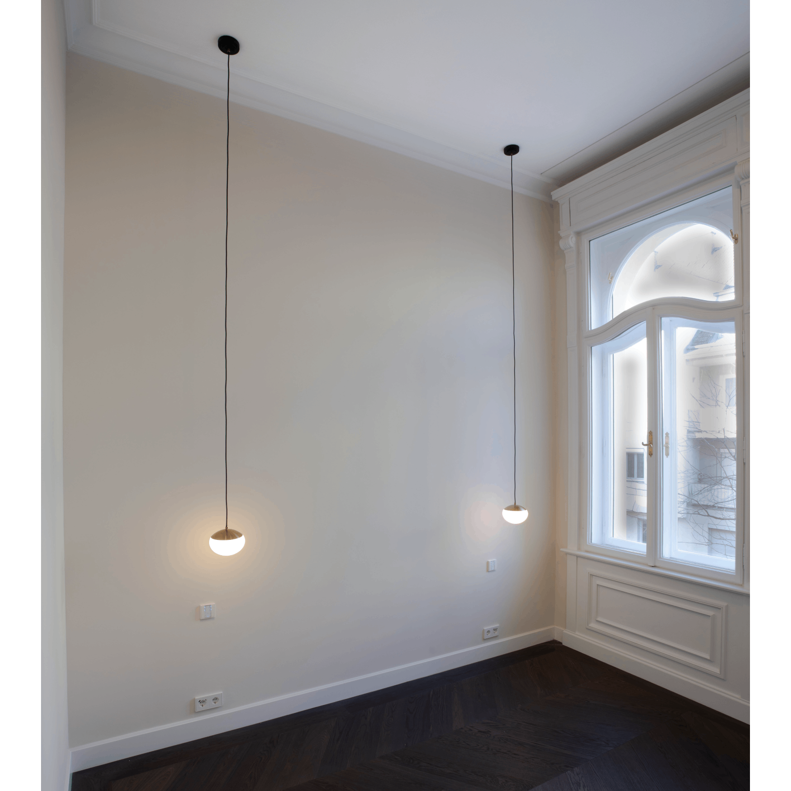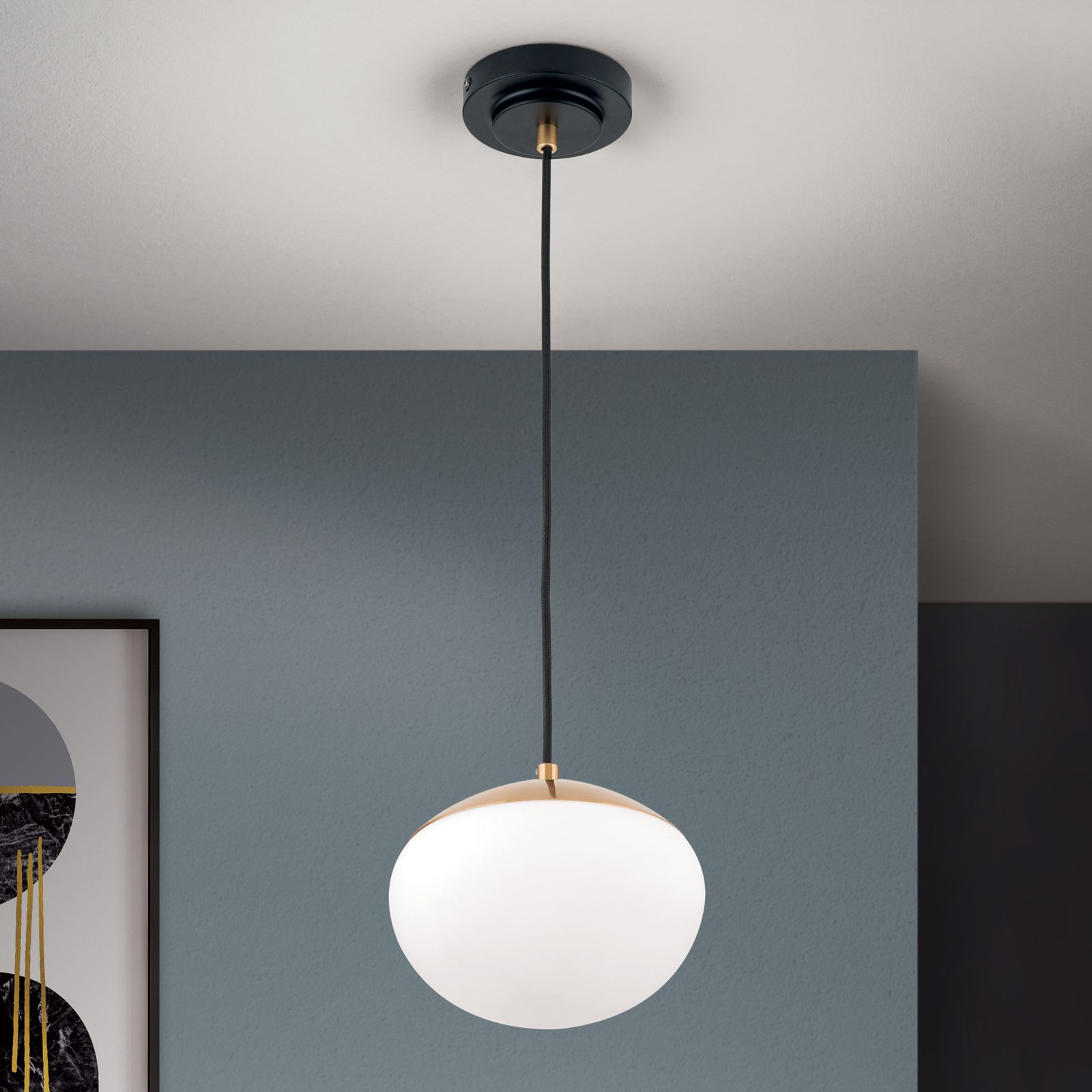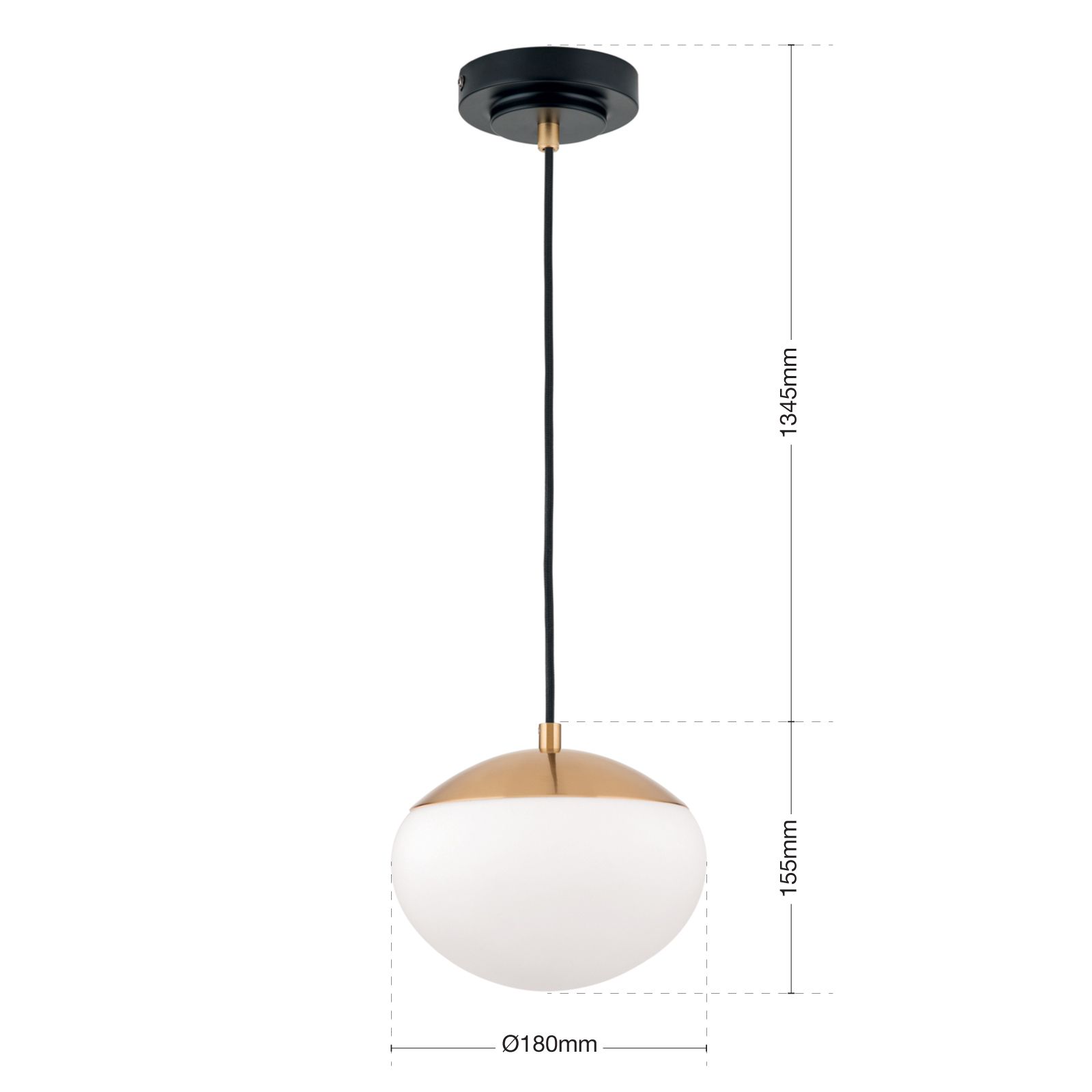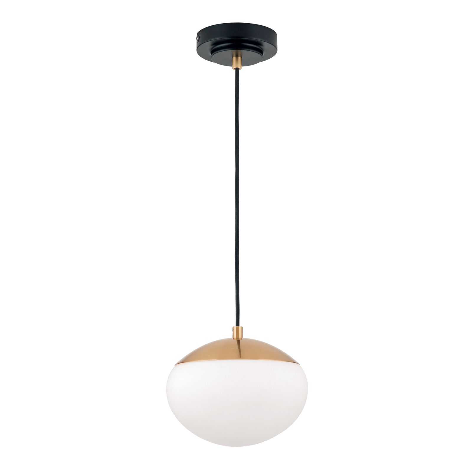 The pendant lamp from the JOSEPHINE series gives your room a timeless elegance. The opal white glass lampshade, combined with a golden matt cap, provides a soft and pleasant light. The black suspension gives the light a modern touch.