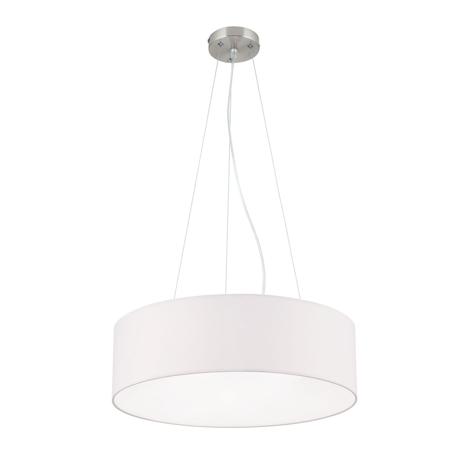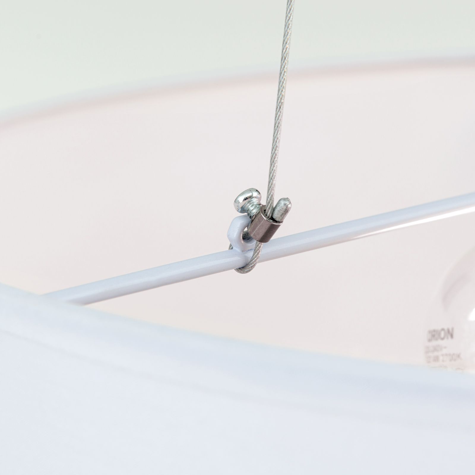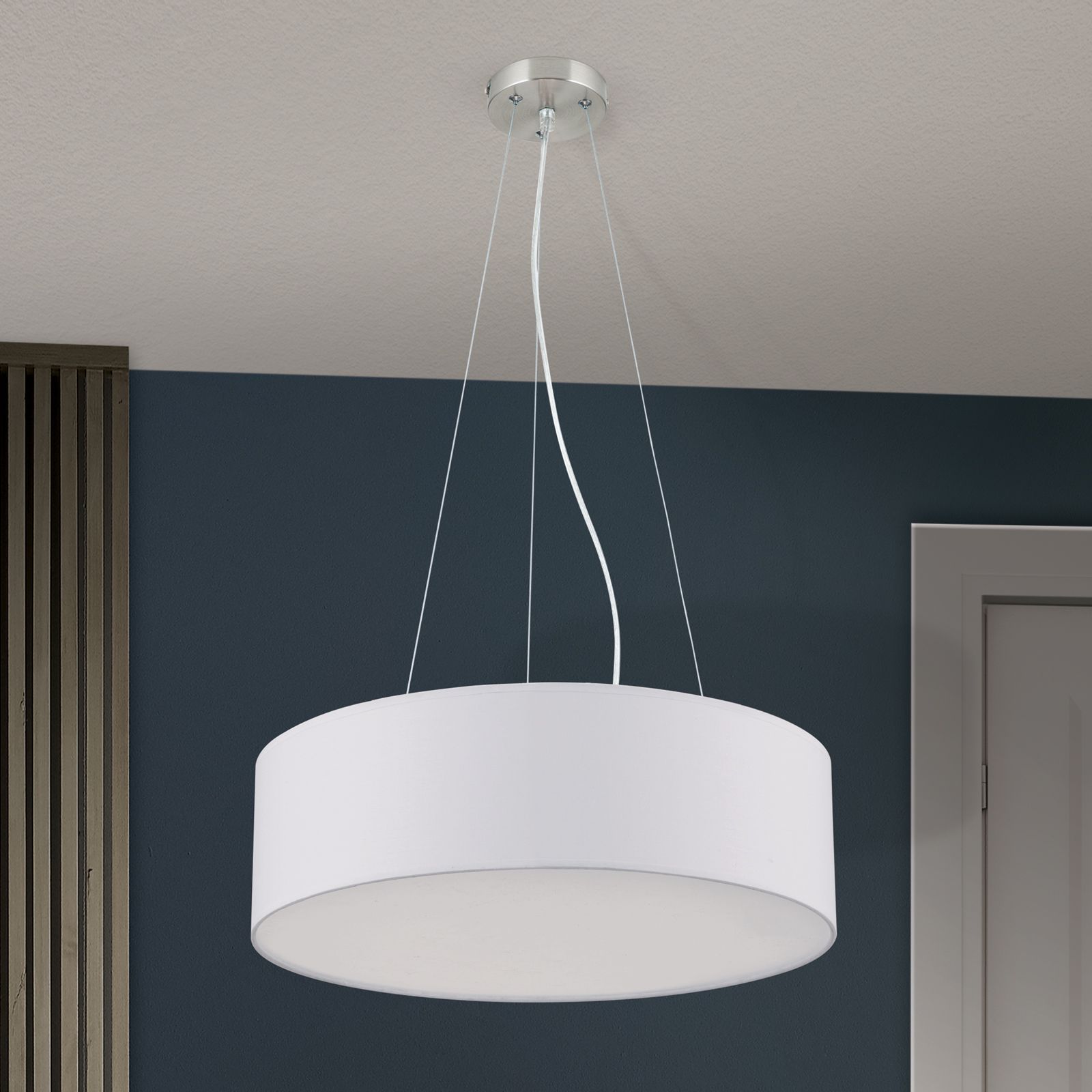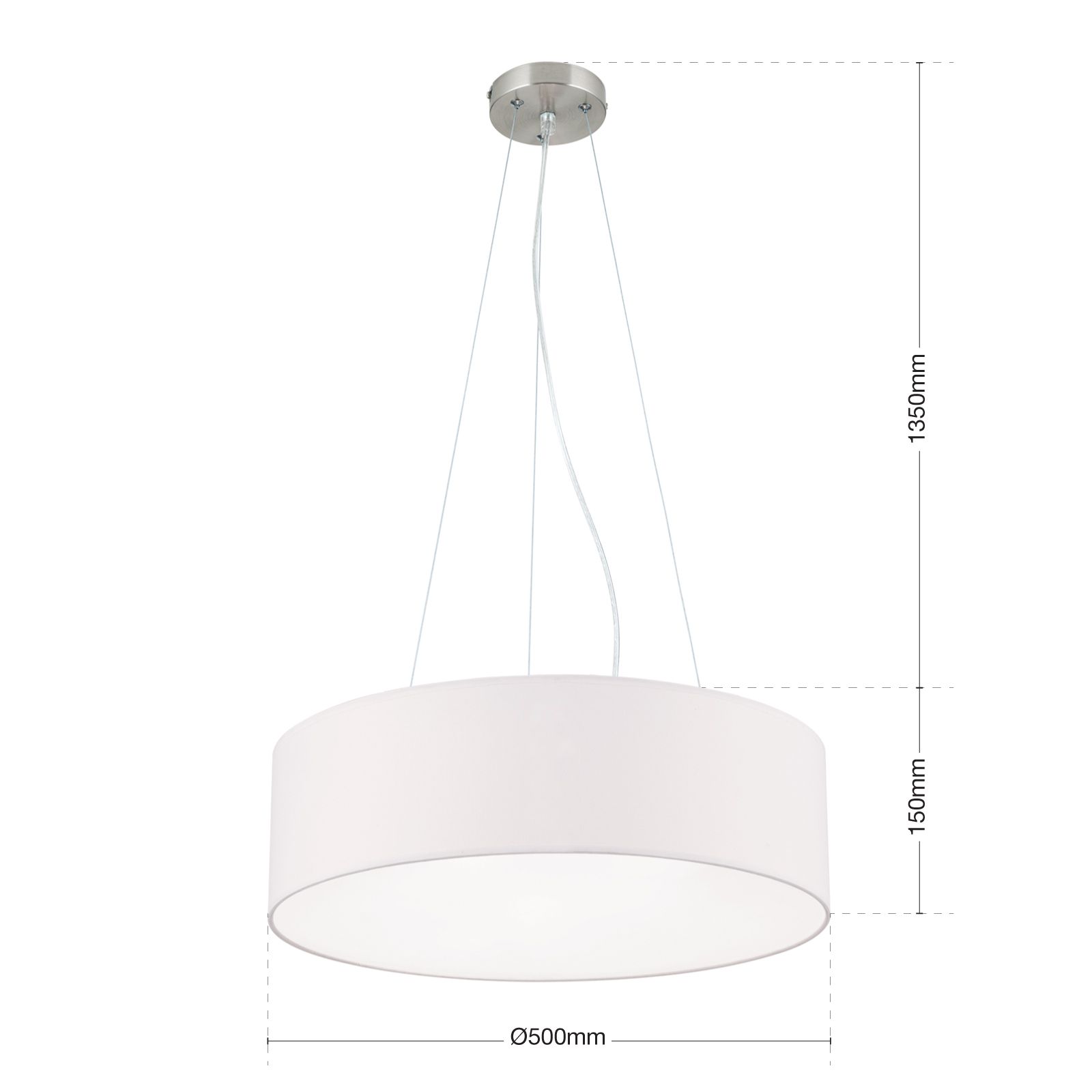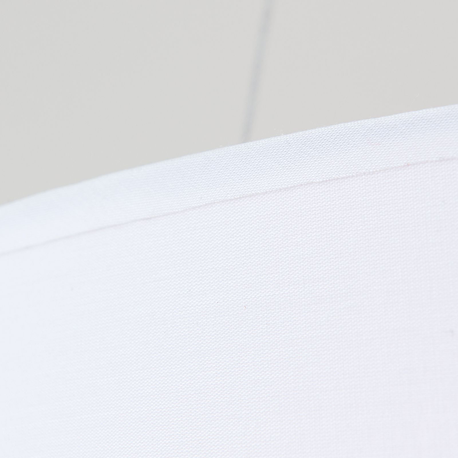 The pendant lamp from the UFO series captivates with its lightness. Its linen shade made of linen, chrome look, the masterly minimum of three fine metal threads as light body suspension turn the lamp into a discreet all-rounder that could float "UFO-like" through any interior. Three E27 sockets, each for 60 watts maximum output, provide good and evenly diffused lighting above dining tables or in workrooms. When fitted with economical LED lamps, service is also rendered to climate and environment.