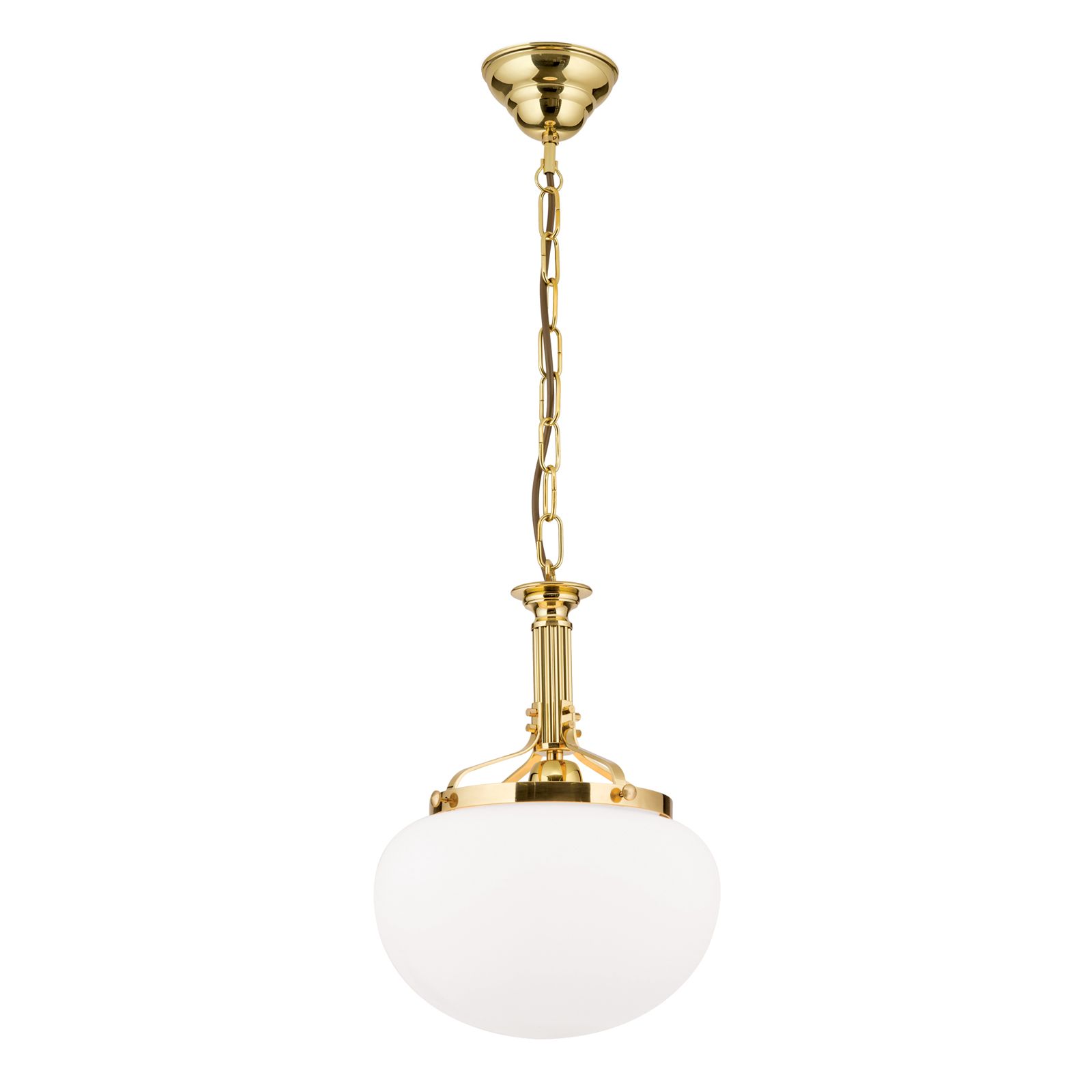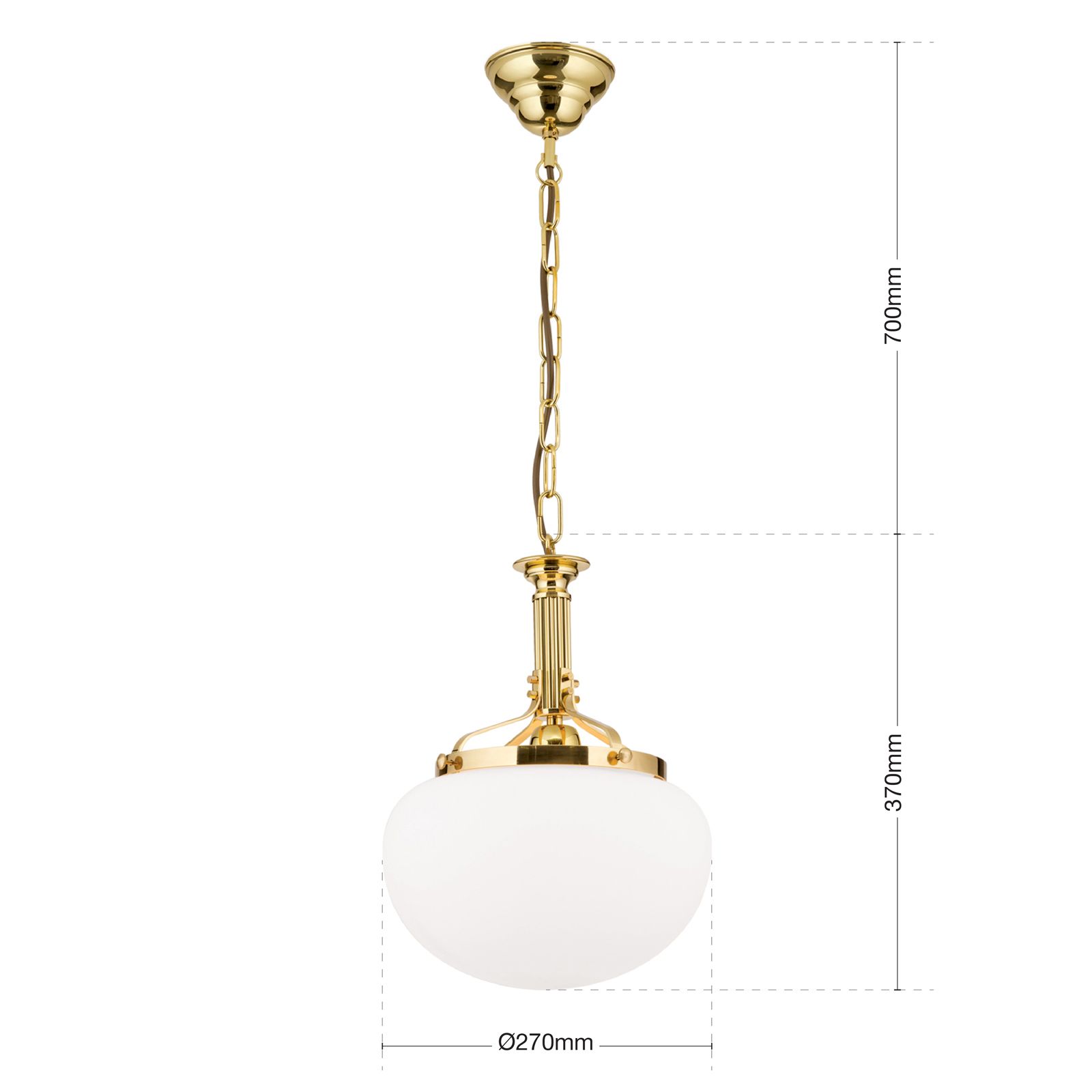 Pendant lamp WIENER NOSTALGIE, shiny brass, with opal matt glass, 27cm