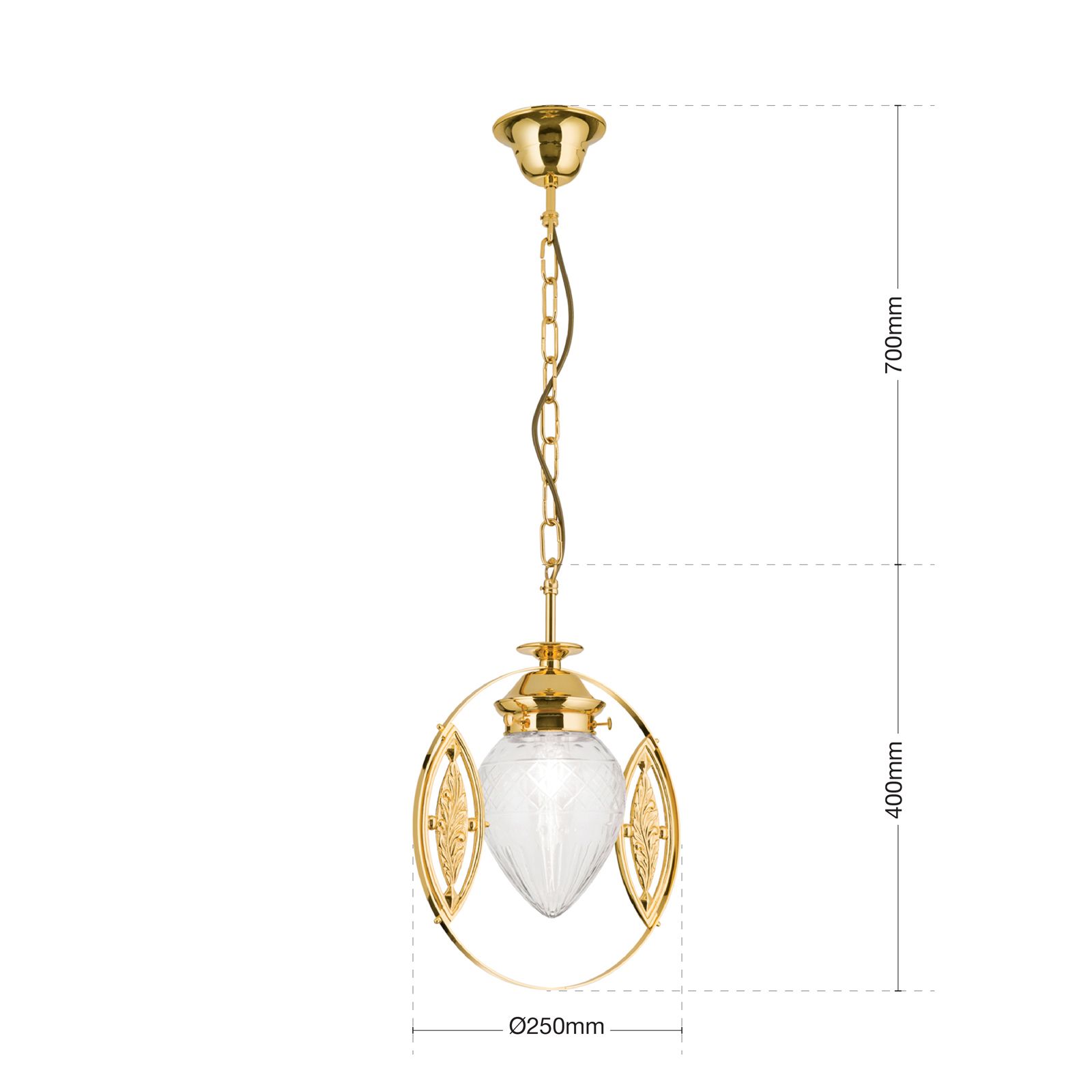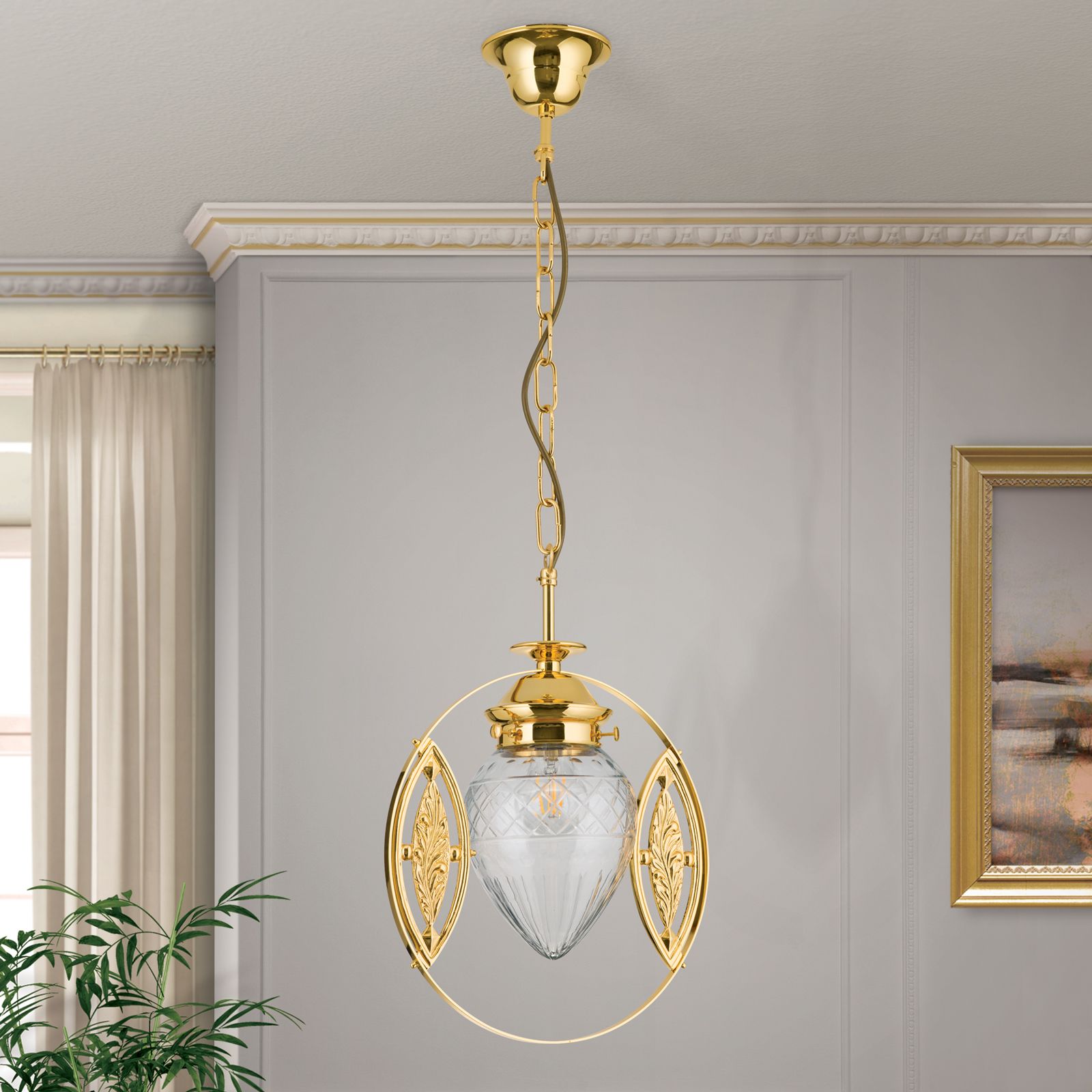 Pendant light BUDAPEST 24K gold plated finish with clear cut glasses