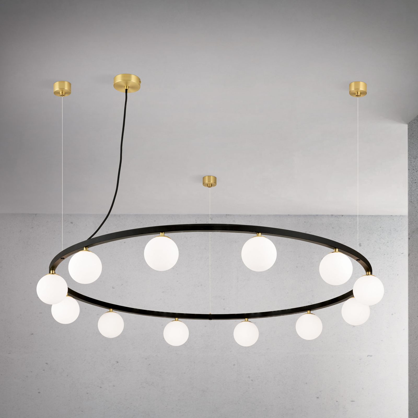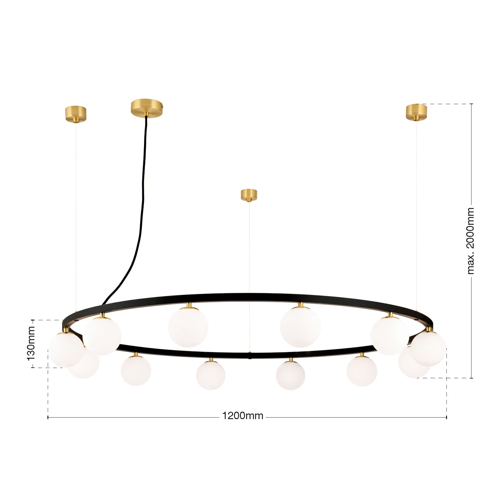Twelve downward-facing light bodies made of opal matt glass ensure even, glare-free light distribution. The frosted glass creates a soft, diffuse light pattern and creates a pleasant atmosphere - functional and cosy at the same time.