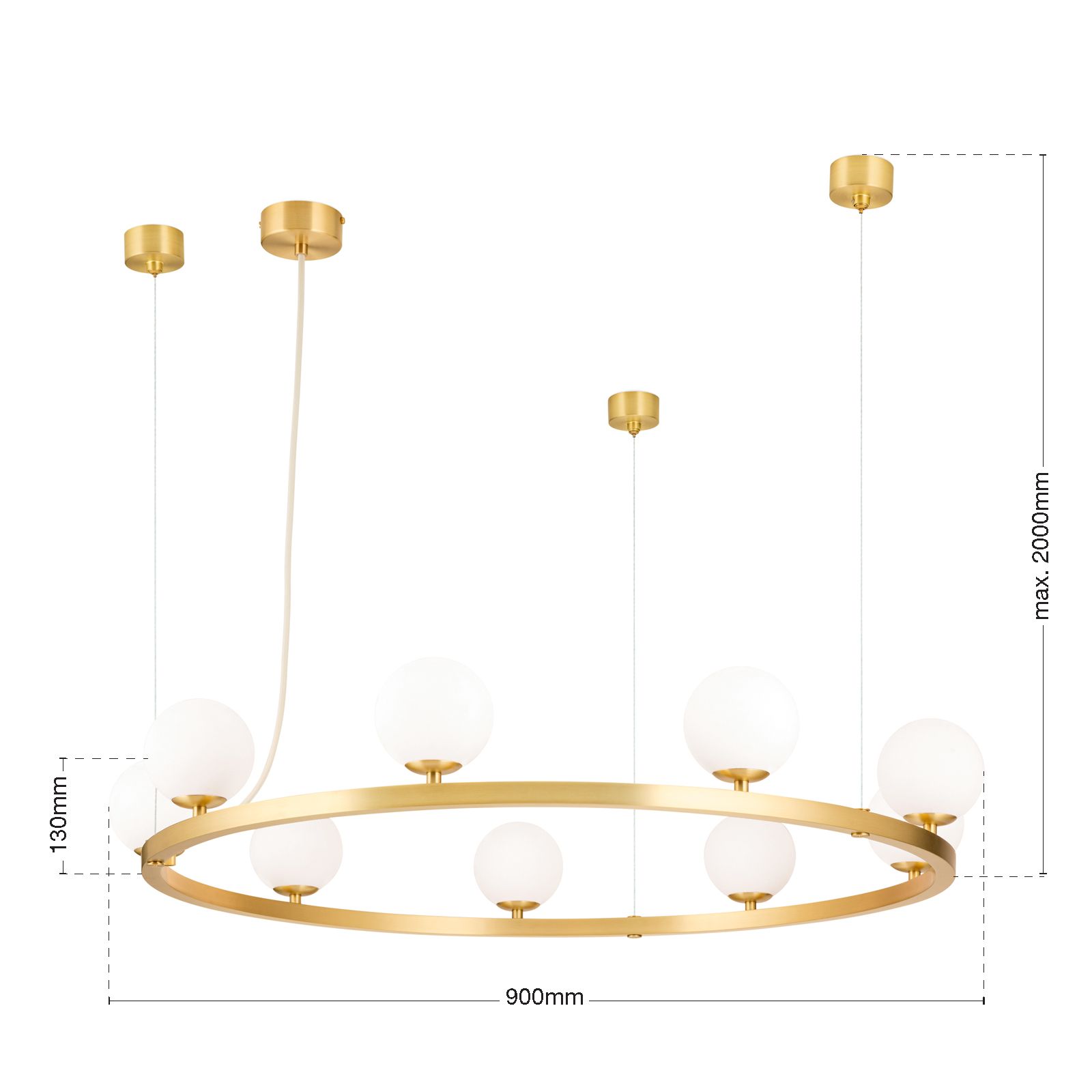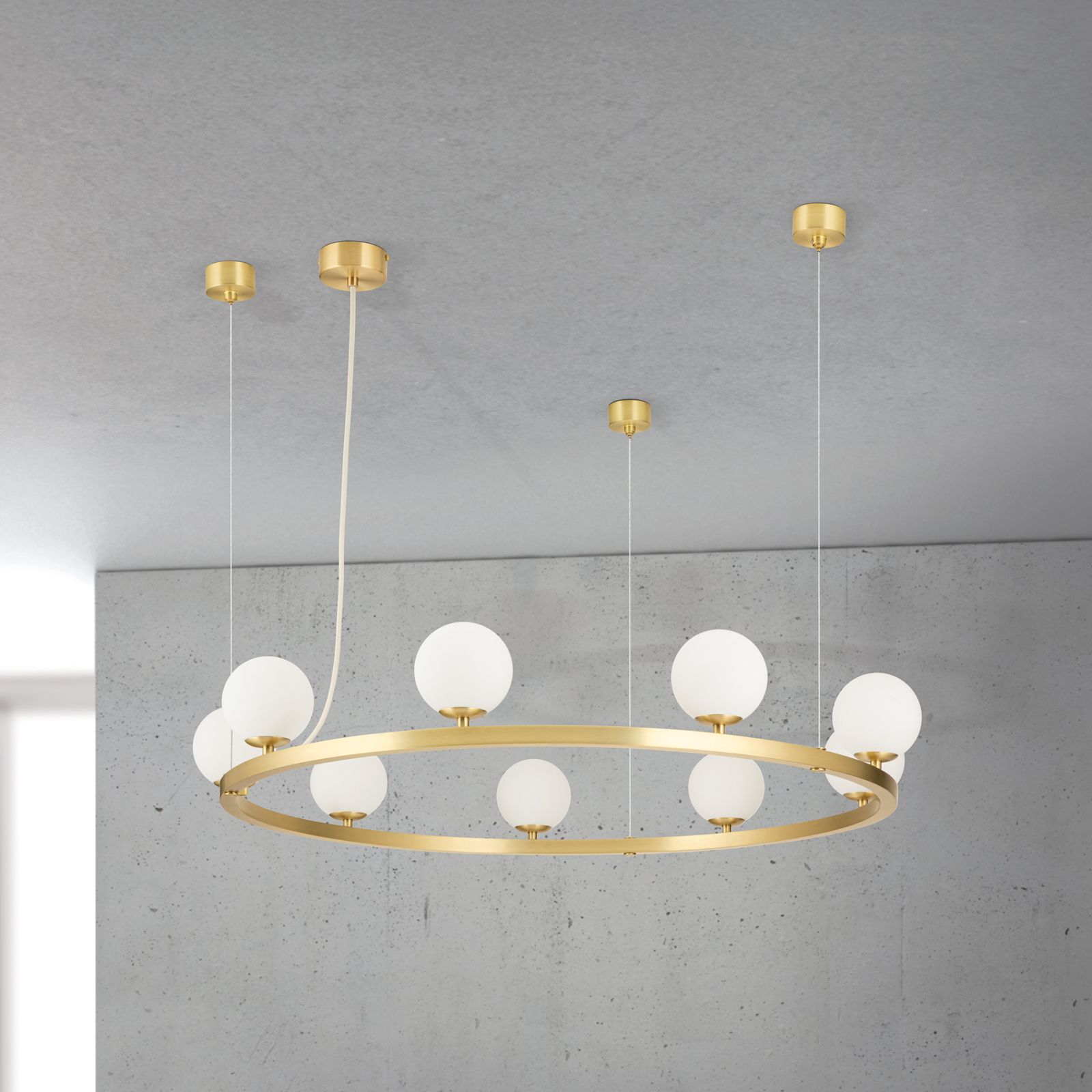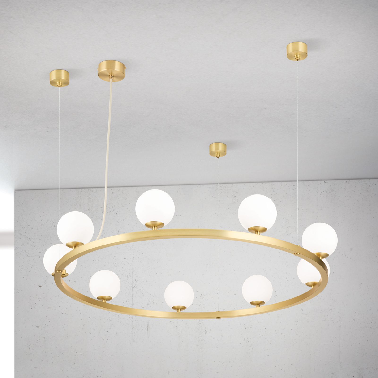 Pendant light TUMBLER, Ø 90cm, upwards-facing opal matt glass, brass matt