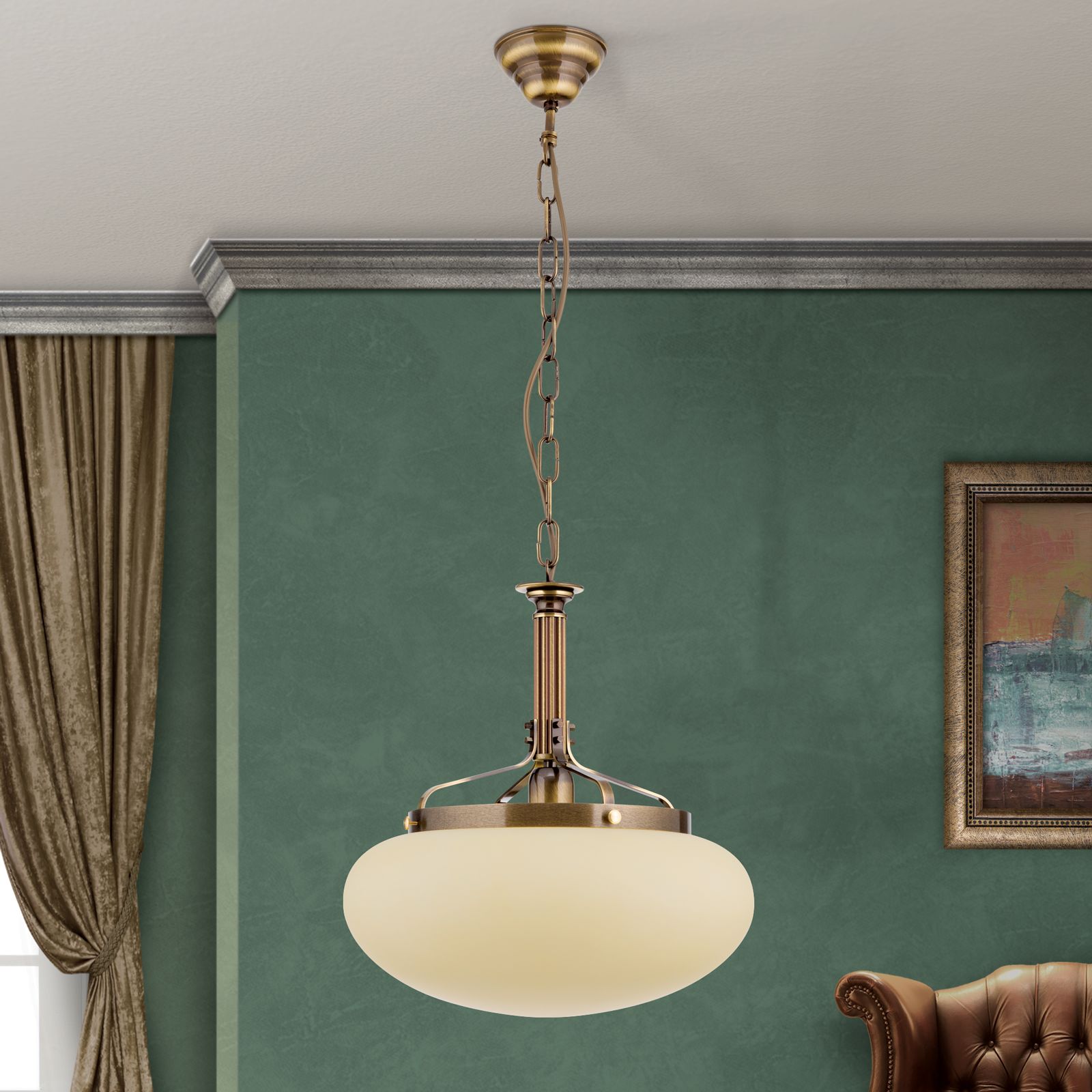 Pendant light WIENER NOSTALGIE, 40cm, antique brass finish, champagne coloured glass