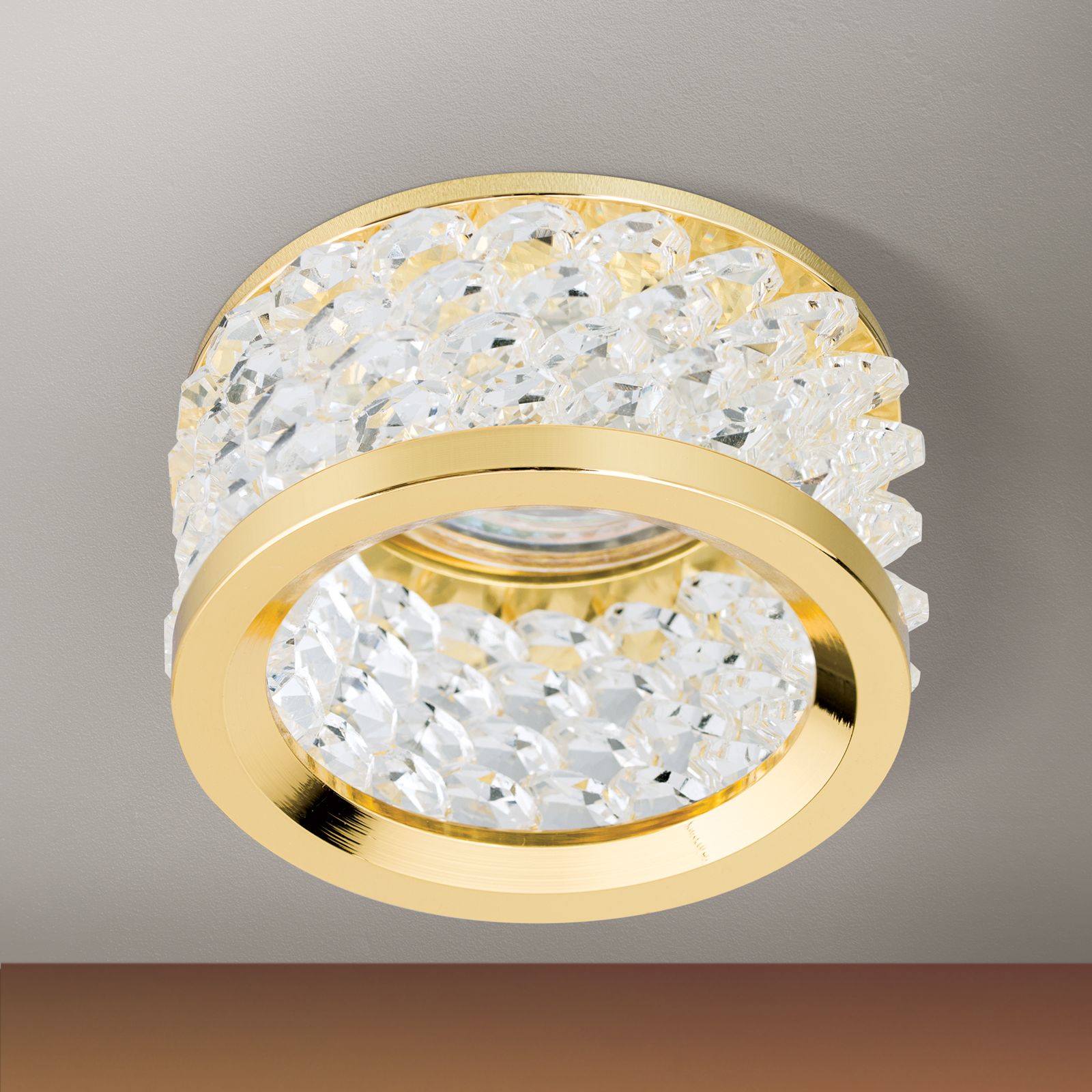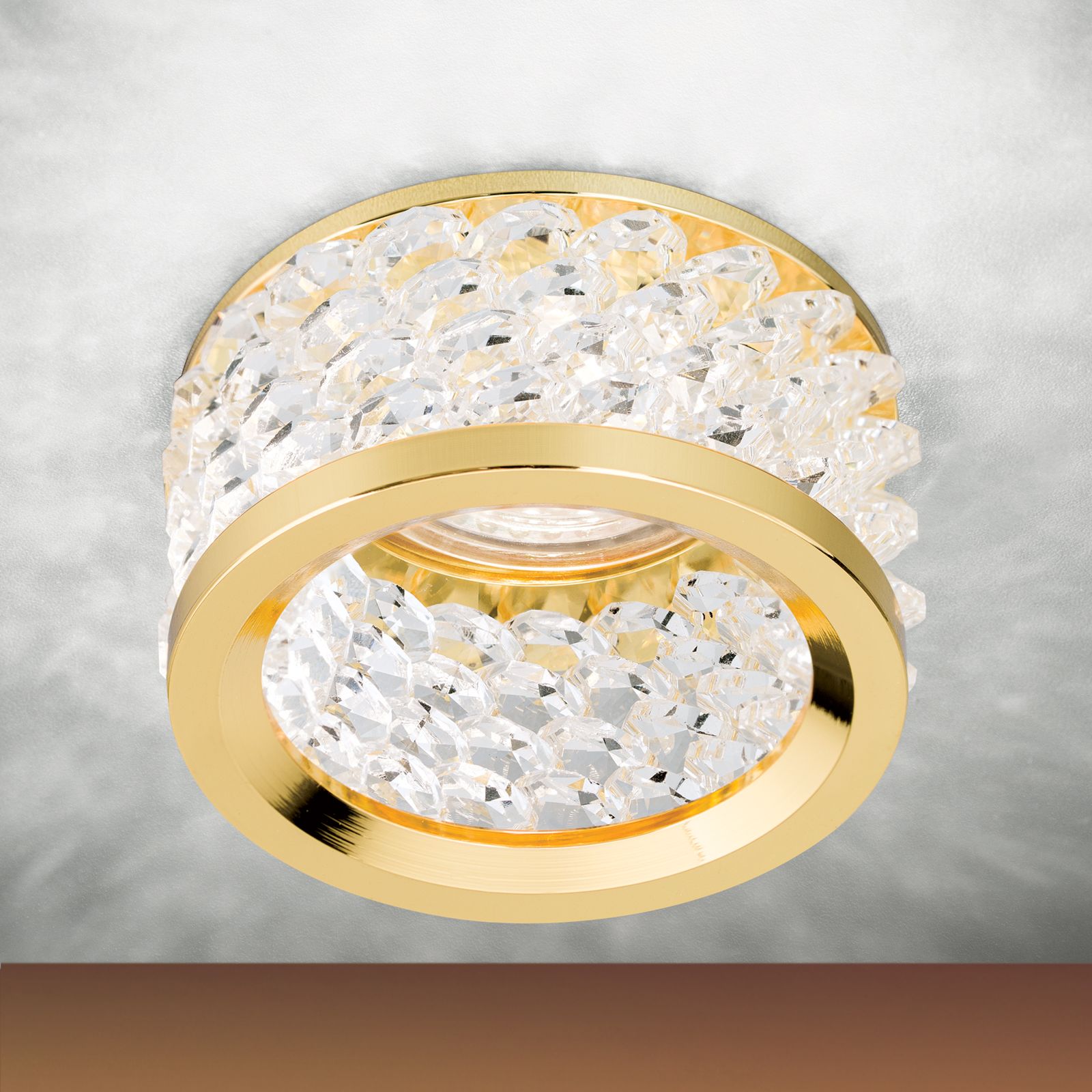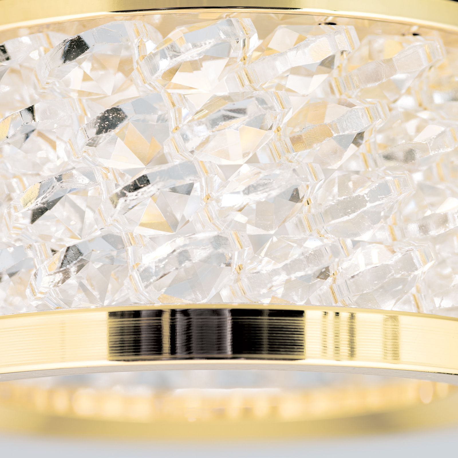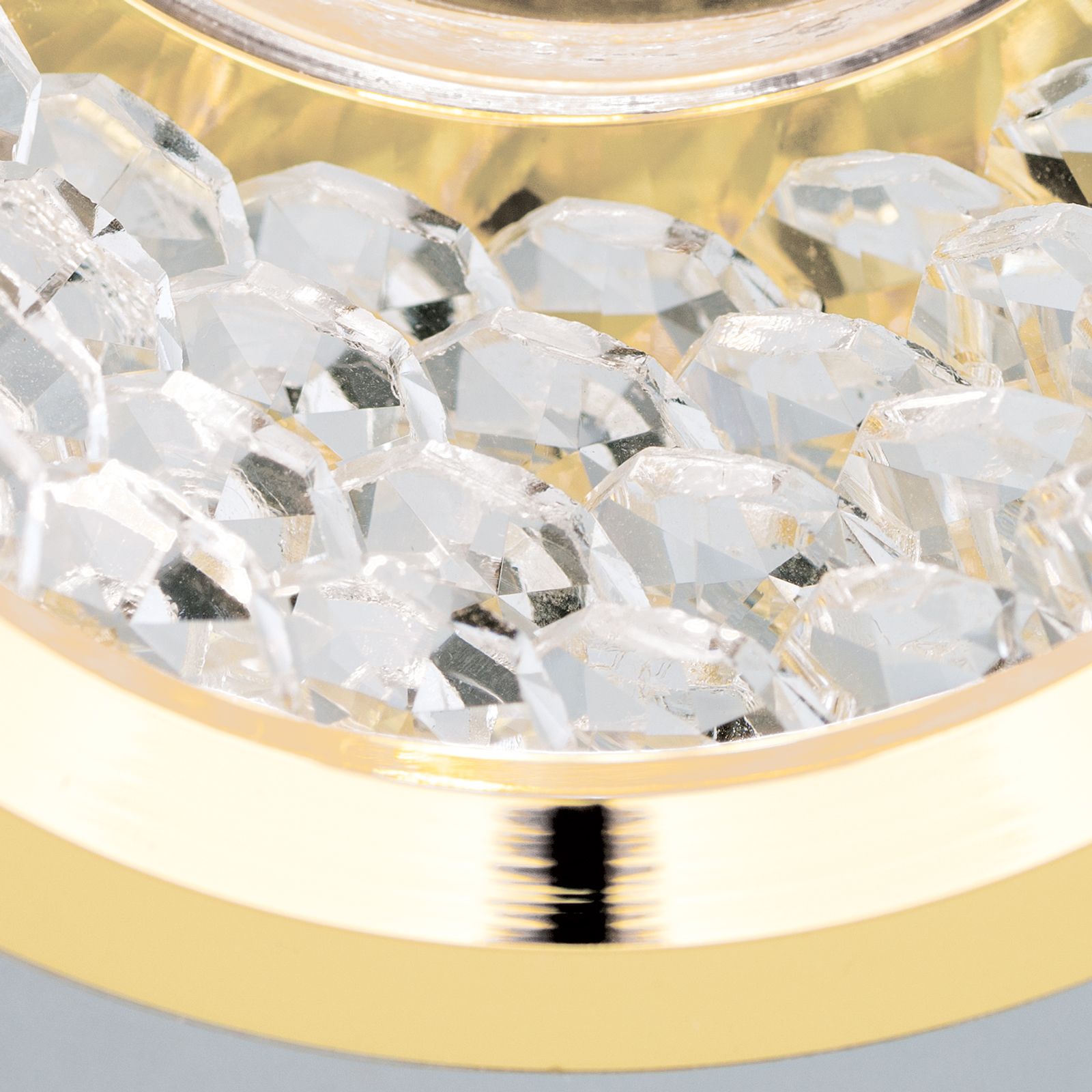 A sparkling cylinder of crystals and shiny rings characterises small spotlight KORB's design letting it blend harmoniously into classic-style interiors. The light's mount is optionally available with chrome or gold finish, the high-quality crystals providing attractive light plays on the ceiling.