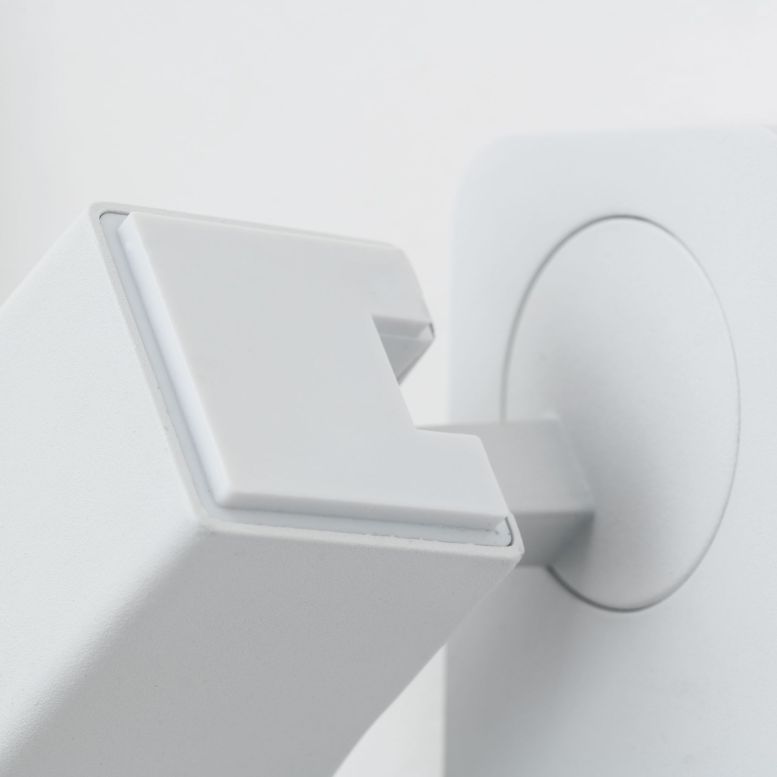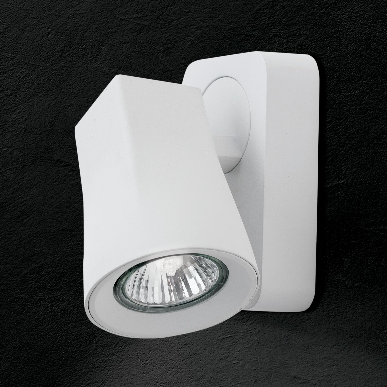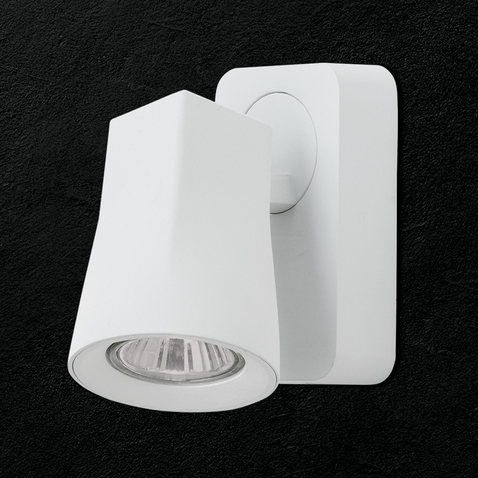 The modern white spotlight SINEO can be wall or ceiling mounted. Set on a rectangular base with rounded corners, the swivelling spotlight is turntable mounted for additional direction options of the light beam. The light source's housing is enclosed by a ring-shaped cover.