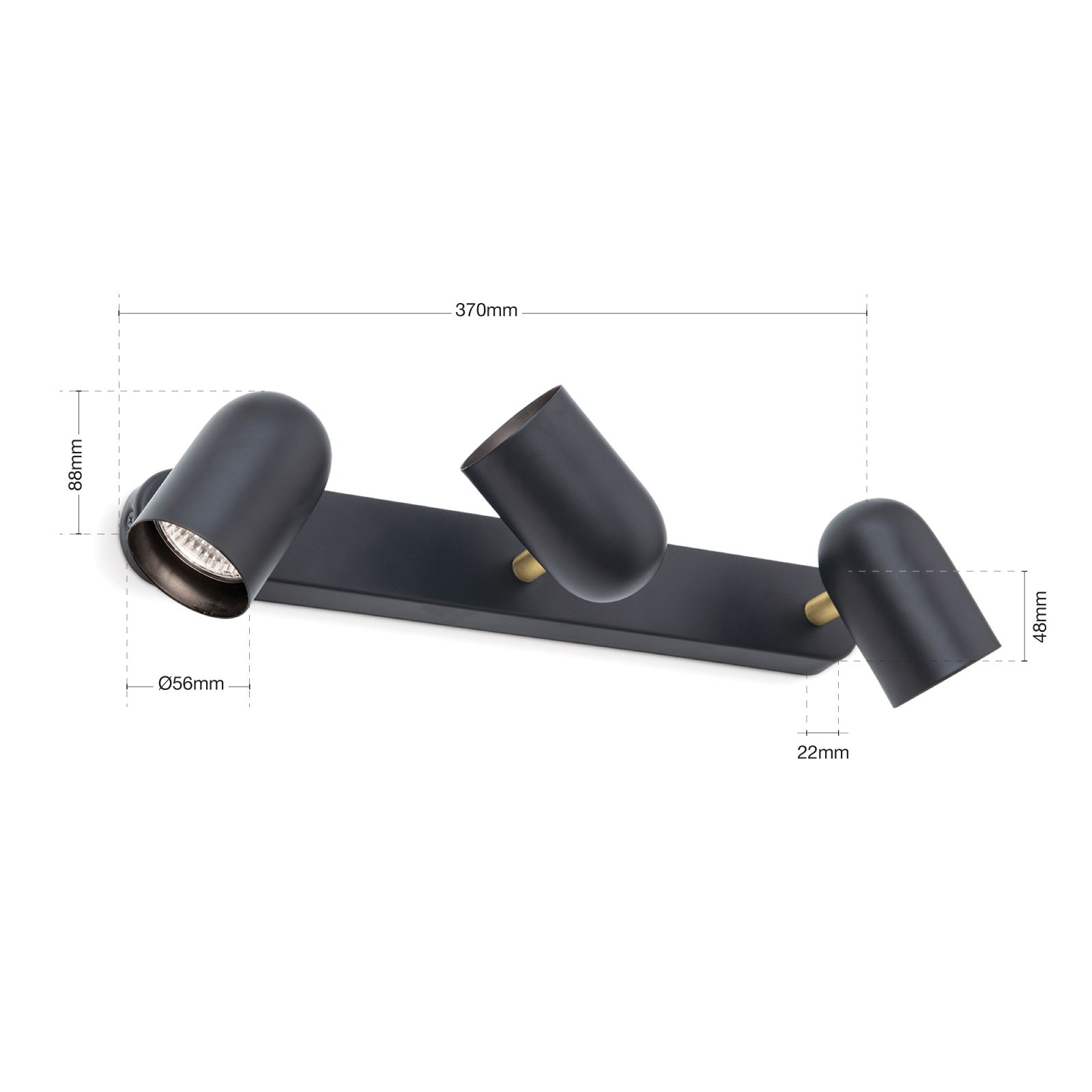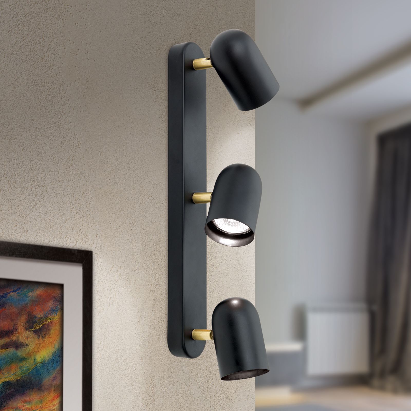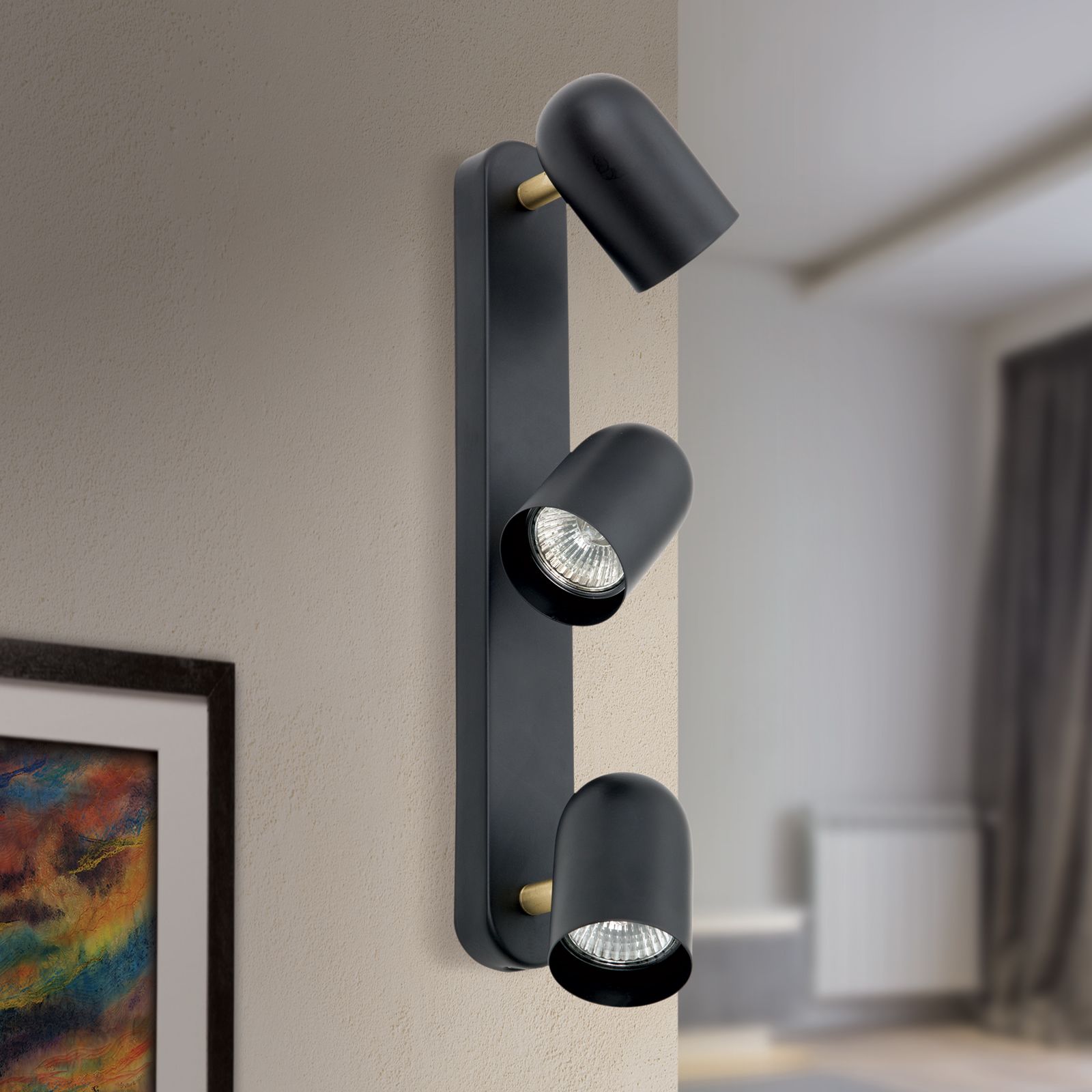 Black-matt and shiny gold - this trendy colour combination is BRADLEY three-flame spotlight's hallmark and gives it its elegant appearance.