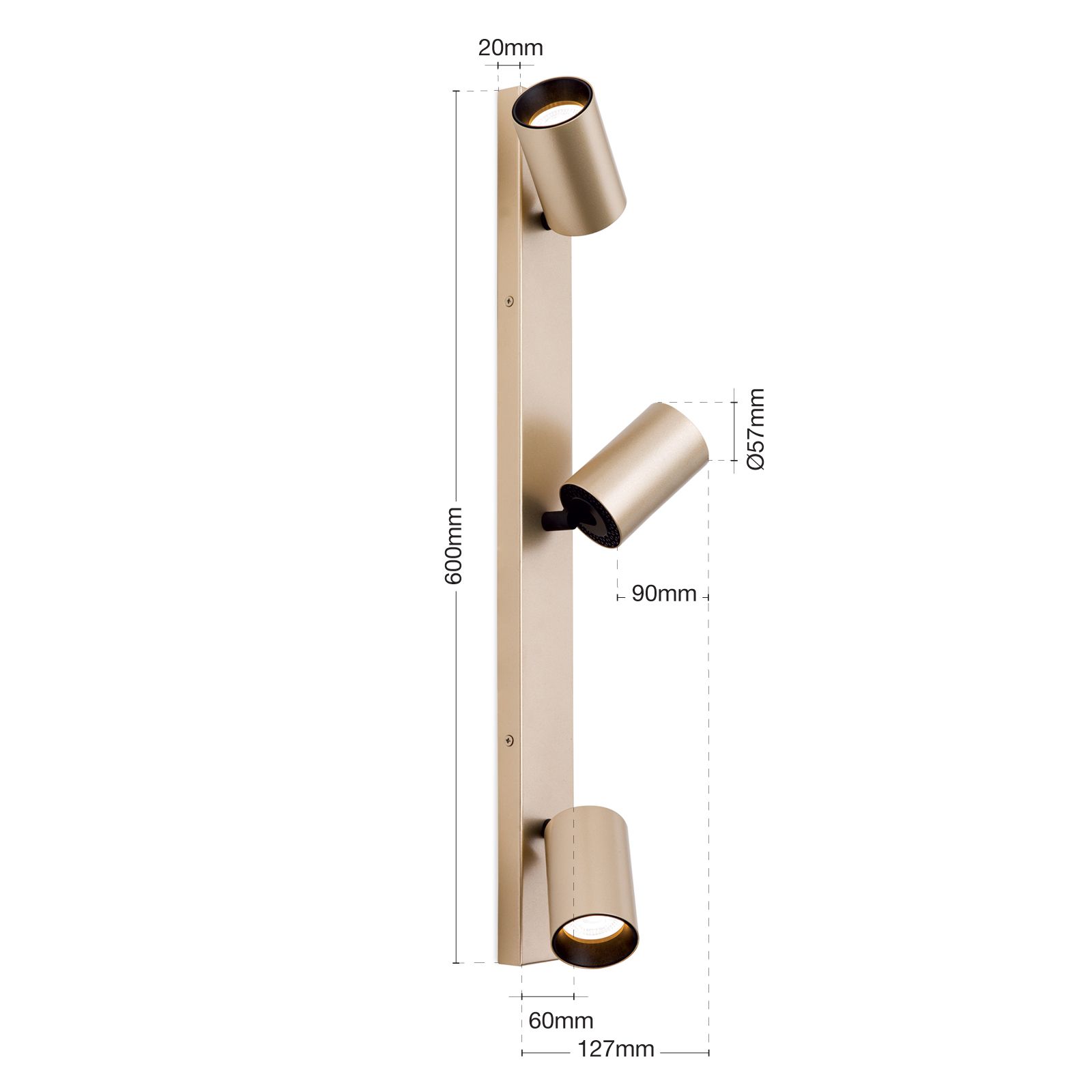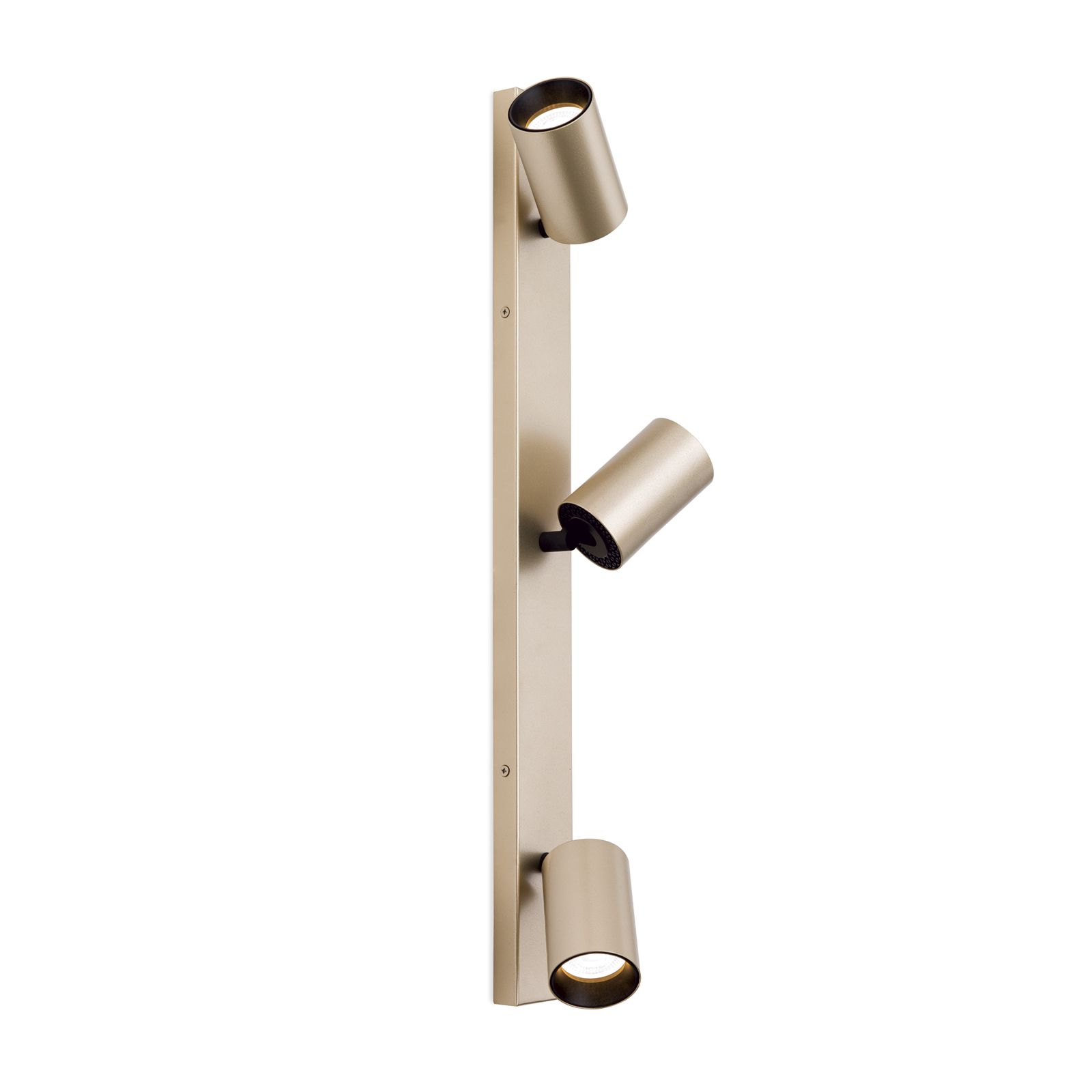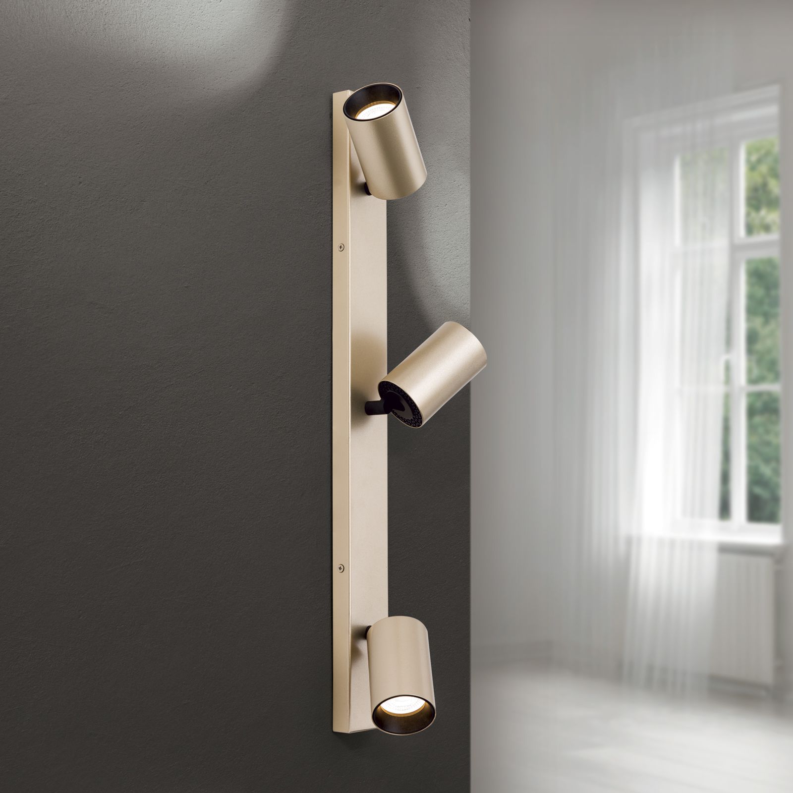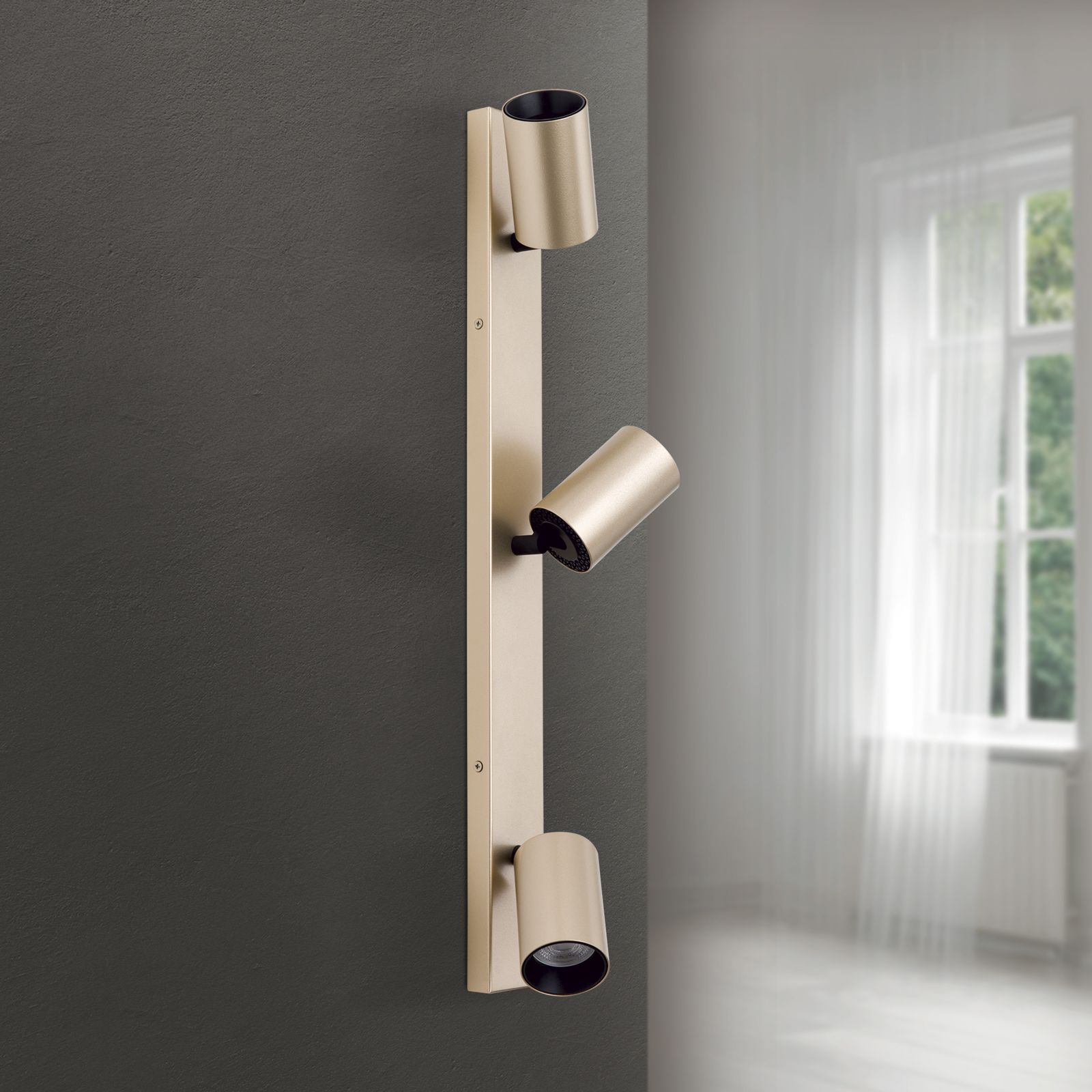SEAN series' "matter-of-fact style" finds its models in Danish design classics from the 1970s. The revolutionary reduction to basic geometric shapes enabled a completely new view of rooms: the room was no longer just a vessel for furnishings, but a place that itself could be staged. The walls' straight lines correspond to the simple shapes of spotlight SEAN. These, in turn, illuminate the scene for furnishing elements - be it furniture, pictures, decoration. All three spotlights can be swivelled for flexible lighting accents. The spotlight is equipped with three GU10 sockets for up to 13 watts each.