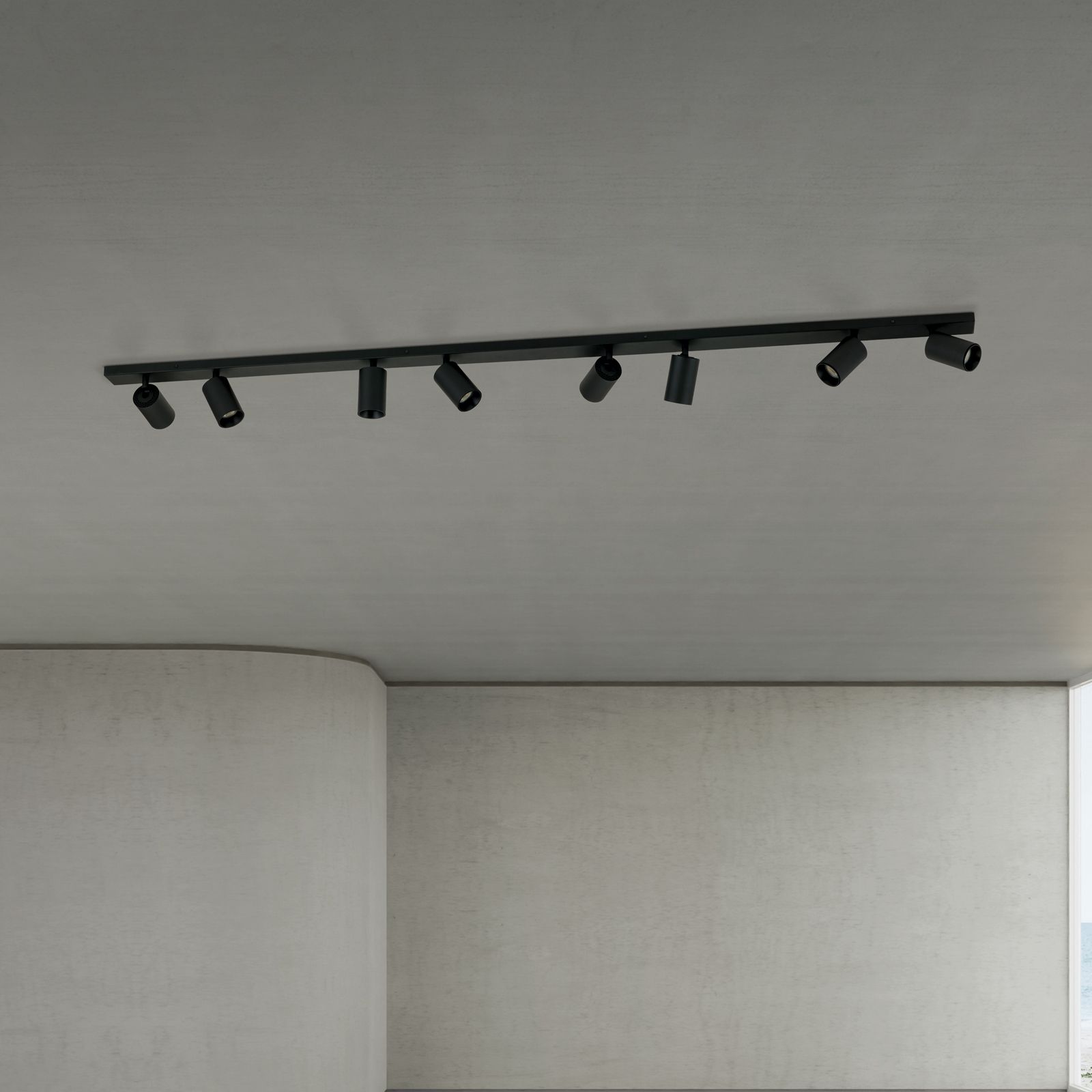With a length of 175 cm, SEAN is ideal for larger rooms and ensures even, flexible illumination - whether in the living or dining room, kitchen, bedroom, study/office or hallway. The eight GU10 sockets enable customised lighting design. Thanks to the swivelling spotlight heads, the light can be directed precisely - for perfect lighting conditions in any situation.