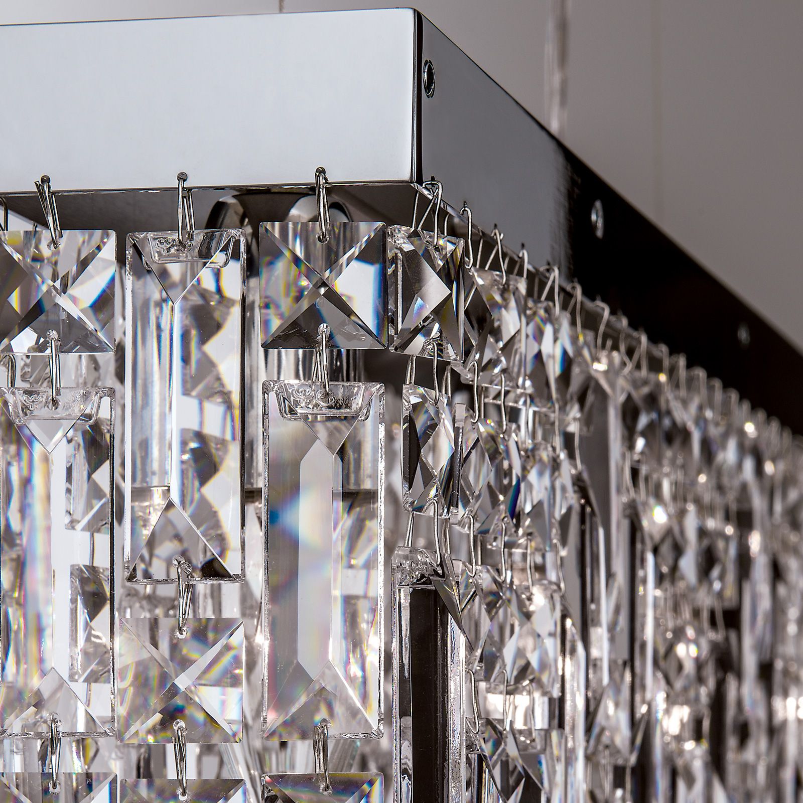Pendant lamp RING exudes pure elegance and exclusivity with its radiant appearance yet is versatile in installation due to its linear shape. It becomes a shining eye-catcher in every room fitting excellently into modern as well as classical living rooms. As single light or in combination with other lights from the series, it creates a luxurious ambience. Numerous Asfour crystals hang from a shiny brass frame wrapping around the lamp like a curtain. As soon as light penetrates the clear crystals, unique and impressive light reflections are created in the room. In addition, the pendant lamp is dimmable, so light brightness can be individually adjusted to circumstances. Three bulbs in E14 sockets can be fitted with 40 watts maximum.