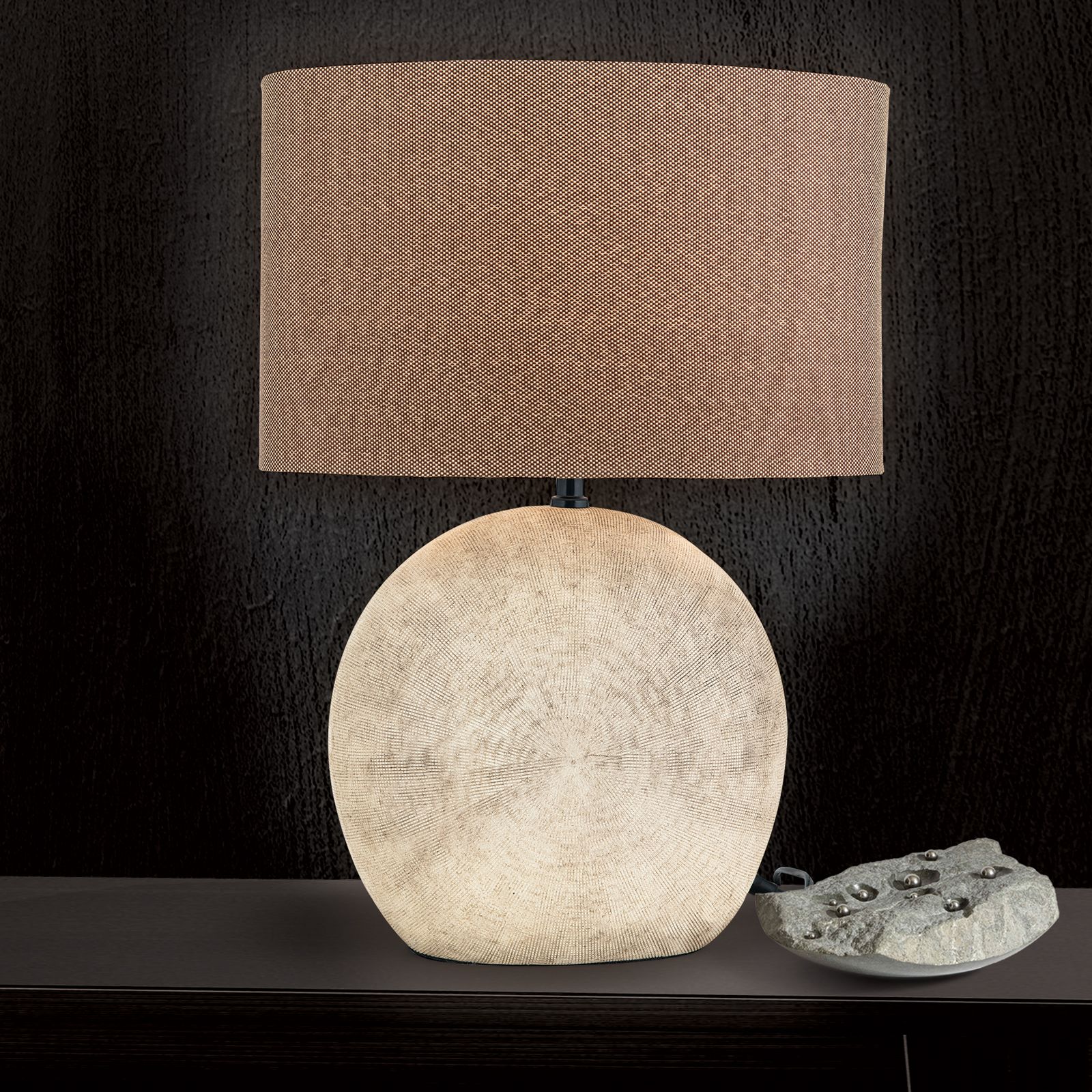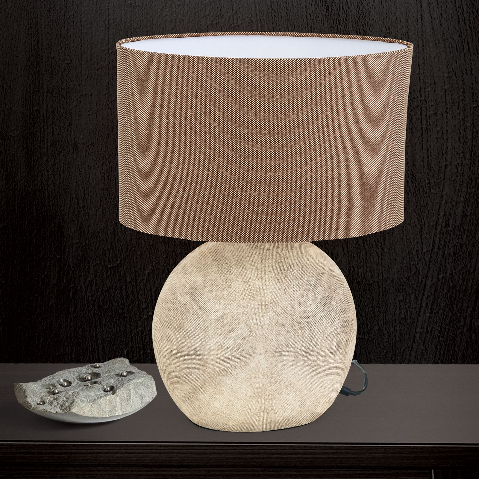 Modern table lamp ETHNO brings the beauty of faraway places into every home. Especially on bedside tables or side tables in living rooms, it convinces with natural tones and materials. The round body consists of a structured ceramic base in Cotto stone look crowned by an oval linen shade.