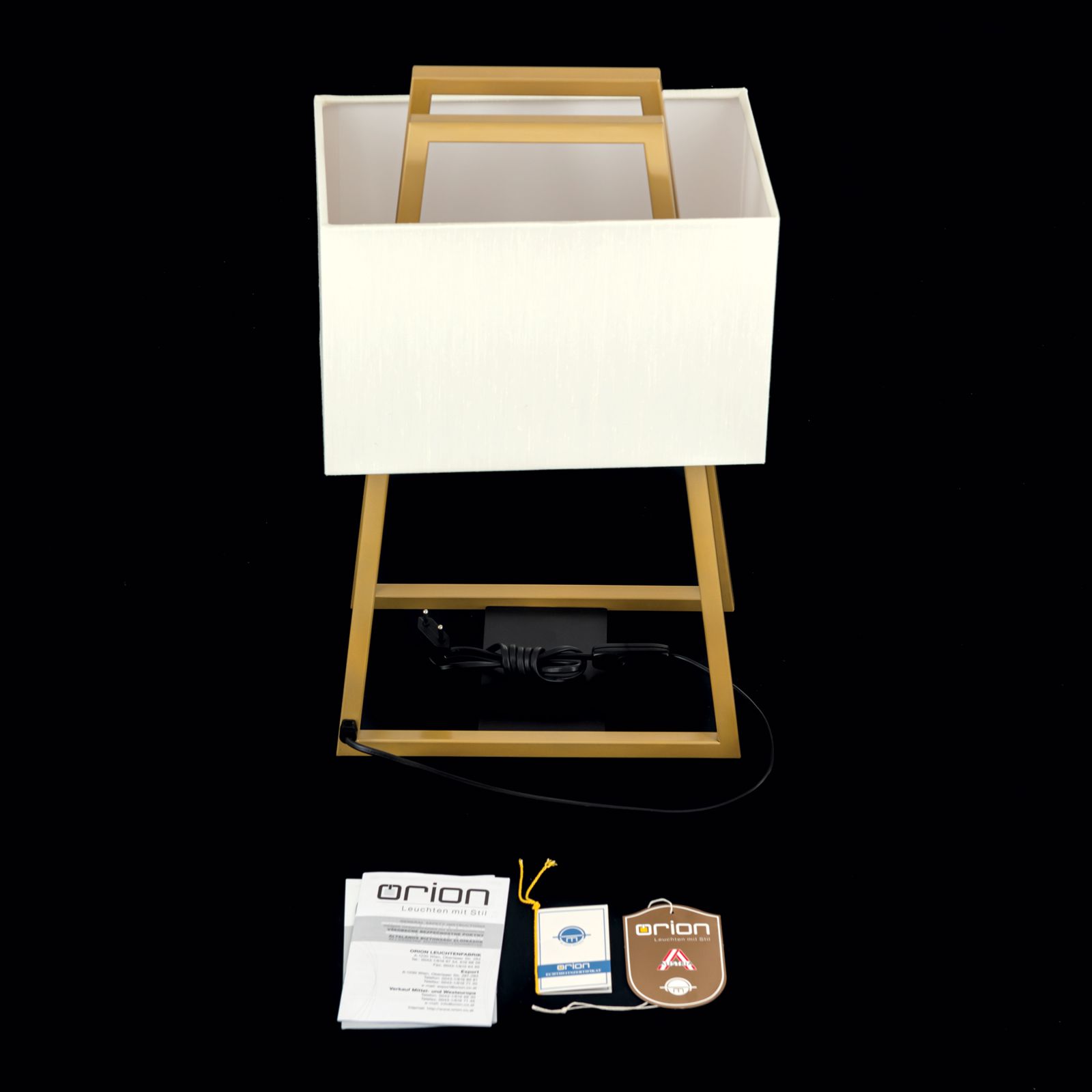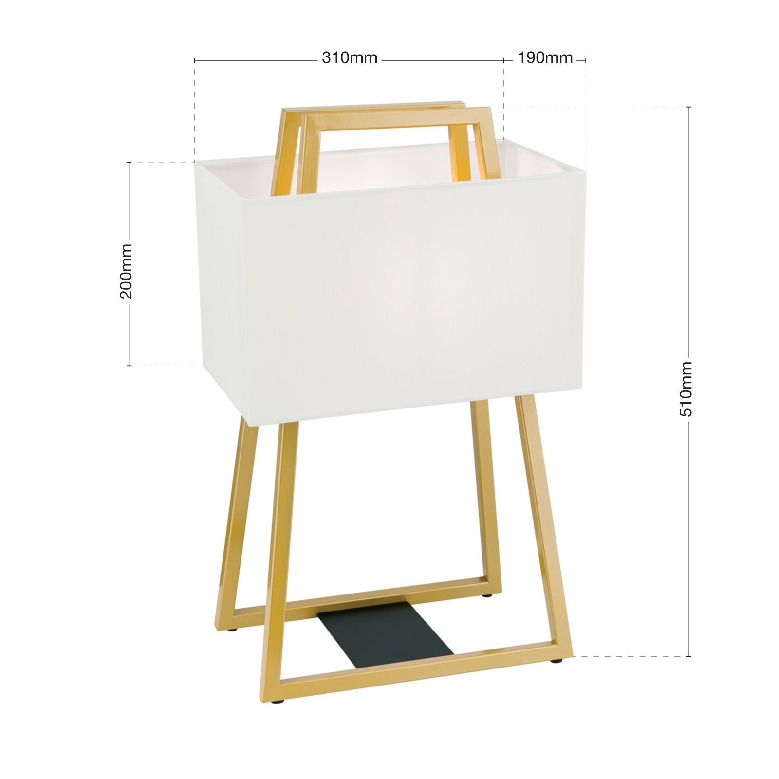 The rectangular fabric shade in radiant white is not only an eye-catcher, but also a perfect diffuser for the light. It provides a soft and even illumination of your room, without dazzling effects. The shade harmonises perfectly with the golden frame and gives the light a timeless charm.