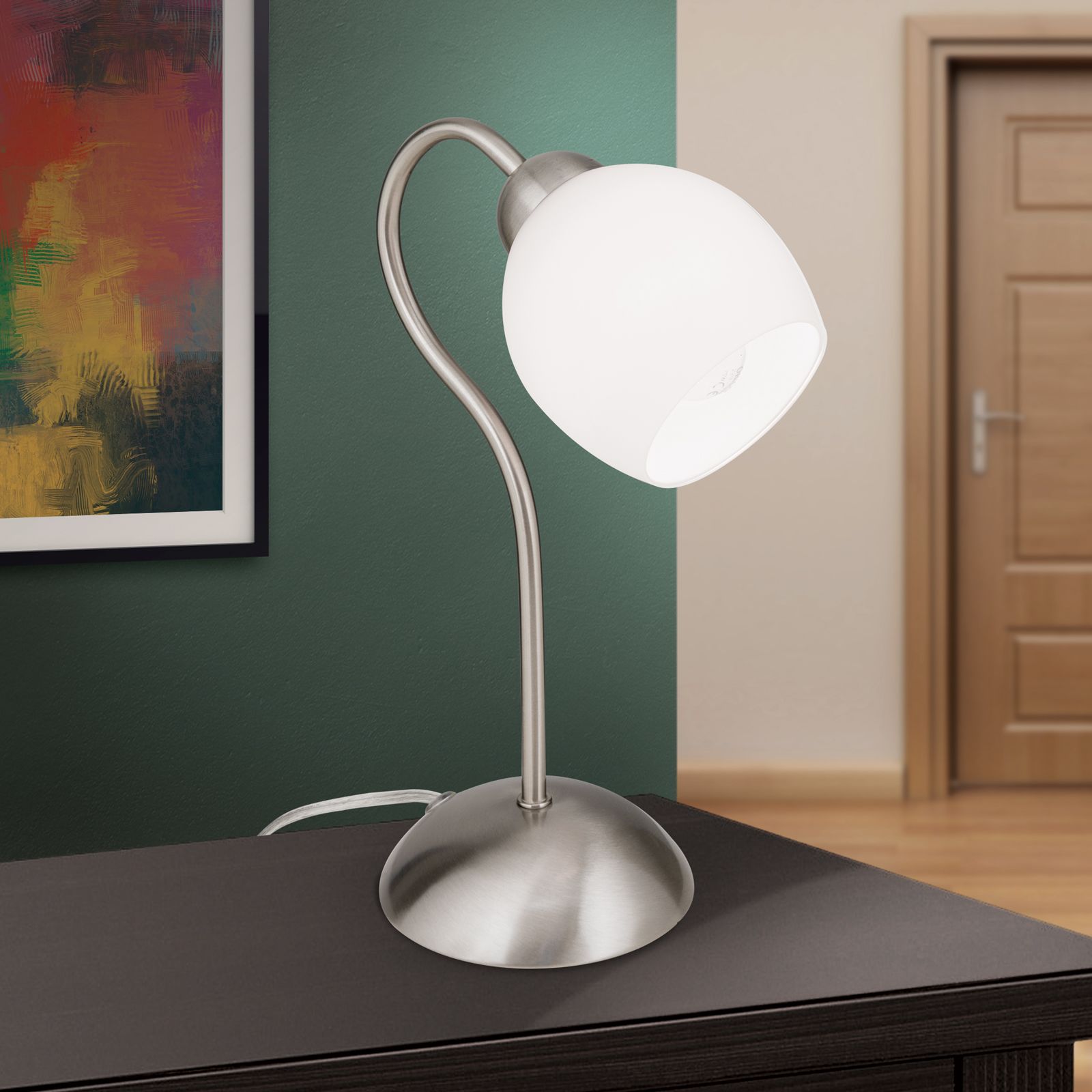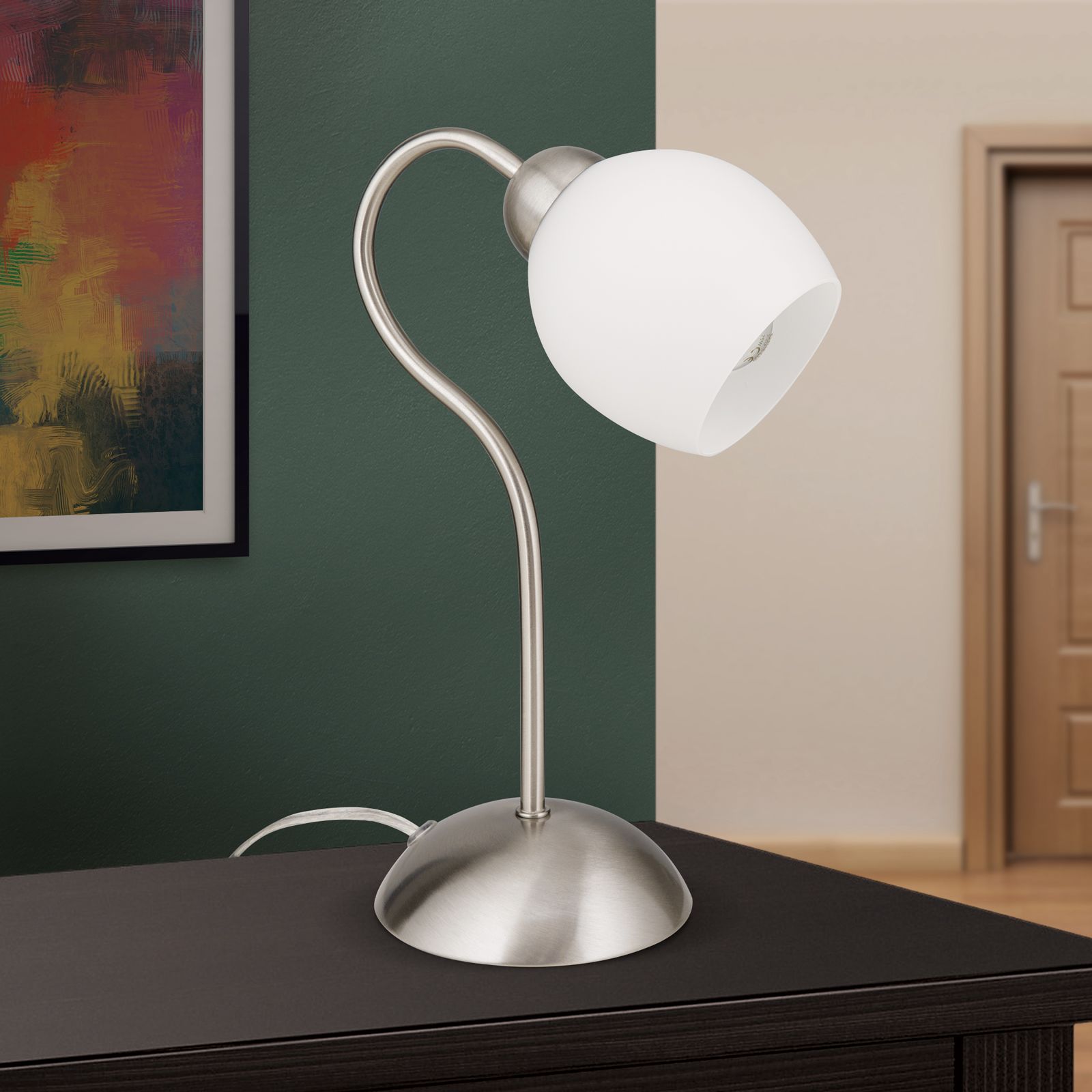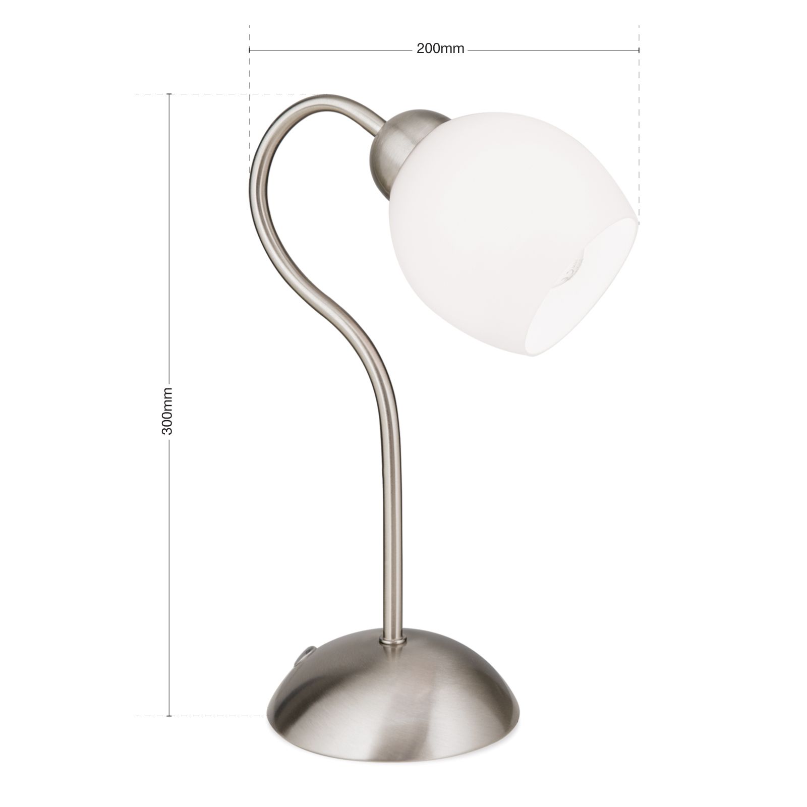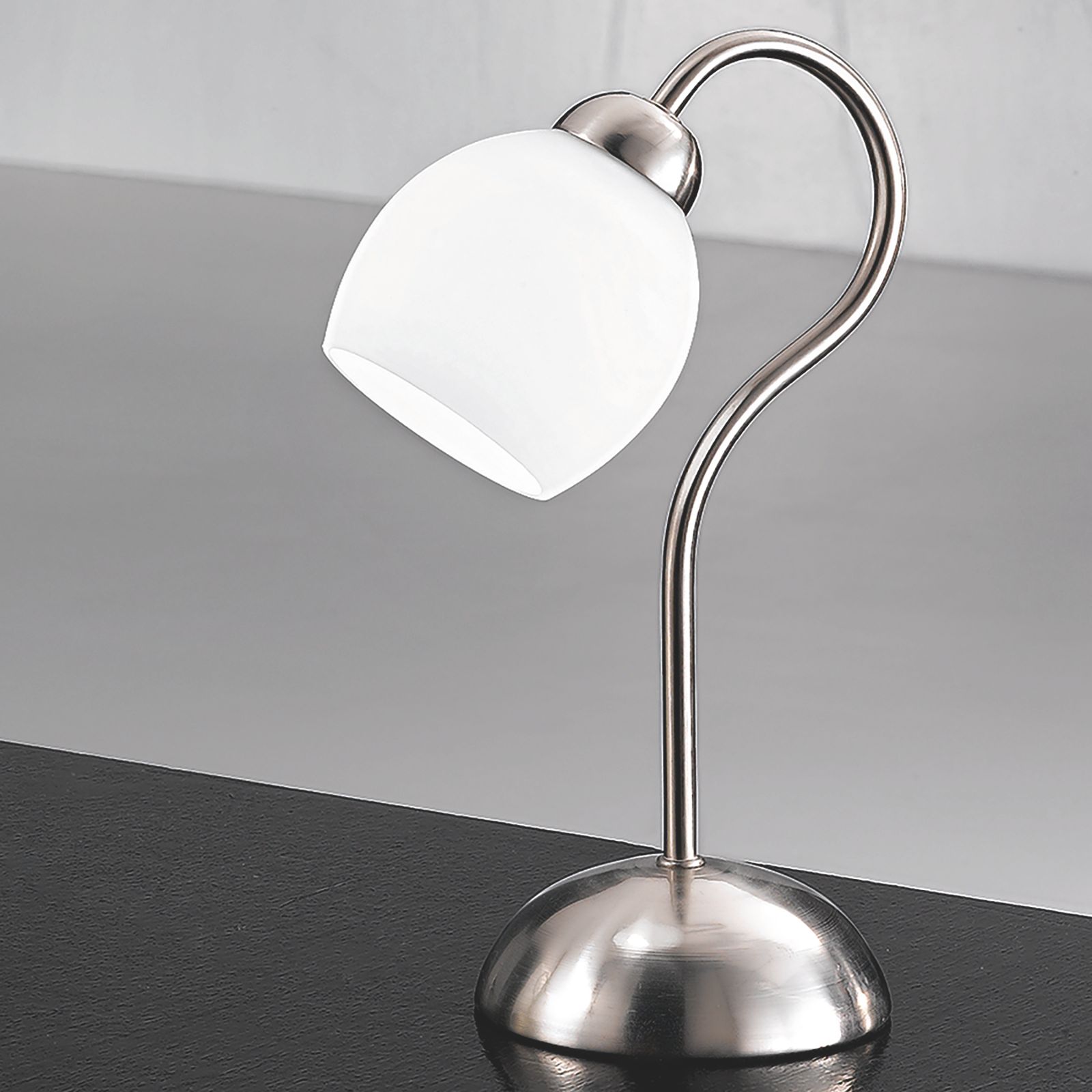 The name of table lamp TULPO already gives a hint: its designers have borrowed from nature and transferred the tulip's graceful curve into a lamp shade. The flower-shaped glass shade merges into an organically curved stem. This in turn leads to a heavy base guaranteeing great stability. An E14 socket allows for a 40 watts maximum. Drop-shaped, matt LED bulbs are best suited. The lamp cable is equipped with a rocker switch for easy operation.