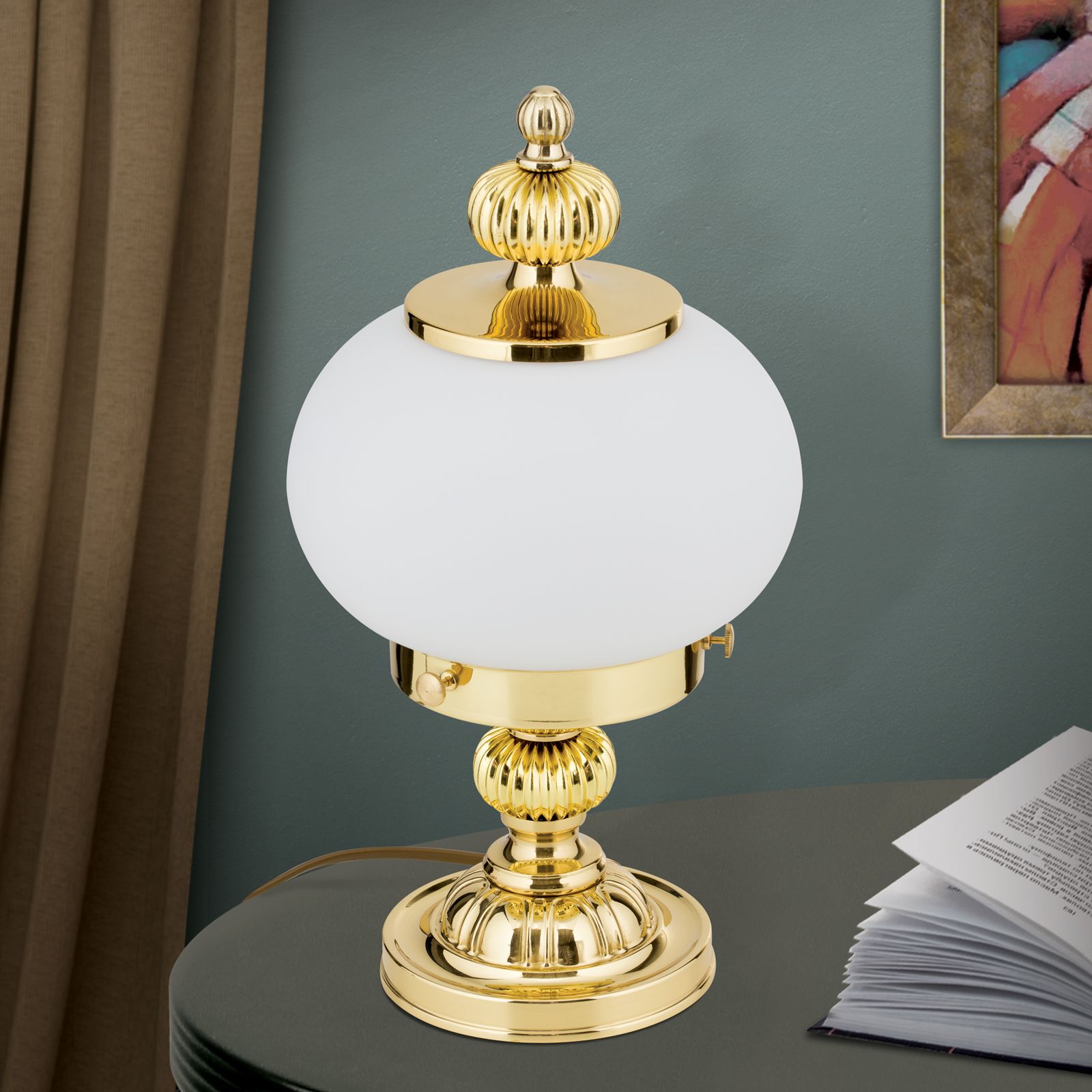 Table lamp WIENER NOSTALGIE, 1-lamp, shiny brass, with opal matt glass