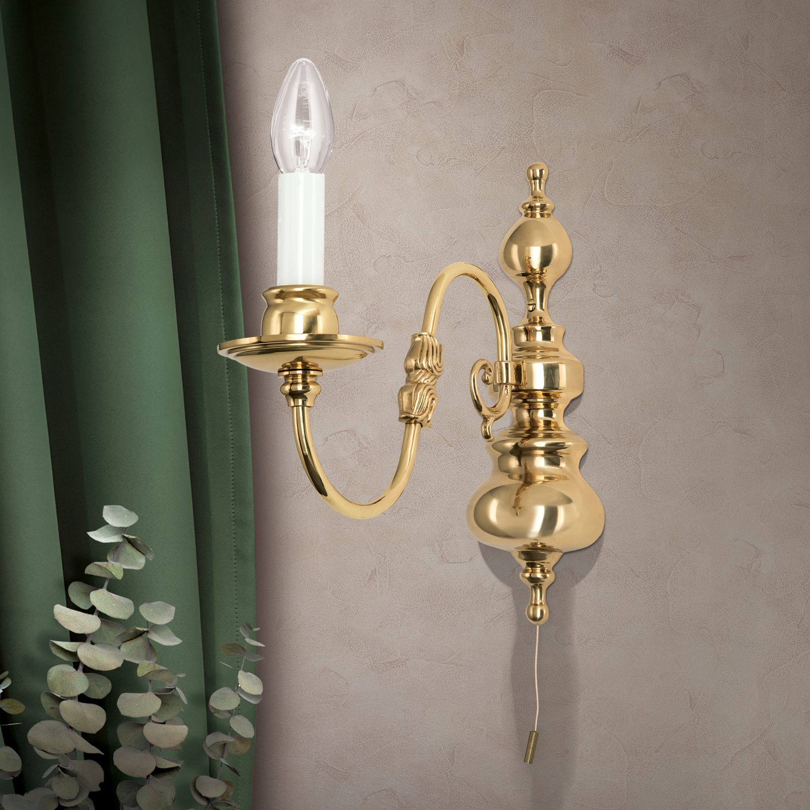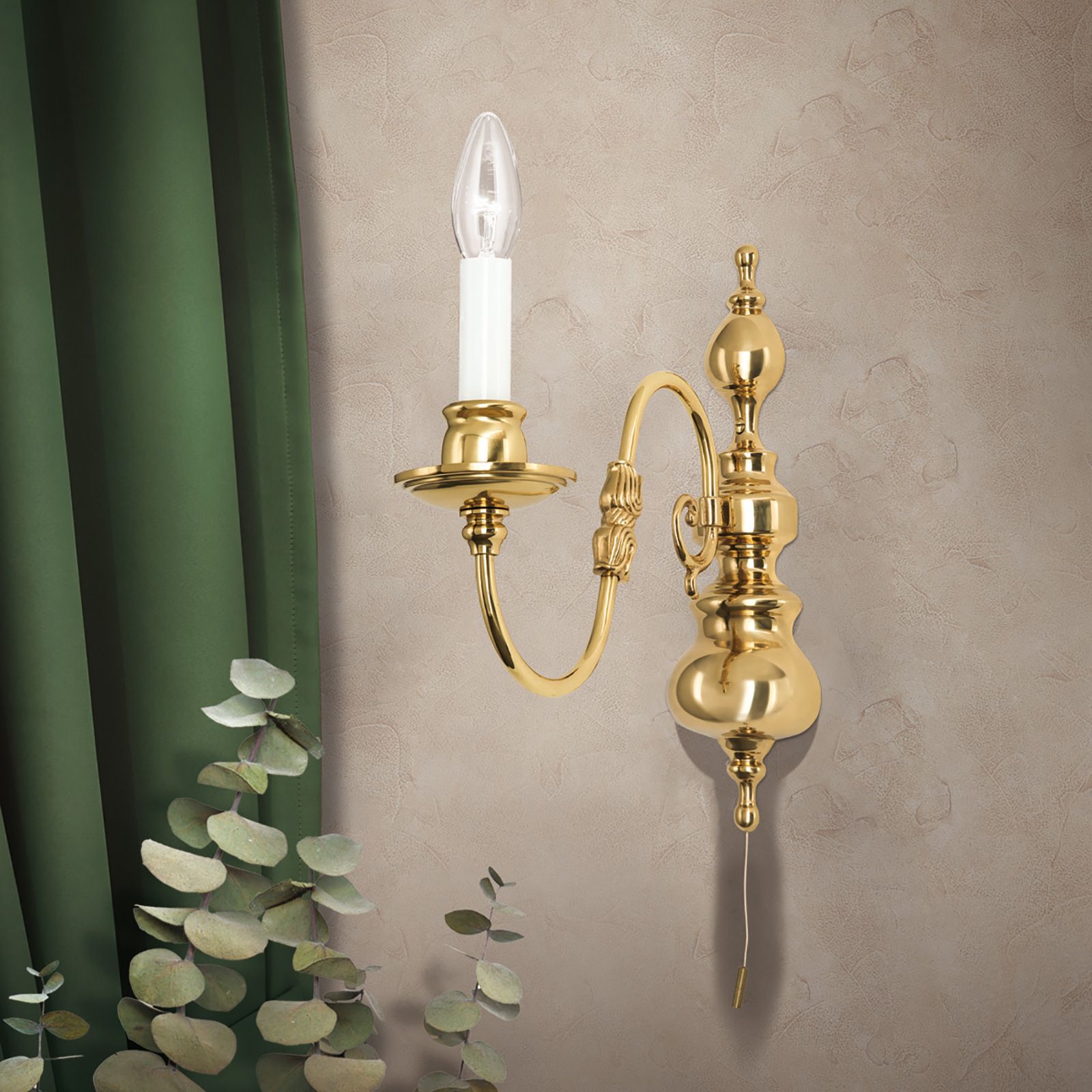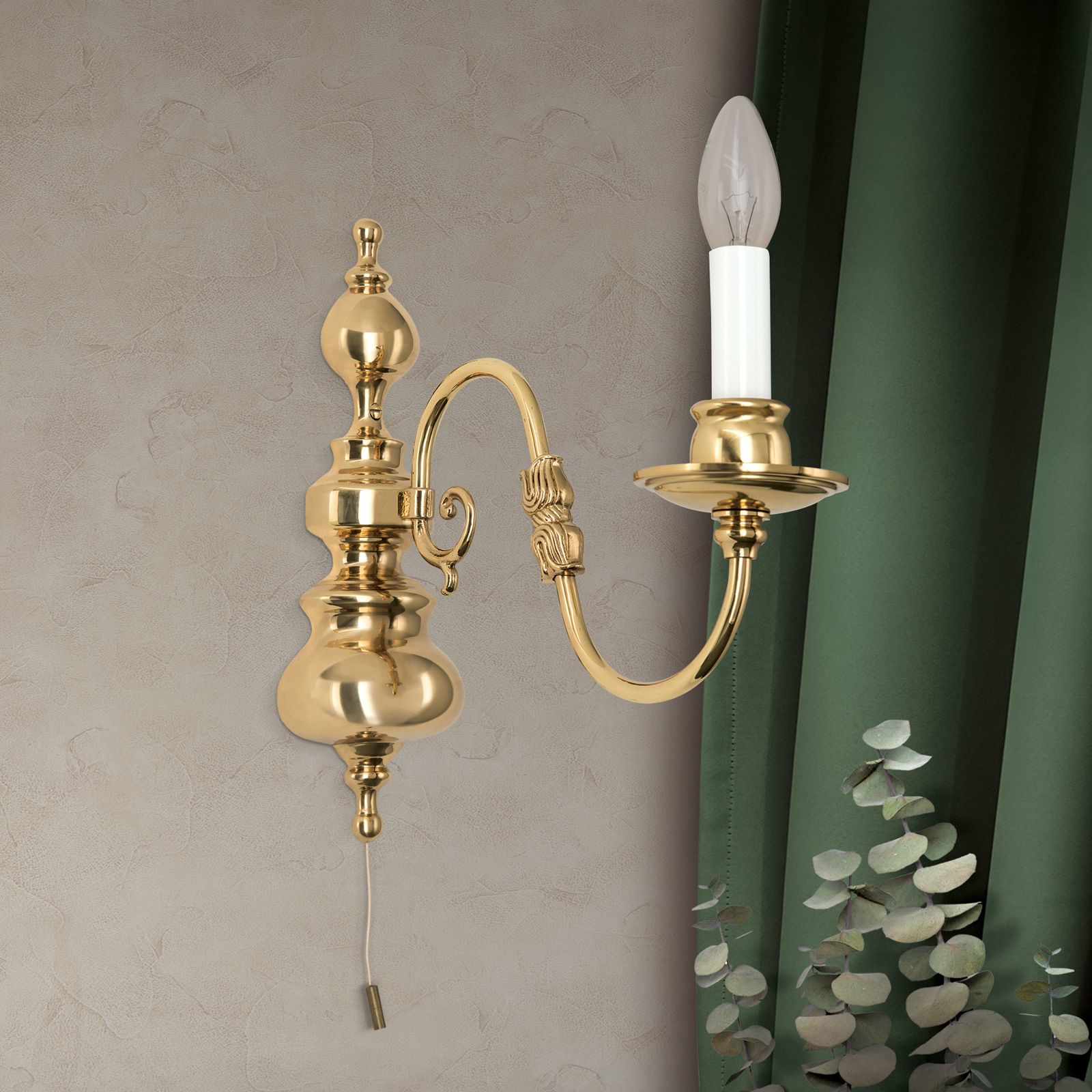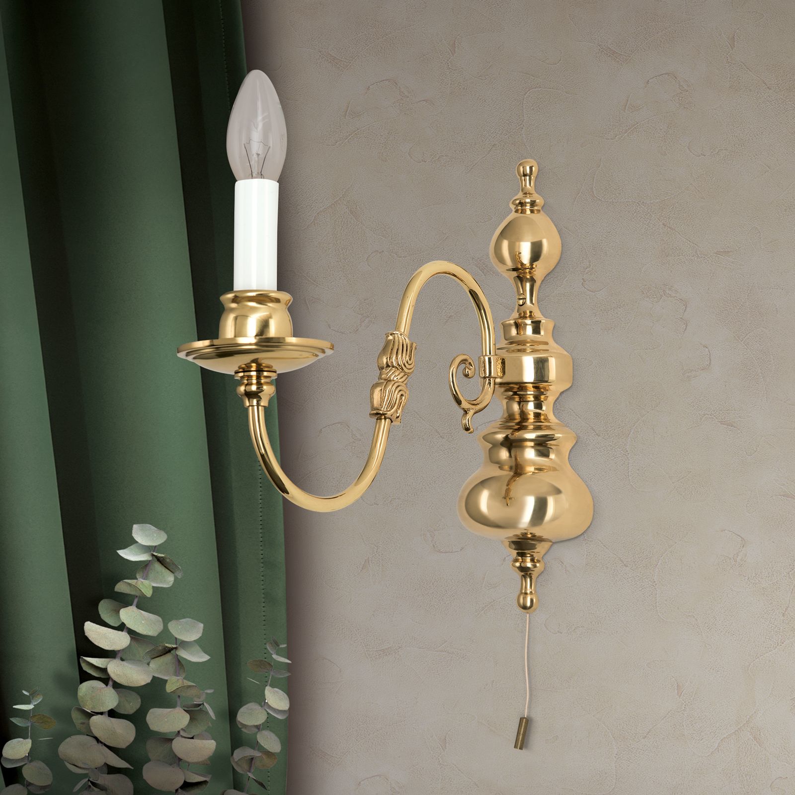 Wall arm lamp FLÄMISCH, 1-flame, shiny brass