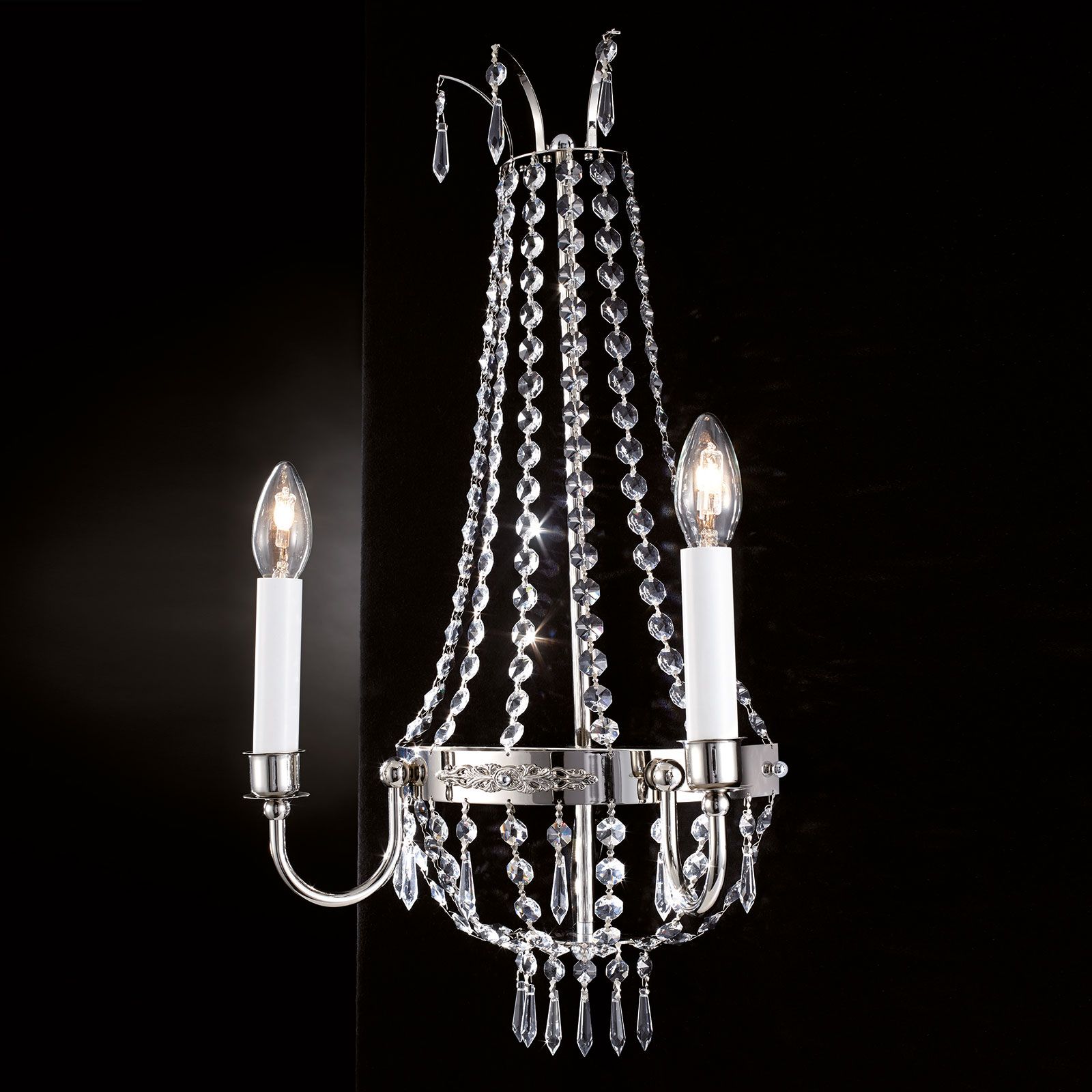 Wall arm light EMPIRE CRYSTAL, 2-flames, antique silver