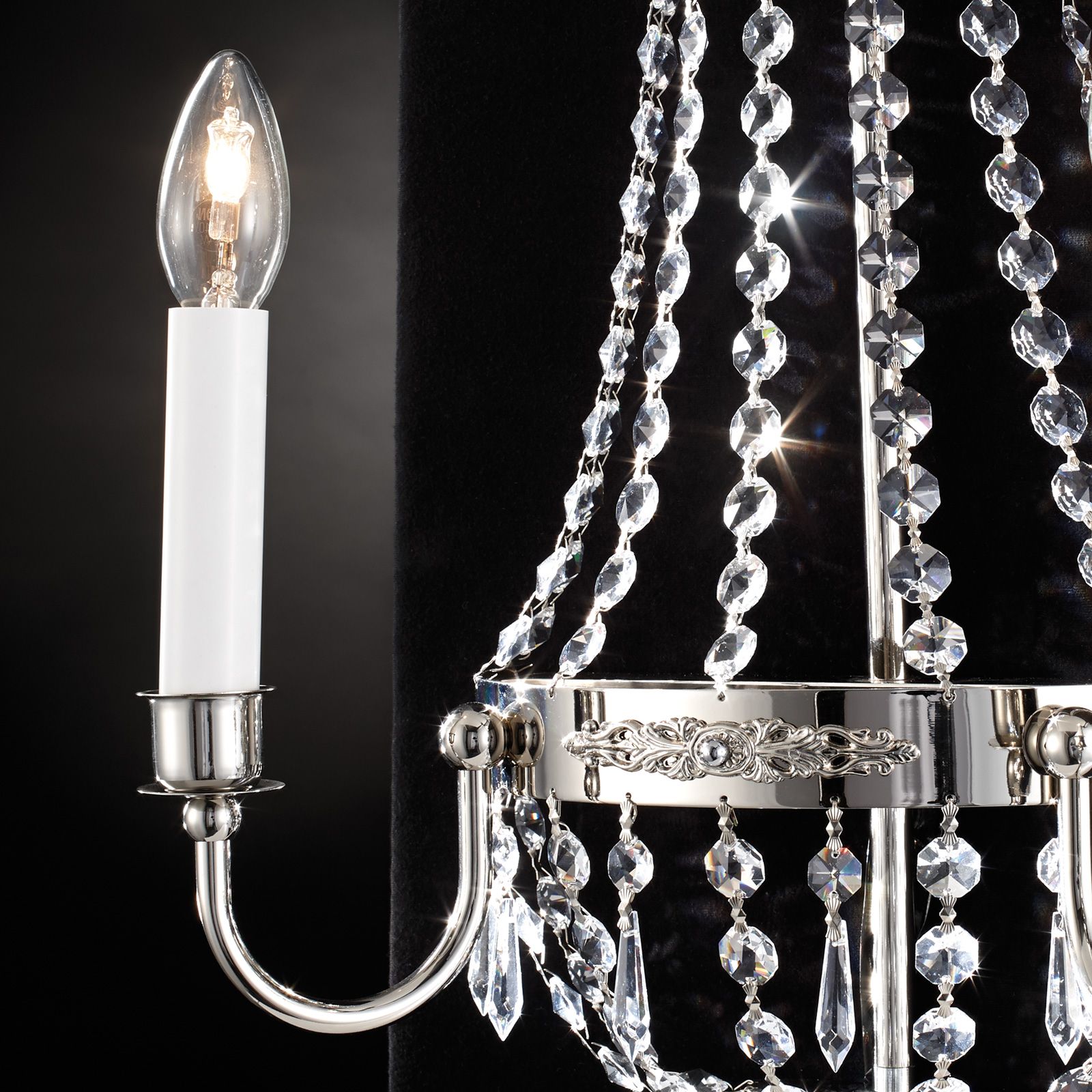 Wall arm light EMPIRE CRYSTAL comes in the form of a classic chandelier thus ideally complementing other lights from the eponymous series. It provides beautiful lighting in classic private or public interiors creating great light reflections courtesy of high-quality Asfour crystals.
