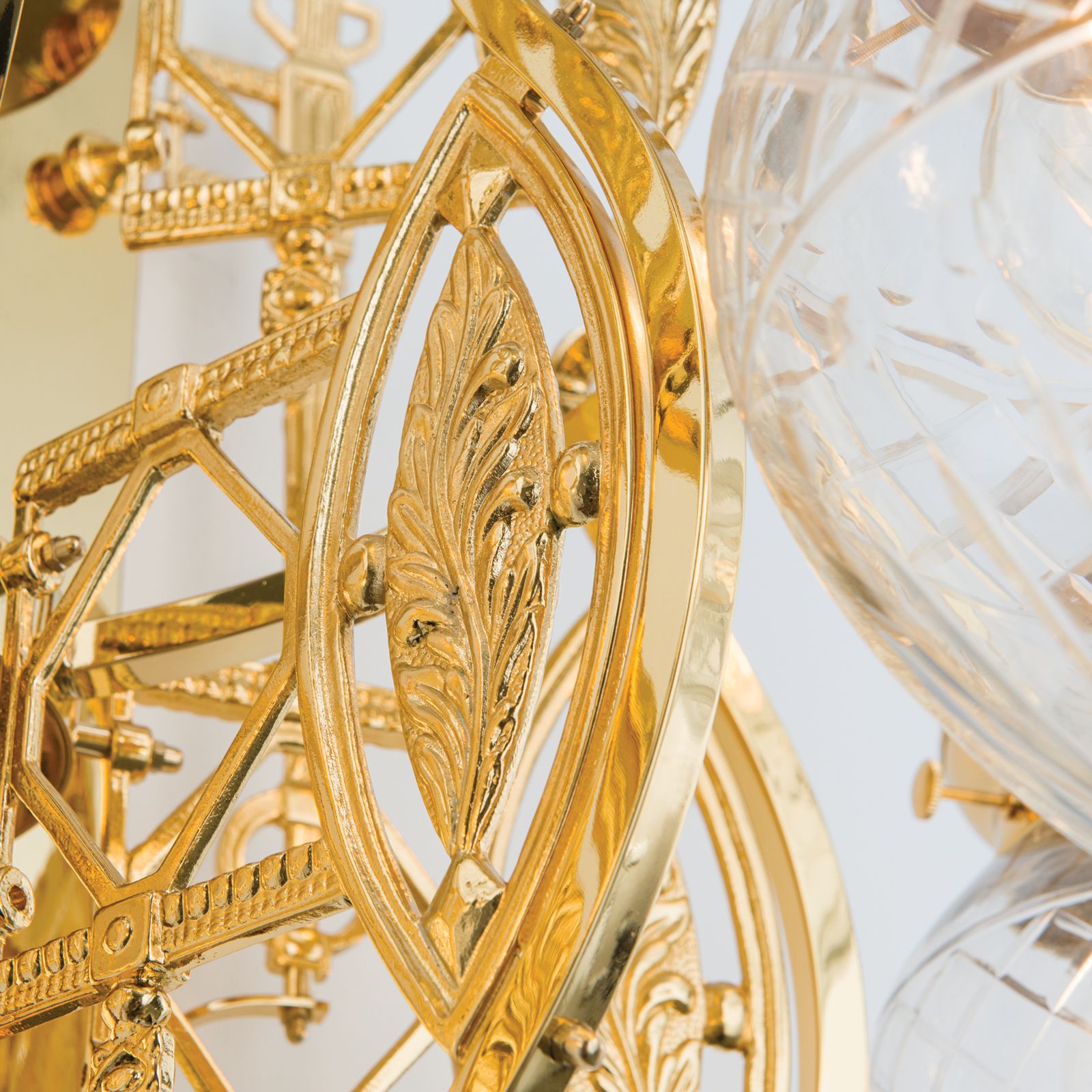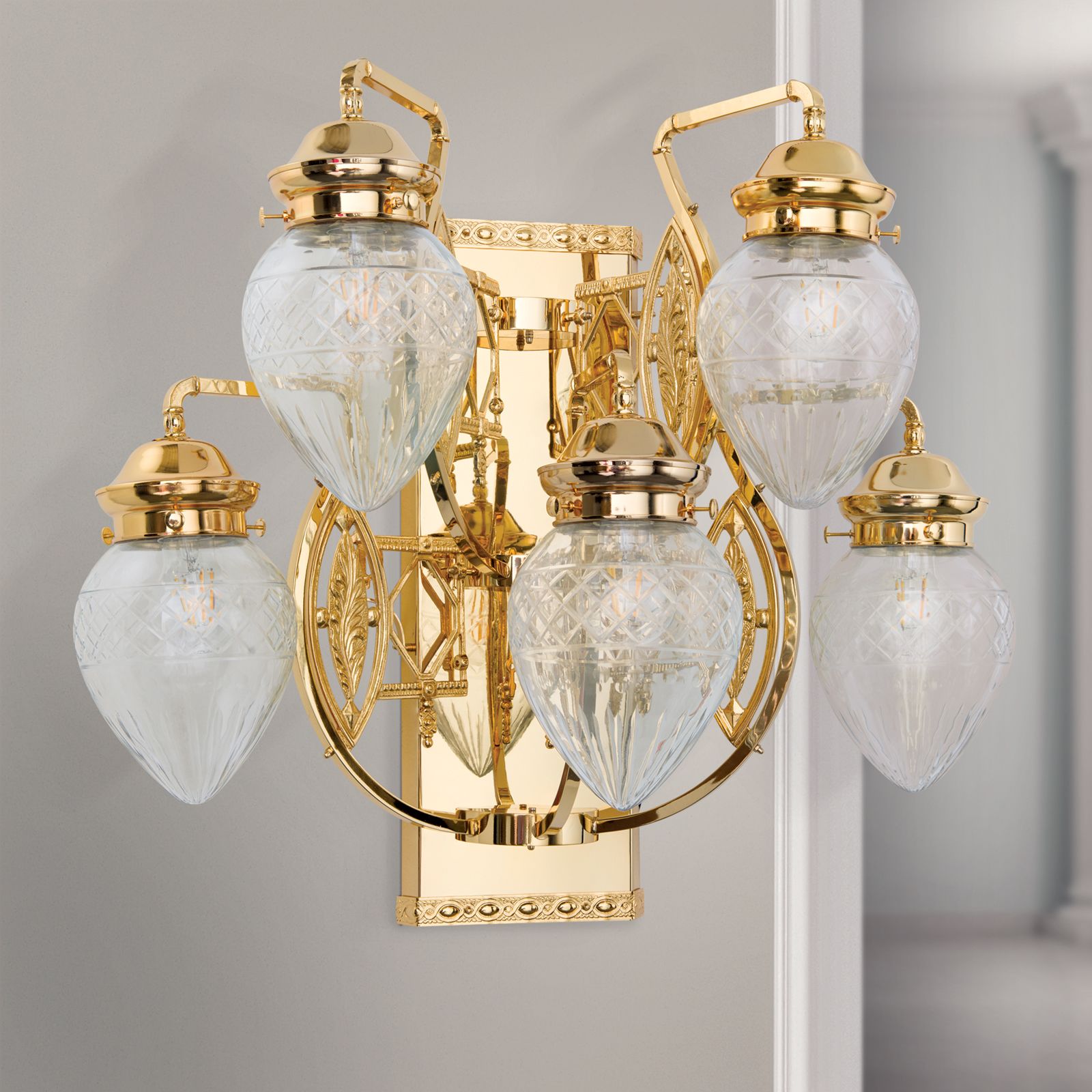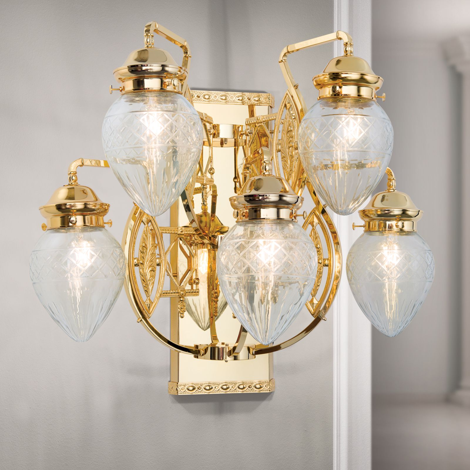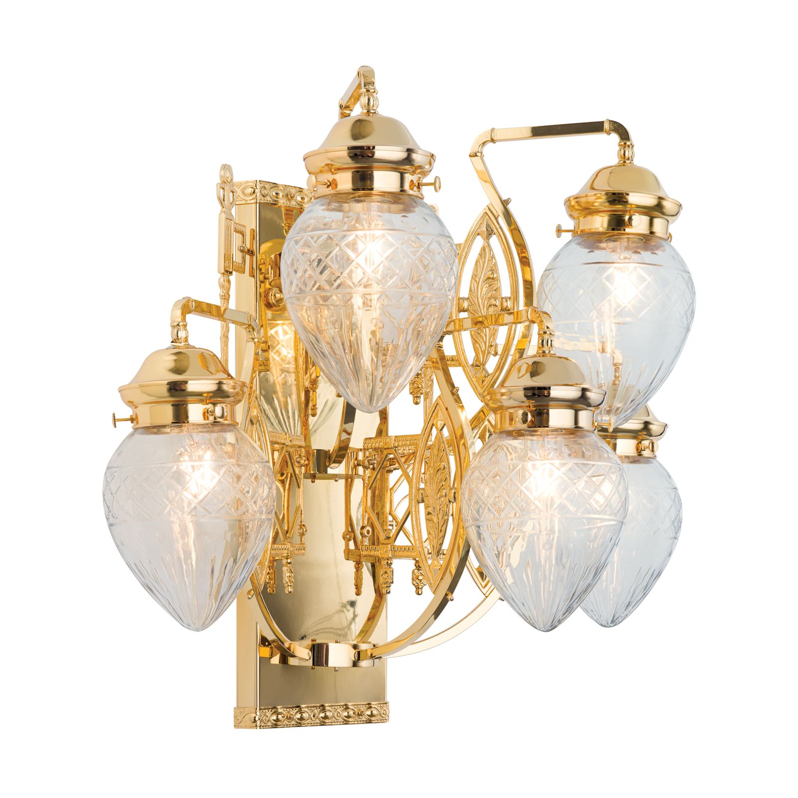 Wall light BUDAPEST, 5 lamps in 24K gold plated finish with clear cut glasses