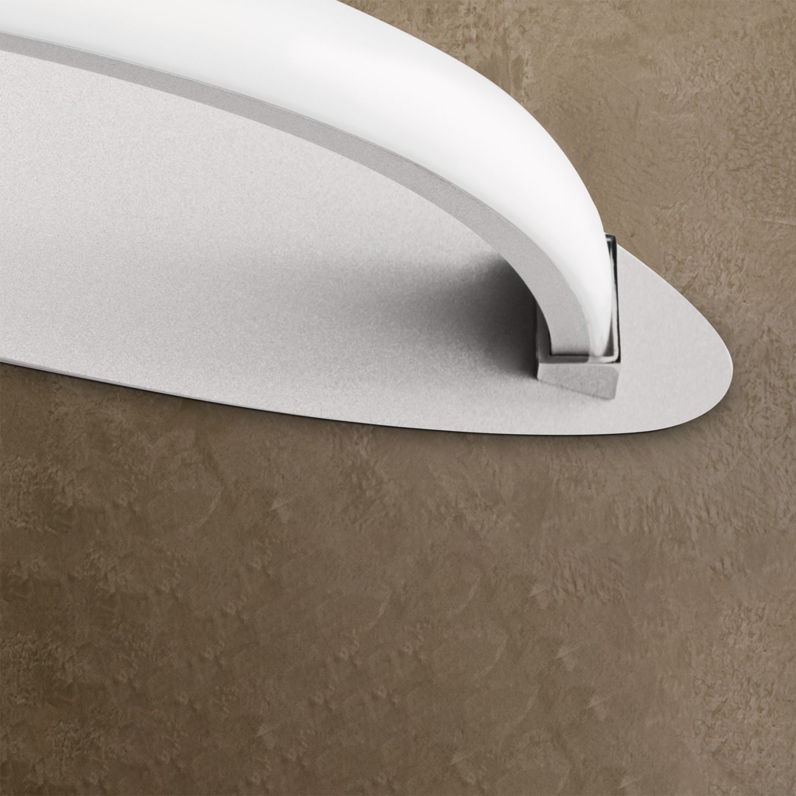 Wall light CURVE is made of metal with aluminum matt finish and an acrylic glass cover. Fitted with economical LED bulbs, the wall light is suited for energy-saving continuous lighting. The light is equipped with modern LED technology and 670 lumens light output. Warm white LEDs provide a pleasant and friendly atmosphere. The permanently installed LEDs can be replaced if necessary. The light has protection class IP20 and protection class II, so no protective earth conductor is needed.