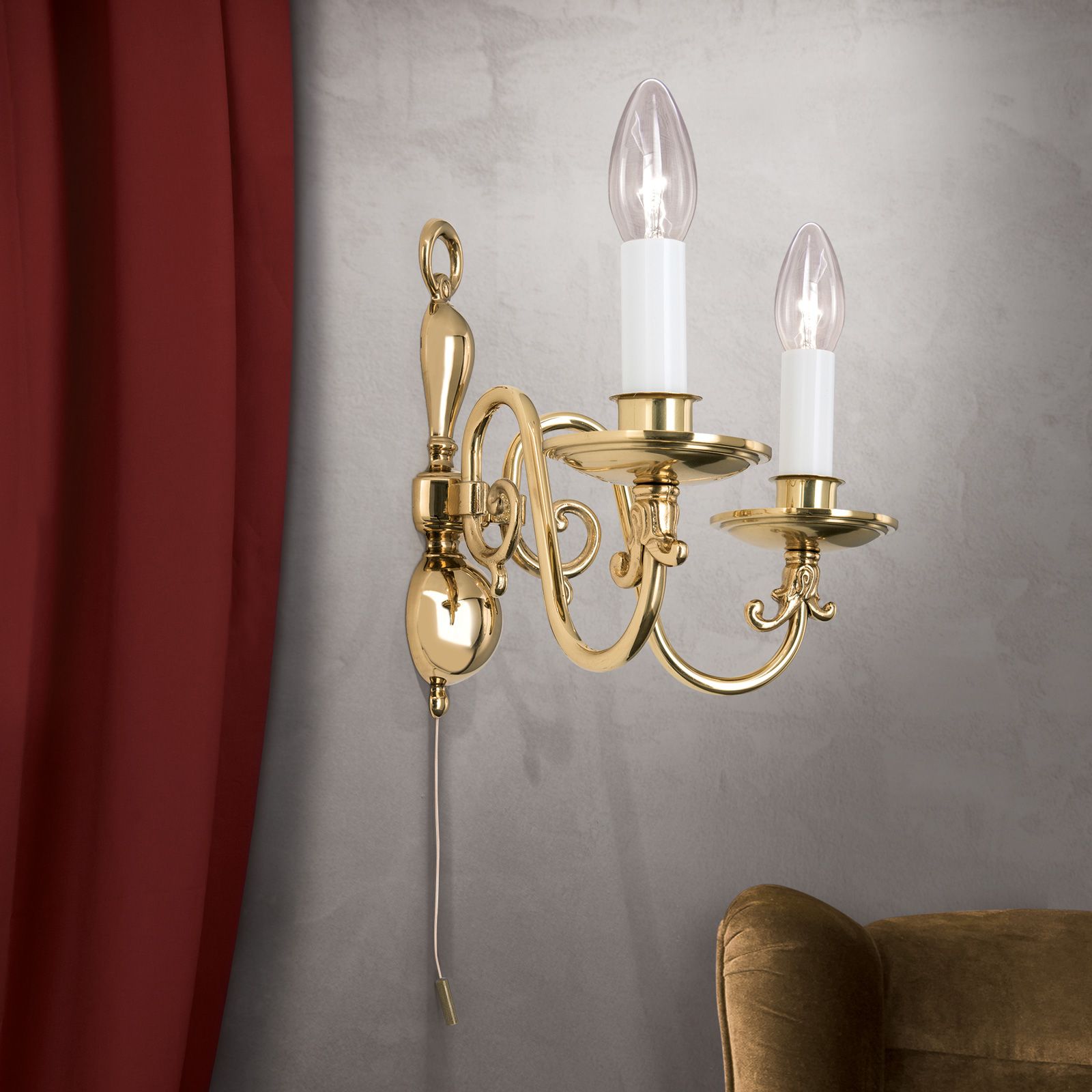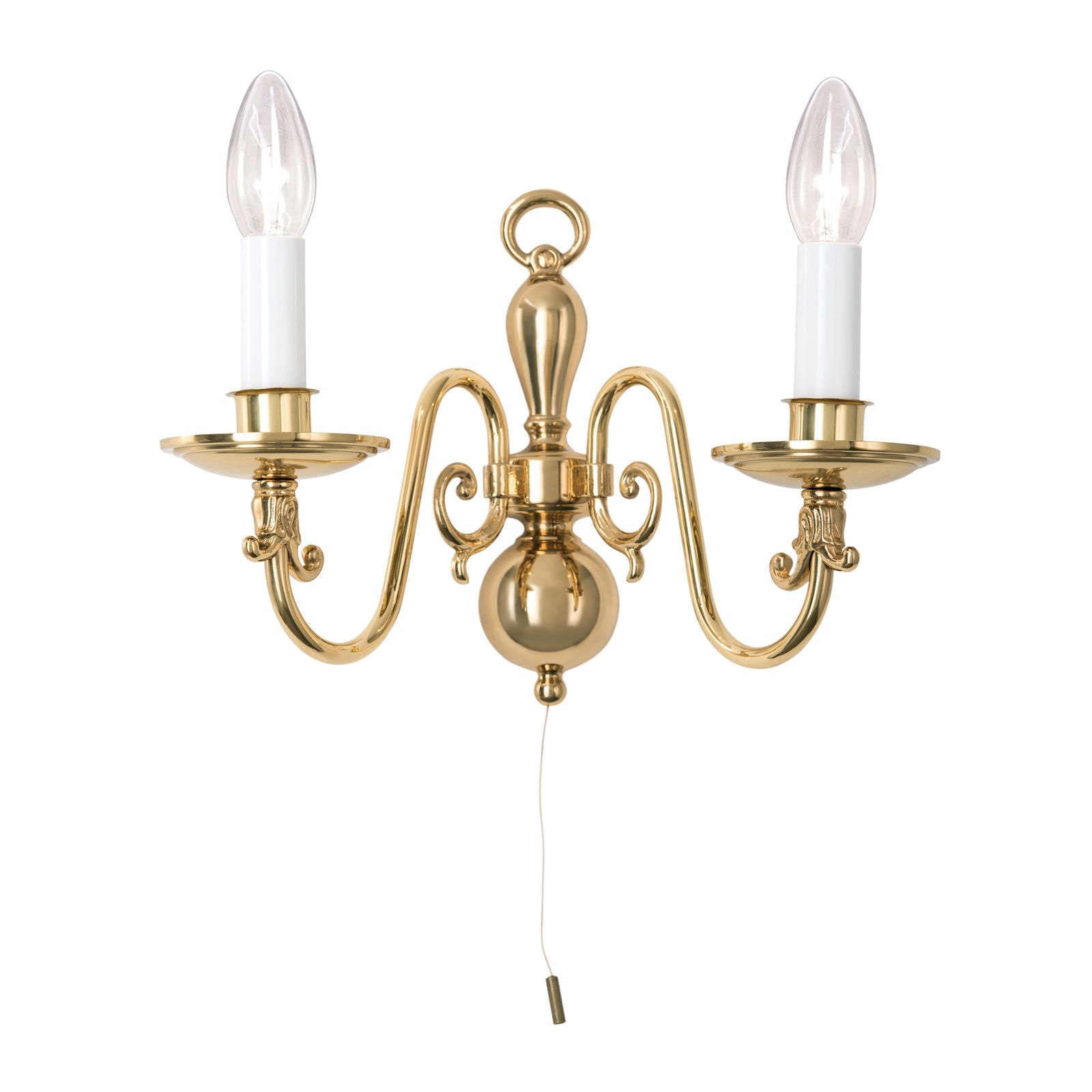 Wall light FLÄMISCH, 2-flames, shiny brass