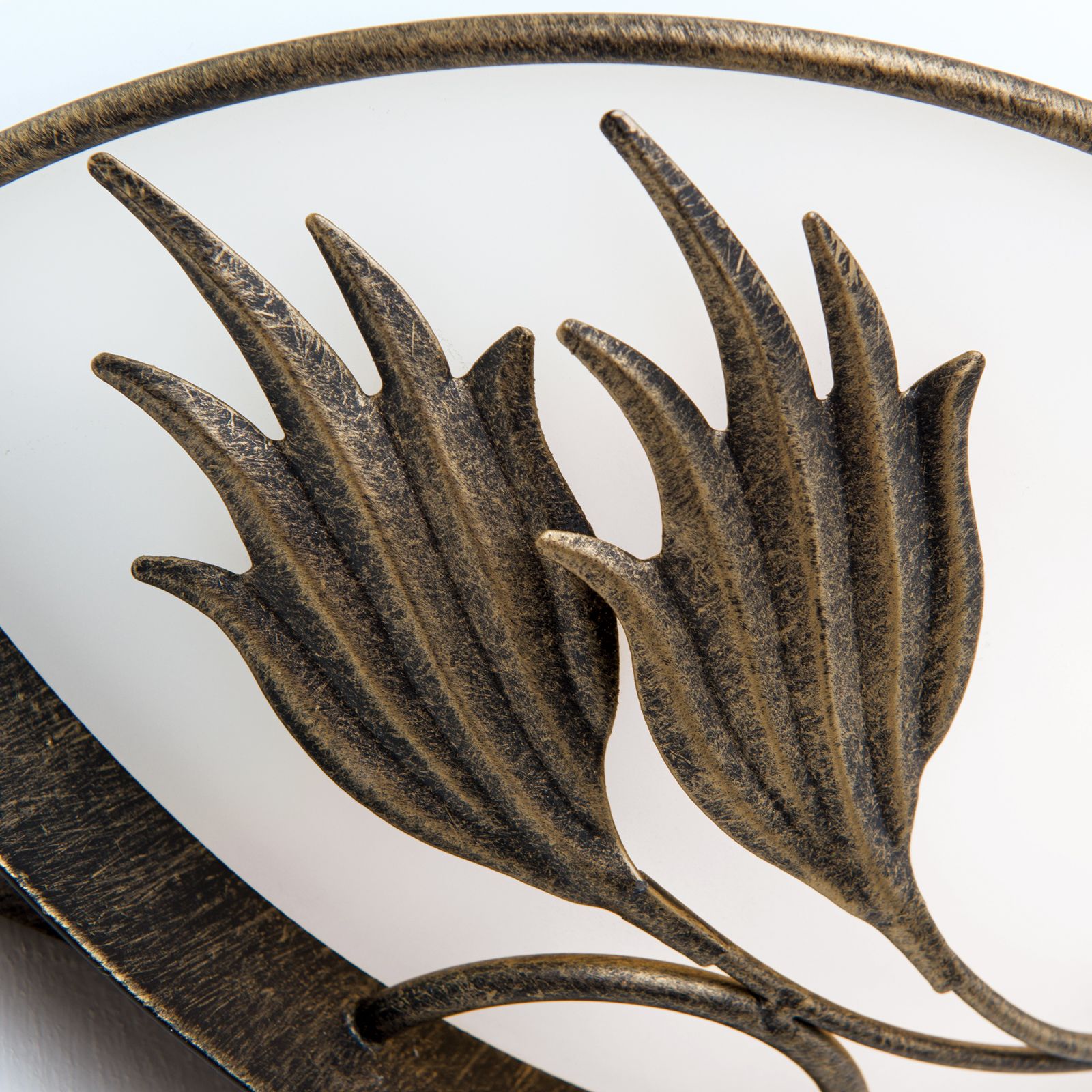 Wall lights shape any room in a very special way either rounding it off and appearing as eye-catchers. FLEUR exudes a playful rustic touch with its floral design in antique gold finish. The robust steel has a patinated look and caresses the illuminated glass hemisphere in a wonderfully elegant way. The opal matt finish gives off apleasantly soft and homogeneous lighting effect. Its upward opening, indirect light is radieated via the wall into the room, creating a beautifully cozy atmosphere.